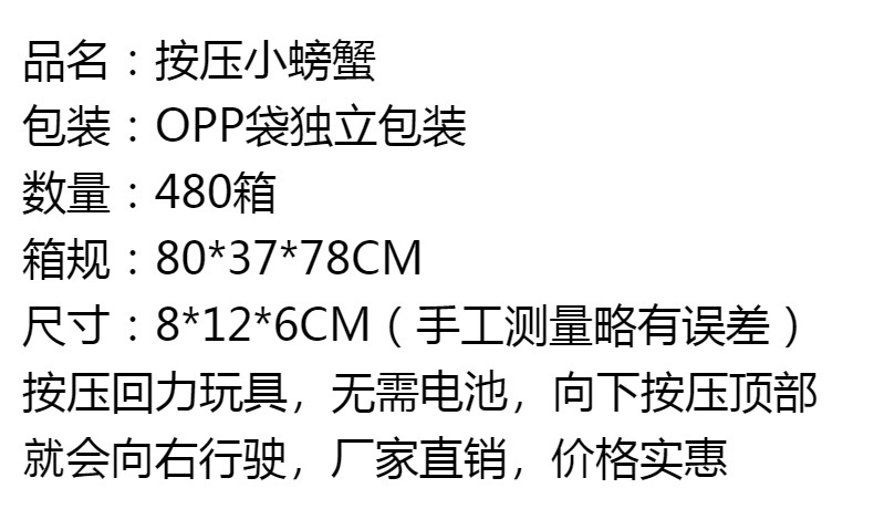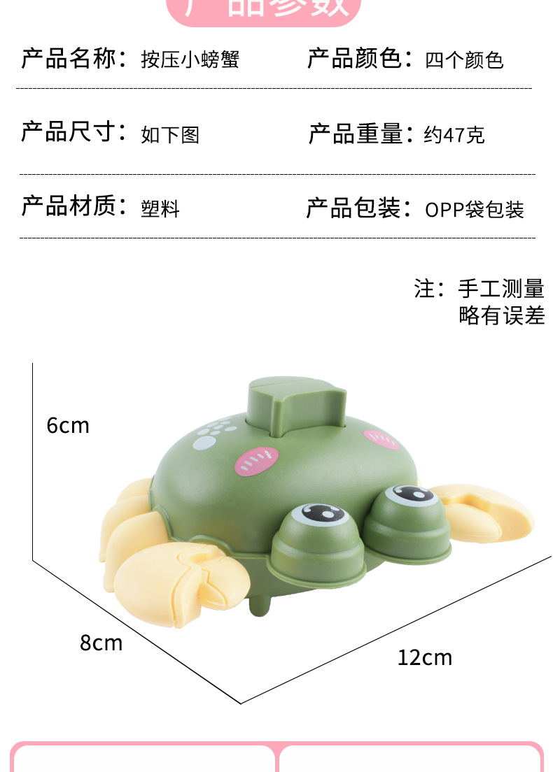 Prensa divertido cangrejo coche de juguete para niños Tire hacia atrás deslizamiento inercia dibujos animados animal juguete coche puesto al por mayor