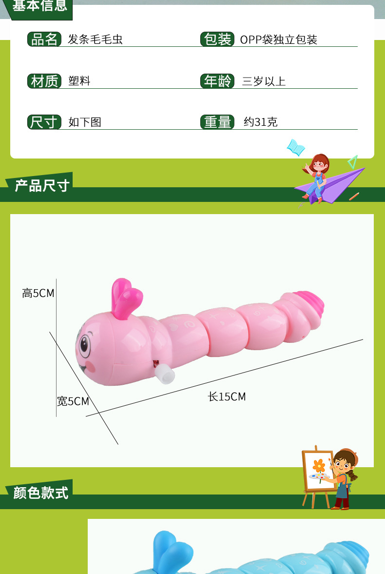 En línea de la celebridad sinuoso reloj oruga dibujos animados juguetes educativos para niños lindo pequeño animal actividad regalo puesto al por mayor