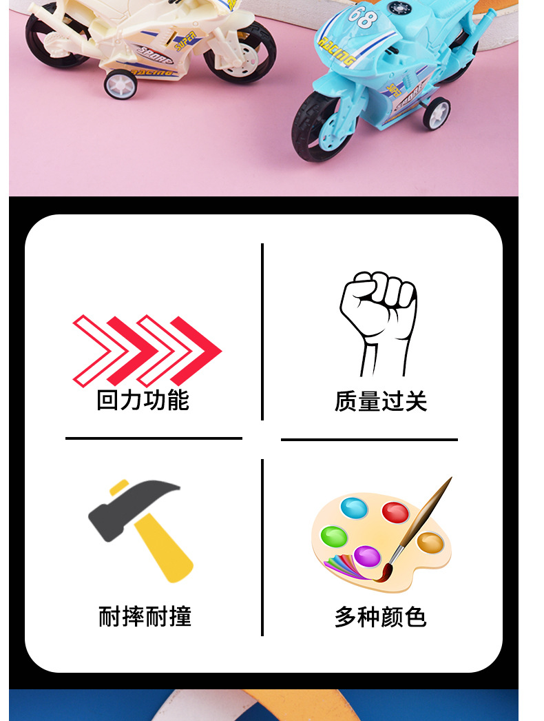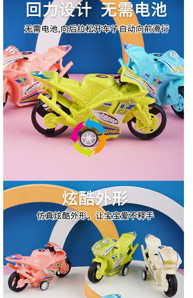 Tiktok popular pull back motocicleta coche de juguete para niños niño bebé simulación motocicleta modelo decoración puesto al por mayor
