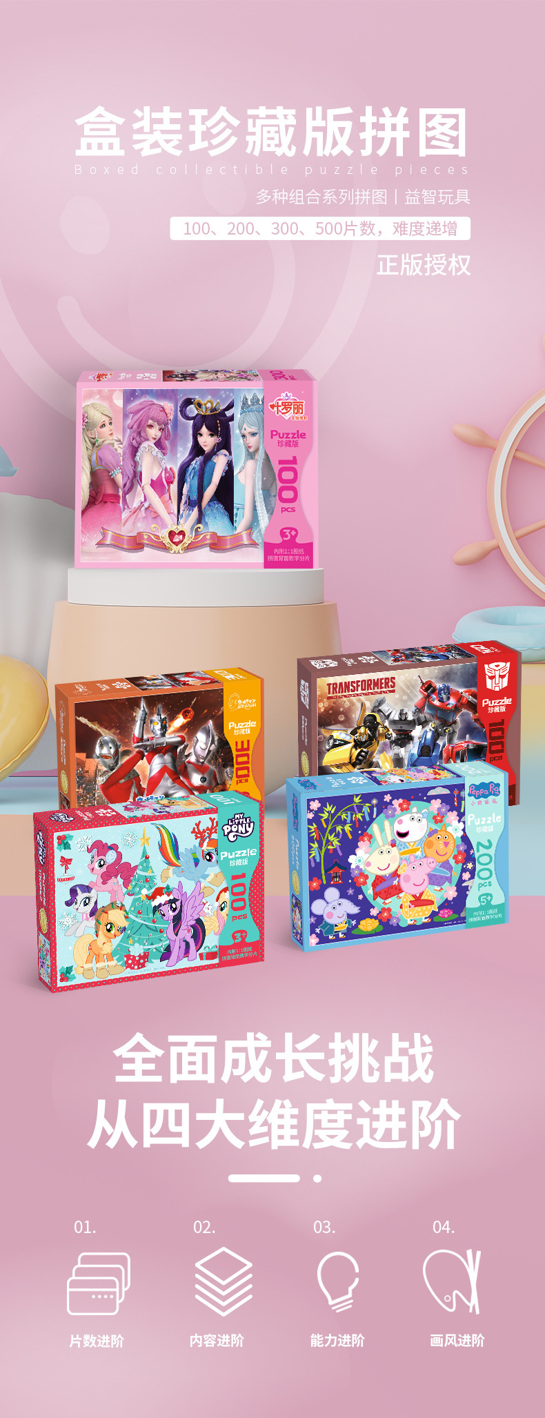 Puzzles de página transfronterizos para niños 100 piezas 200 piezas Ultraman Transformers Ye Lori Pony Baby