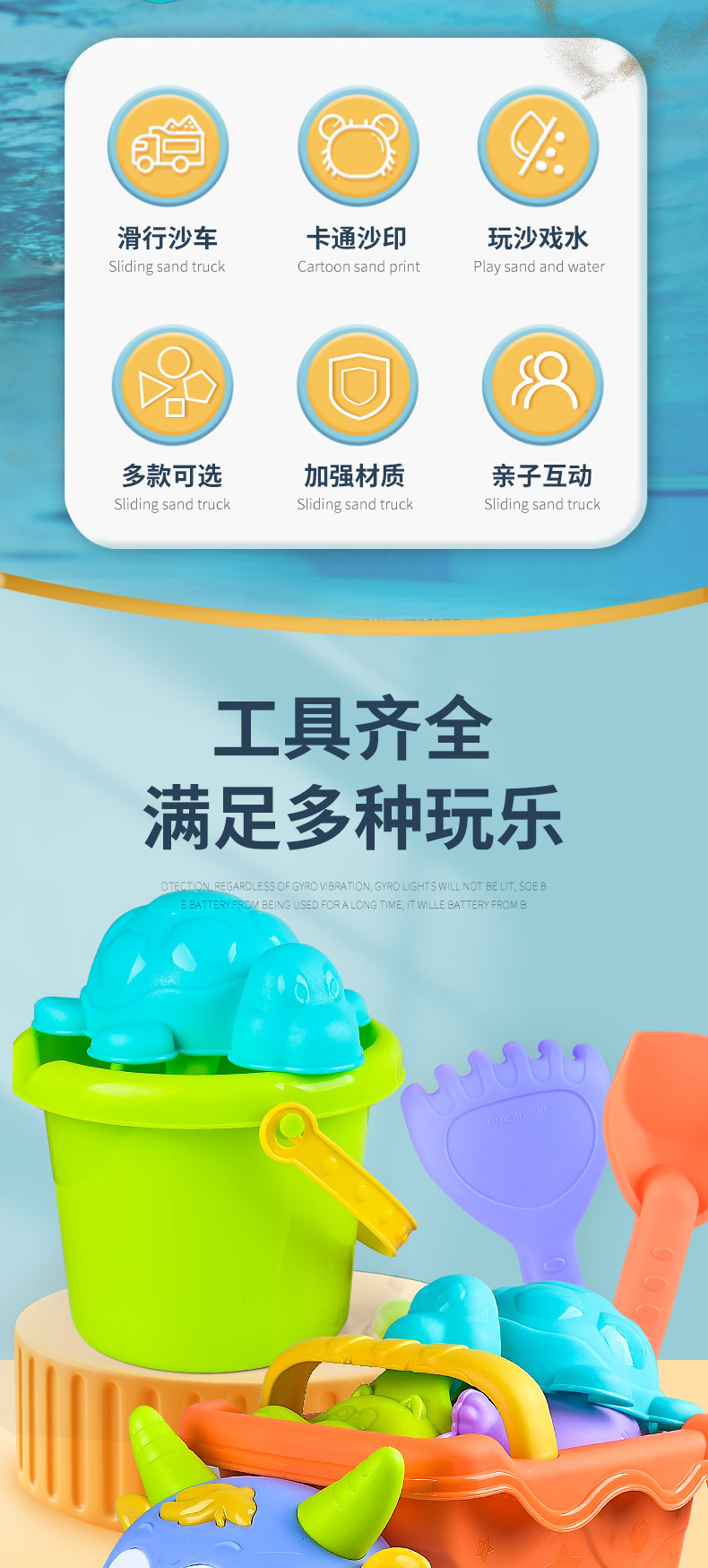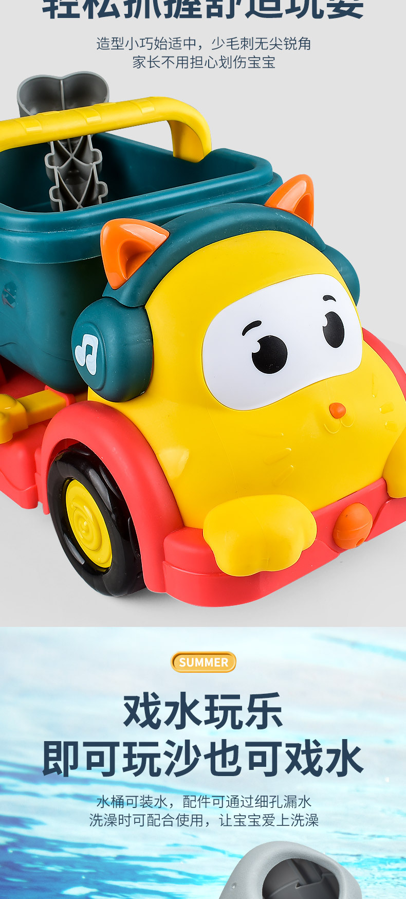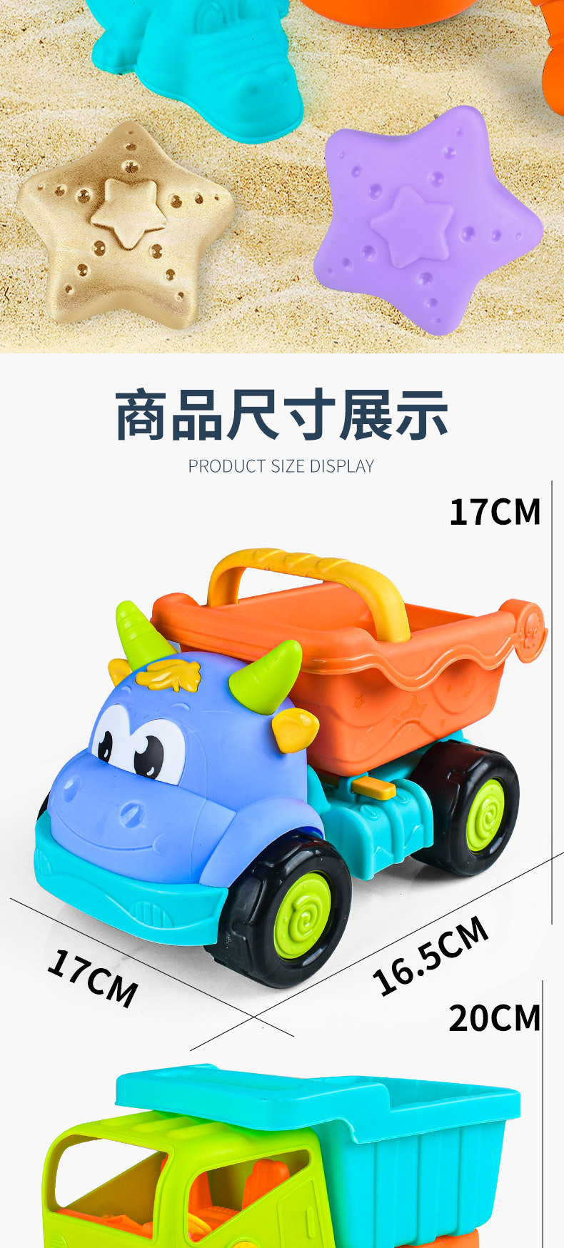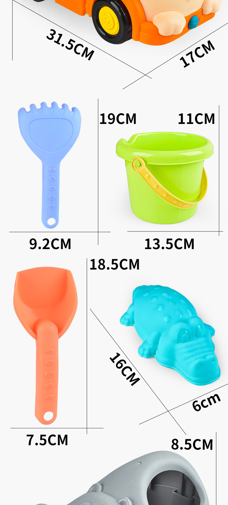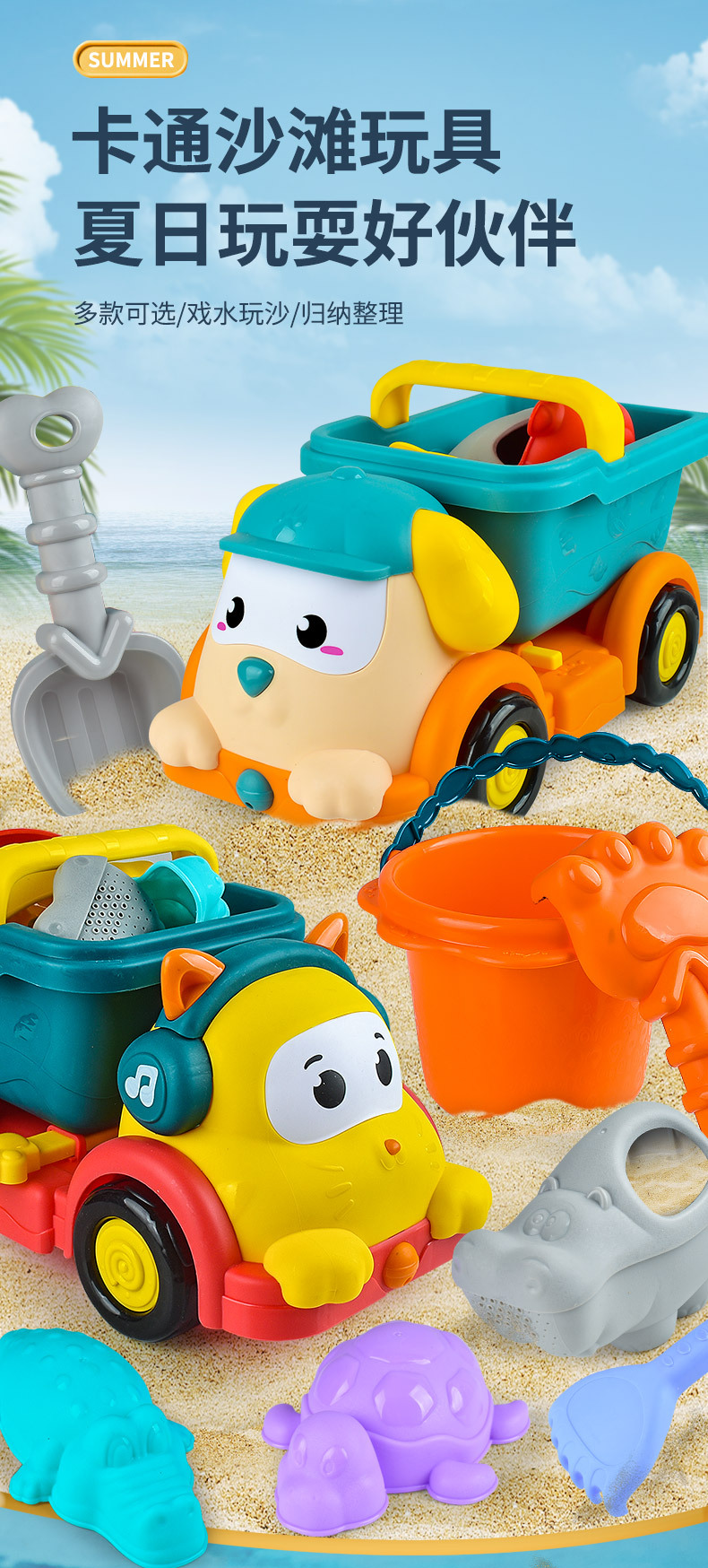Venta al por mayor de dibujos animados de playa para niños coche de juguete traje grande playa de arena playa cubo herramienta puesto