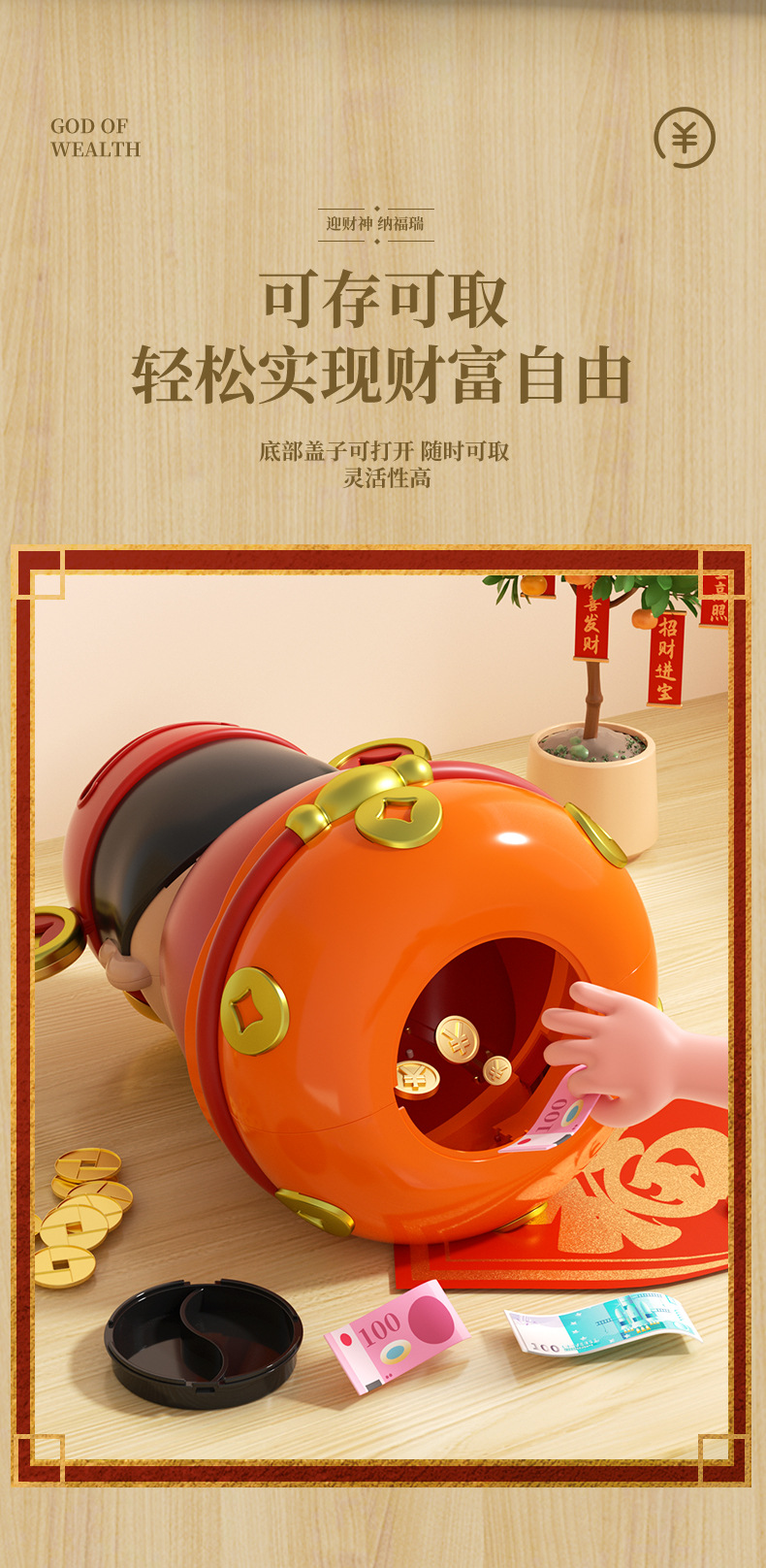 Nuevo Dios de la fortuna depósito de dinero puede ser almacenado y retirado de la marea de la riqueza para niños juguetes para niños niñas regalos de Año Nuevo