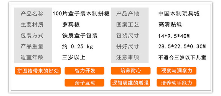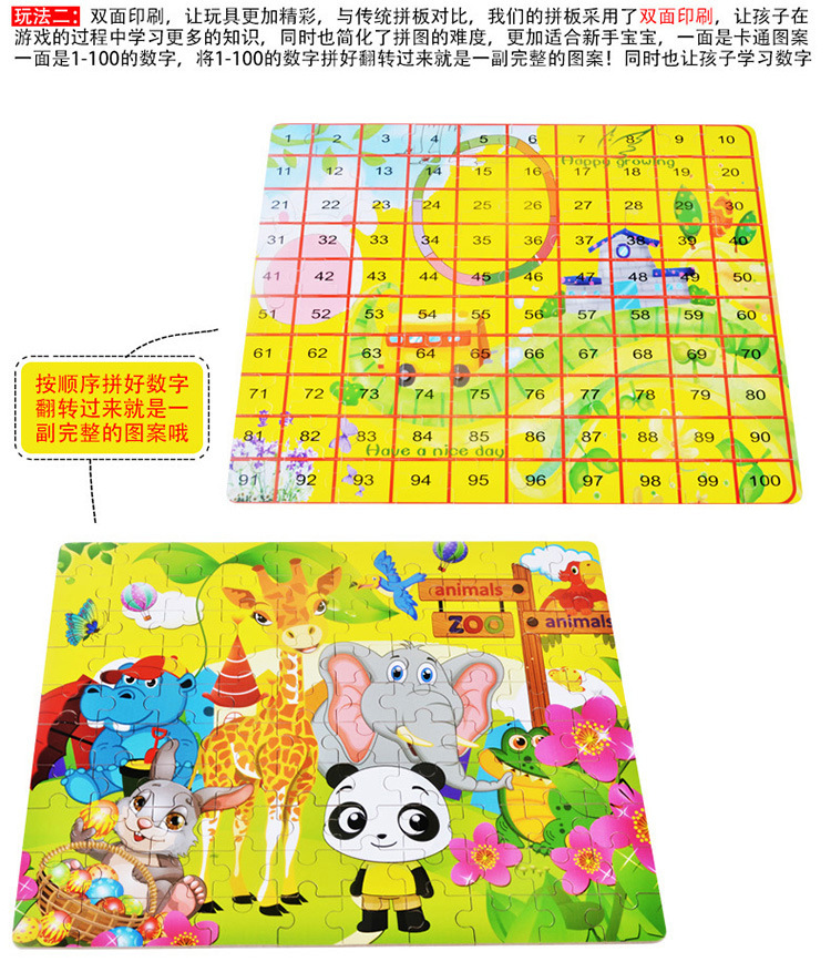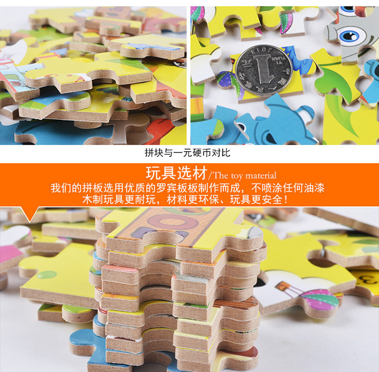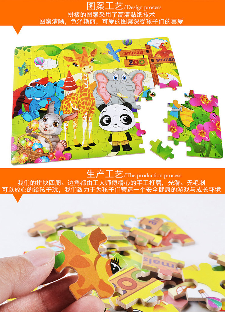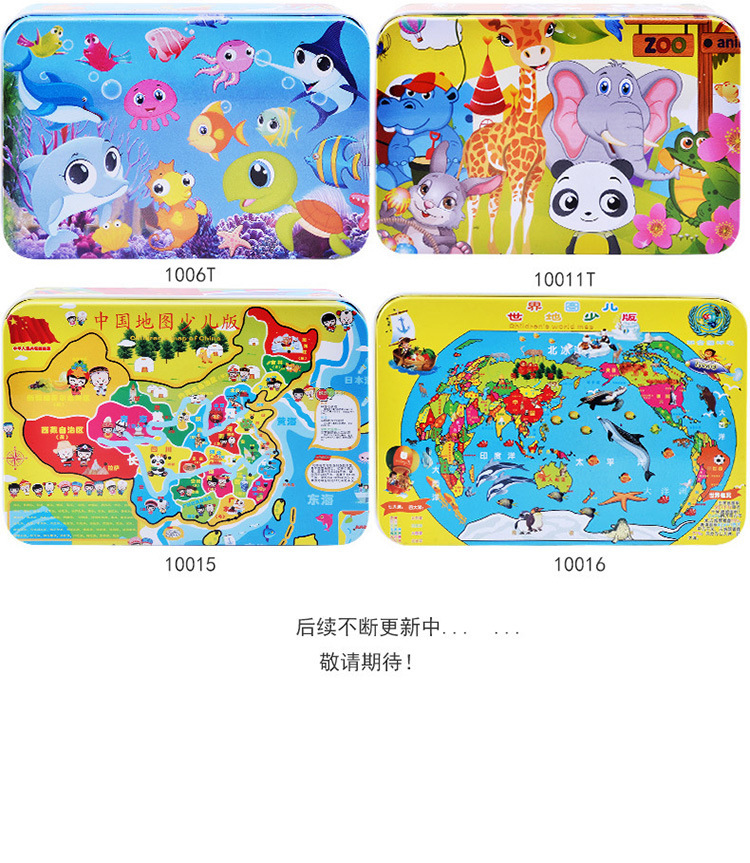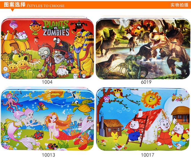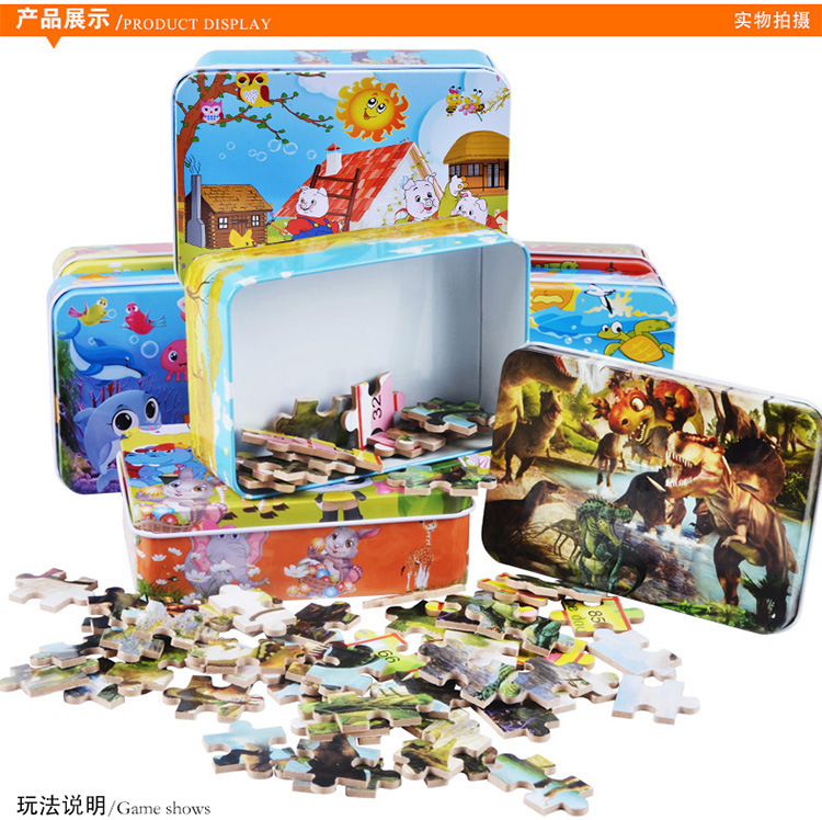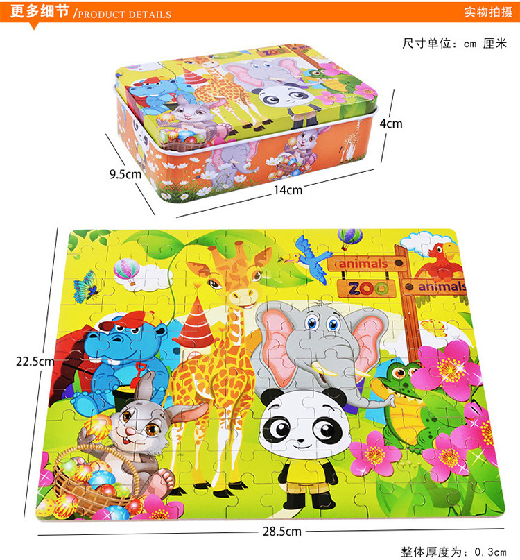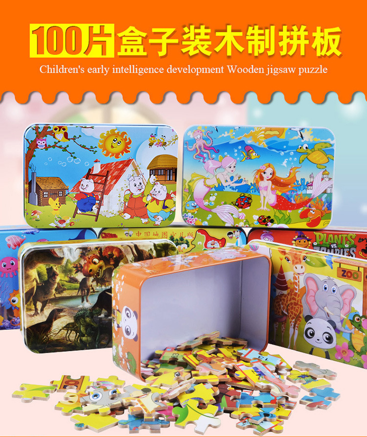 Transfronterizo 100 piezas de caja de hierro puzzle infantil educación temprana rompecabezas dibujos animados de madera agencia de educación plana al por mayor