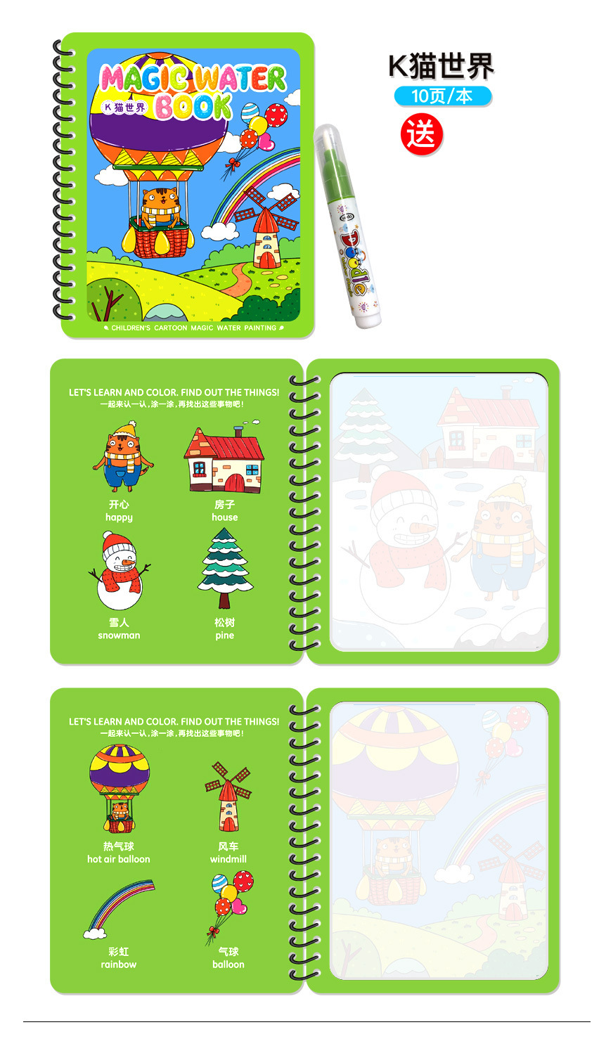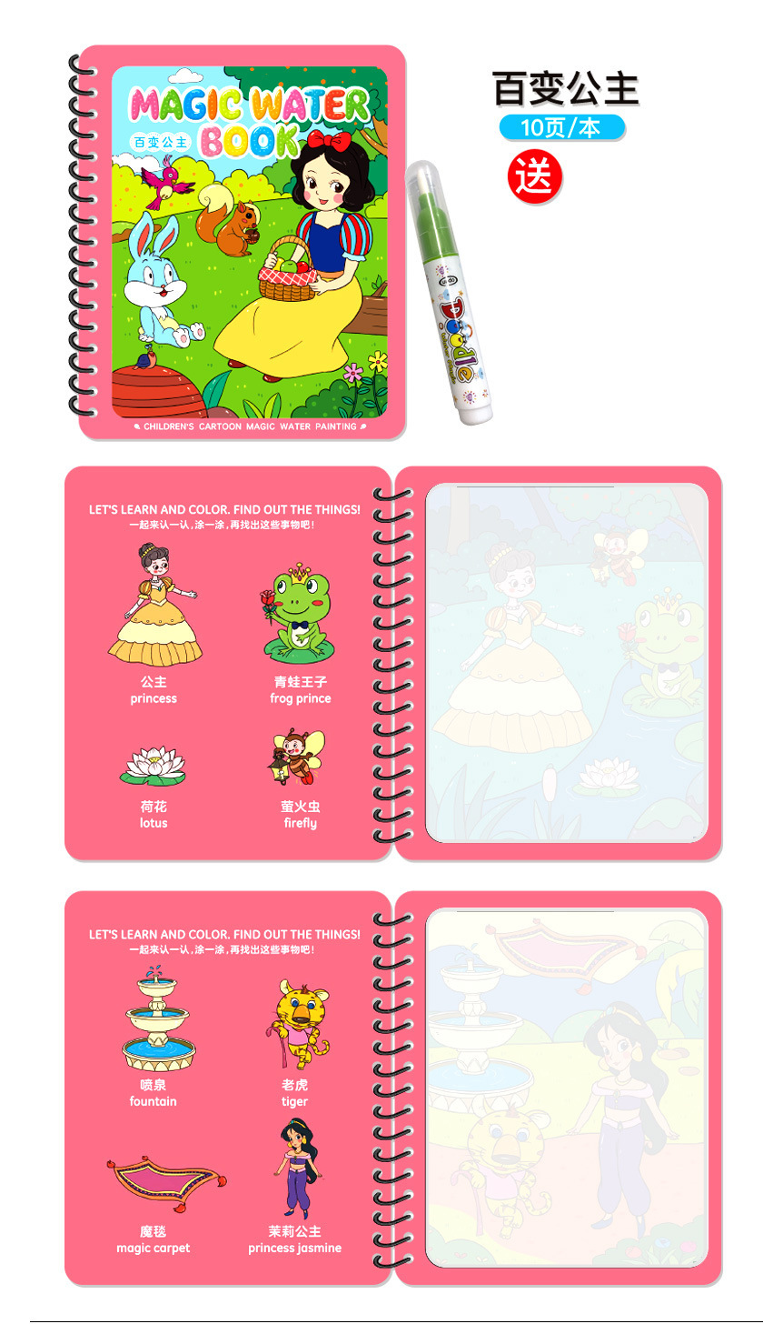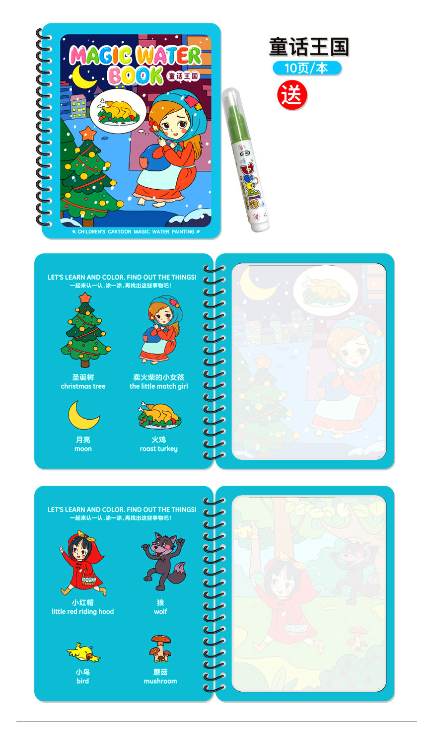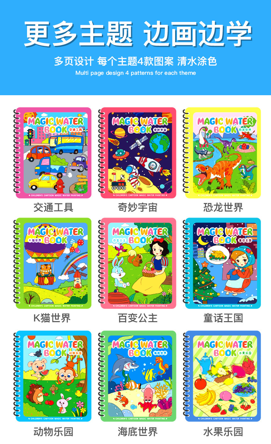 Puzzle transfronterizo libro de dibujos de acuarela infantil libro de dibujos de color mágico pintado chino-inglés contraste repetido relleno de juguetes de acuarela