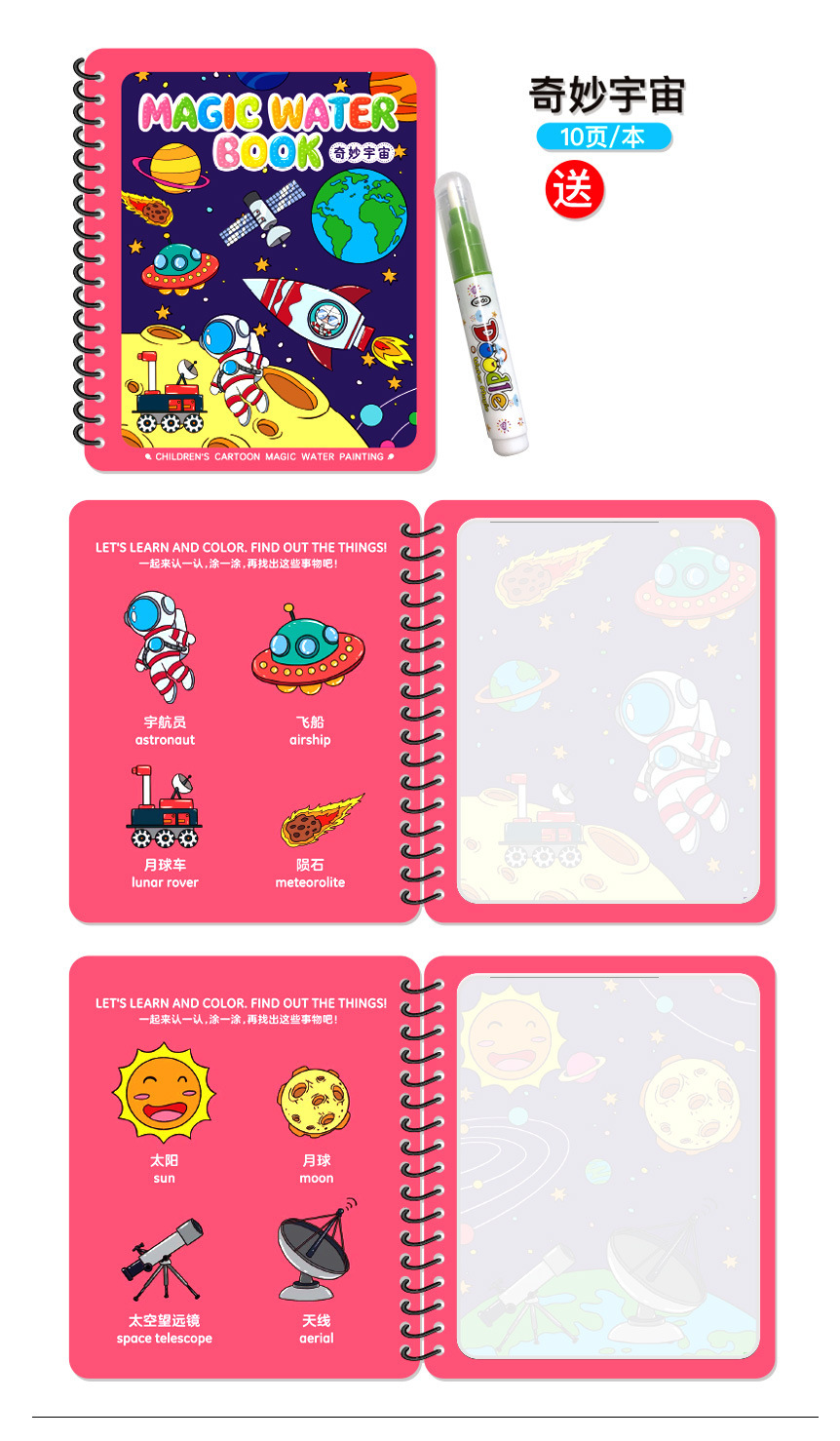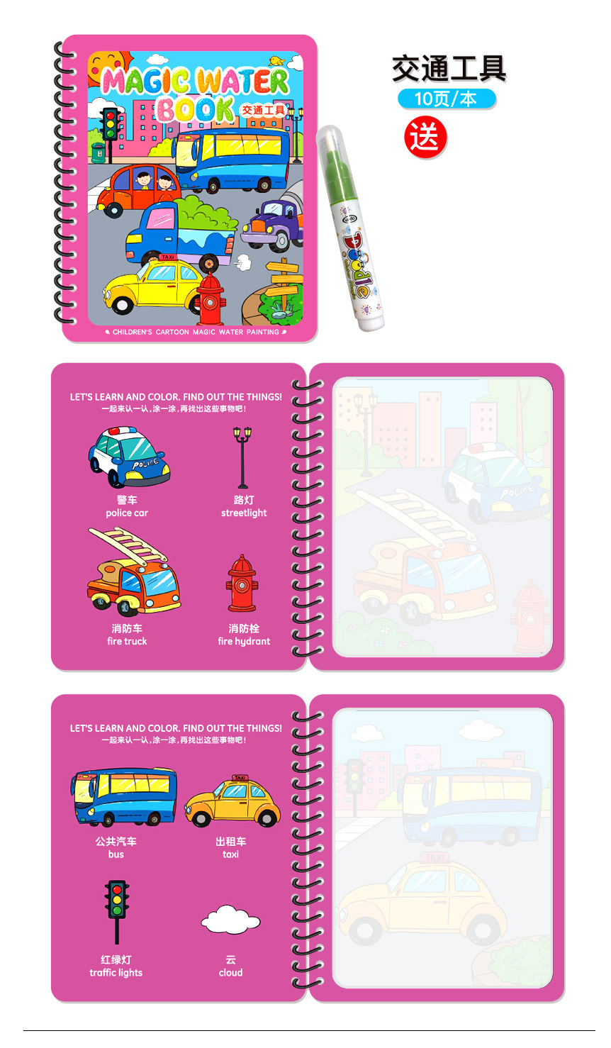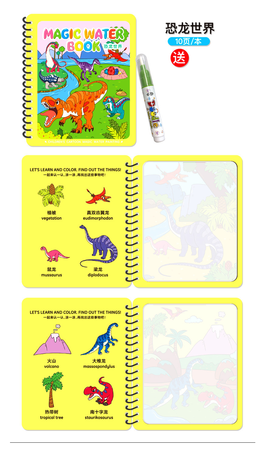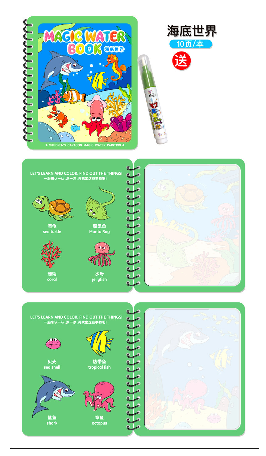 Puzzle transfronterizo libro de dibujos de acuarela infantil libro de dibujos de color mágico pintado chino-inglés contraste repetido relleno de juguetes de acuarela