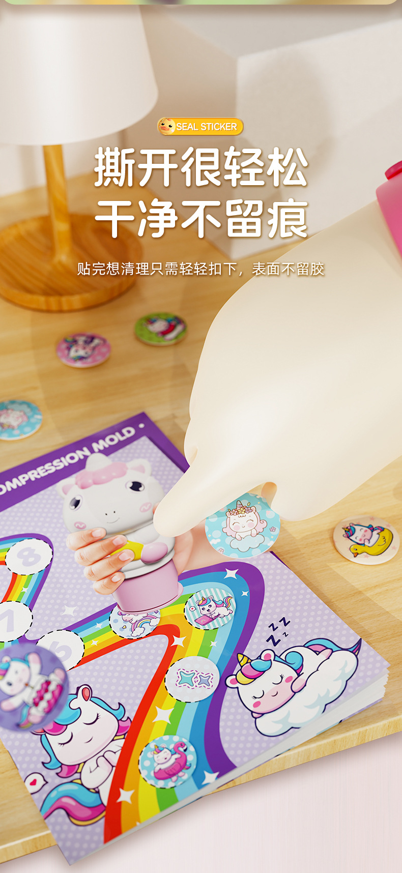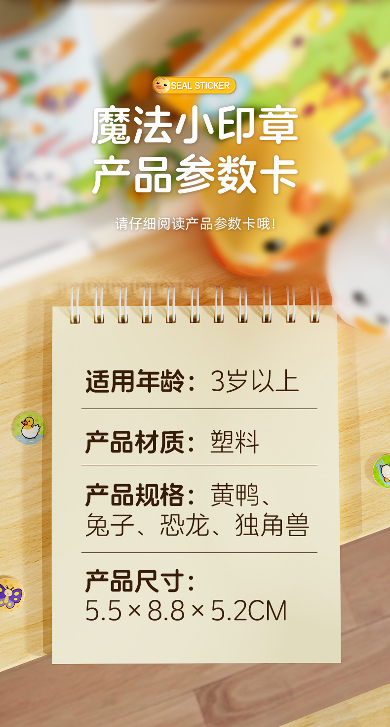 | Colores | Sello mágico [color aleatorio],Sello mágico 【Unicornio】,Sello mágico [patito amarillo],Sello mágico 【Pequeño dinosaurio】,Pegatinas de sello [100 pegatinas] |