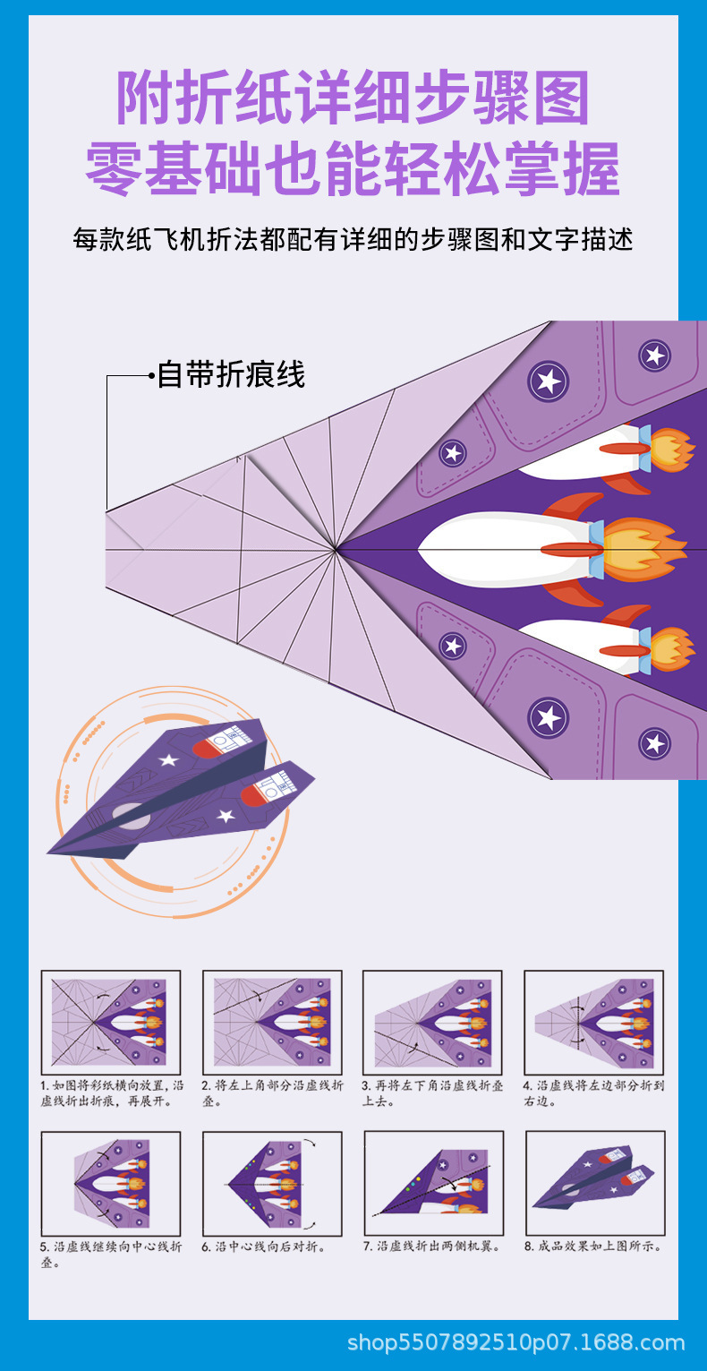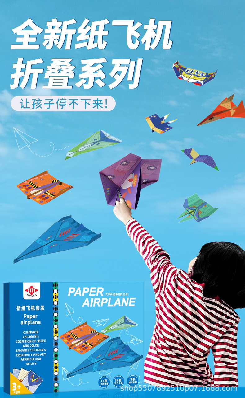 Juego de origami especial para avión de origami creativo para niños bricolaje libro de origami tridimensional jardín de infantes rompecabezas pensamiento manual