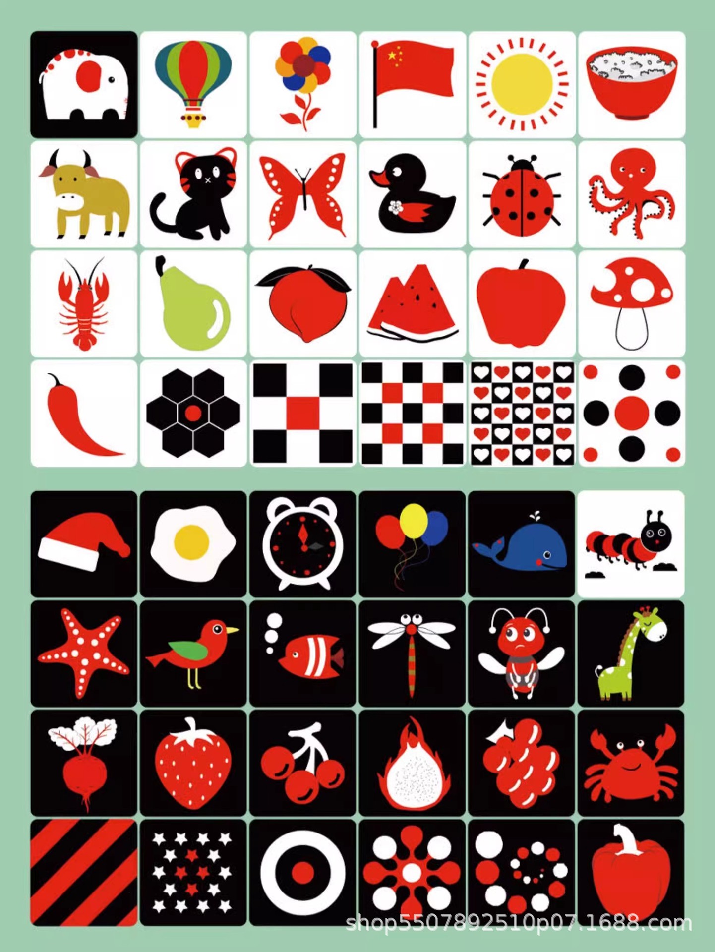 Tarjetas en blanco y negro para recién nacidos tarjetas de educación temprana tarjetas de seguimiento juguetes para niños pequeños tarjetas de color tarjetas de estimulación visual para bebés rojos y negros