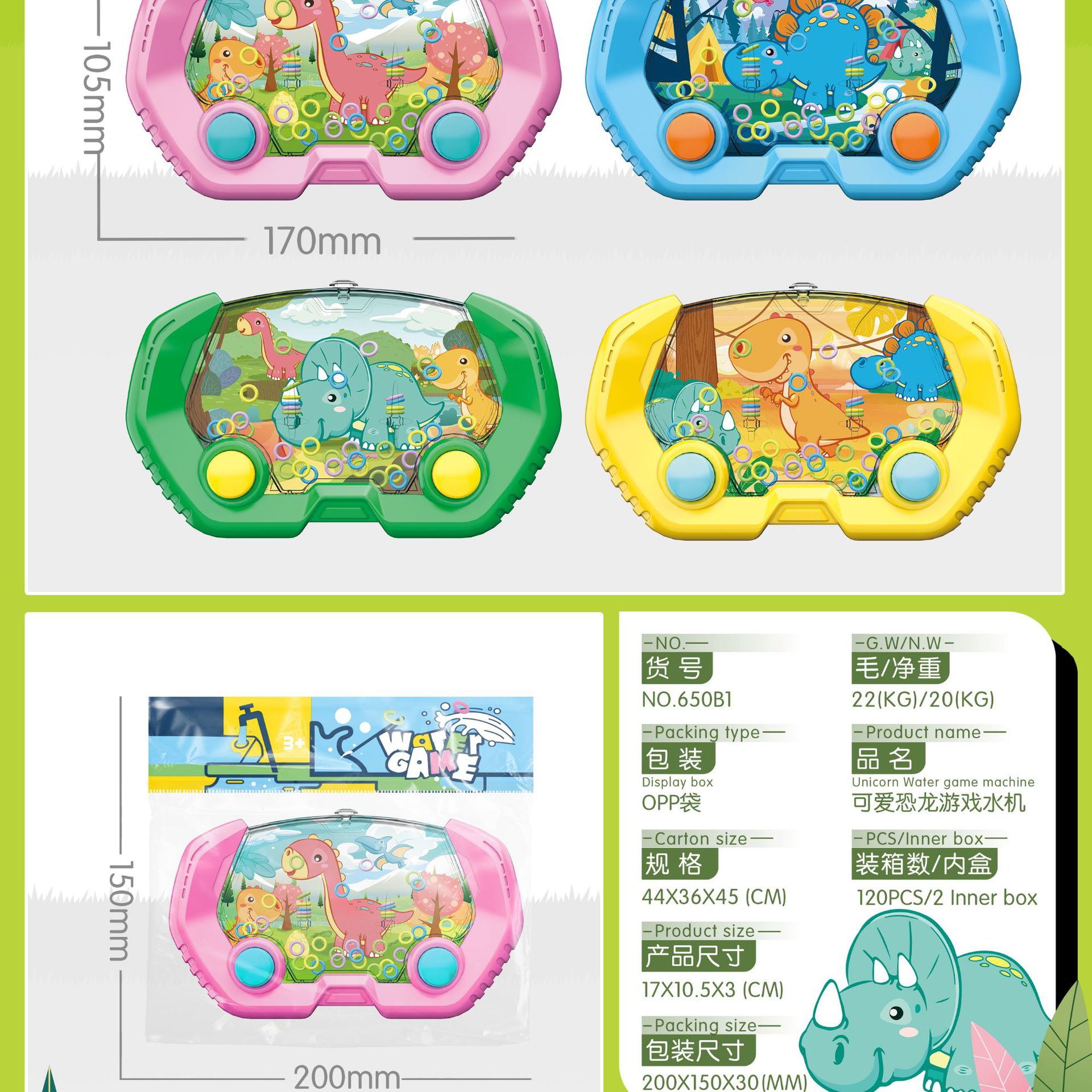Máquina de agua de anillo transfronterizo juguete máquina de juego portátil de Navidad dinosaurio watergamepsp puesto juego móvil regalo