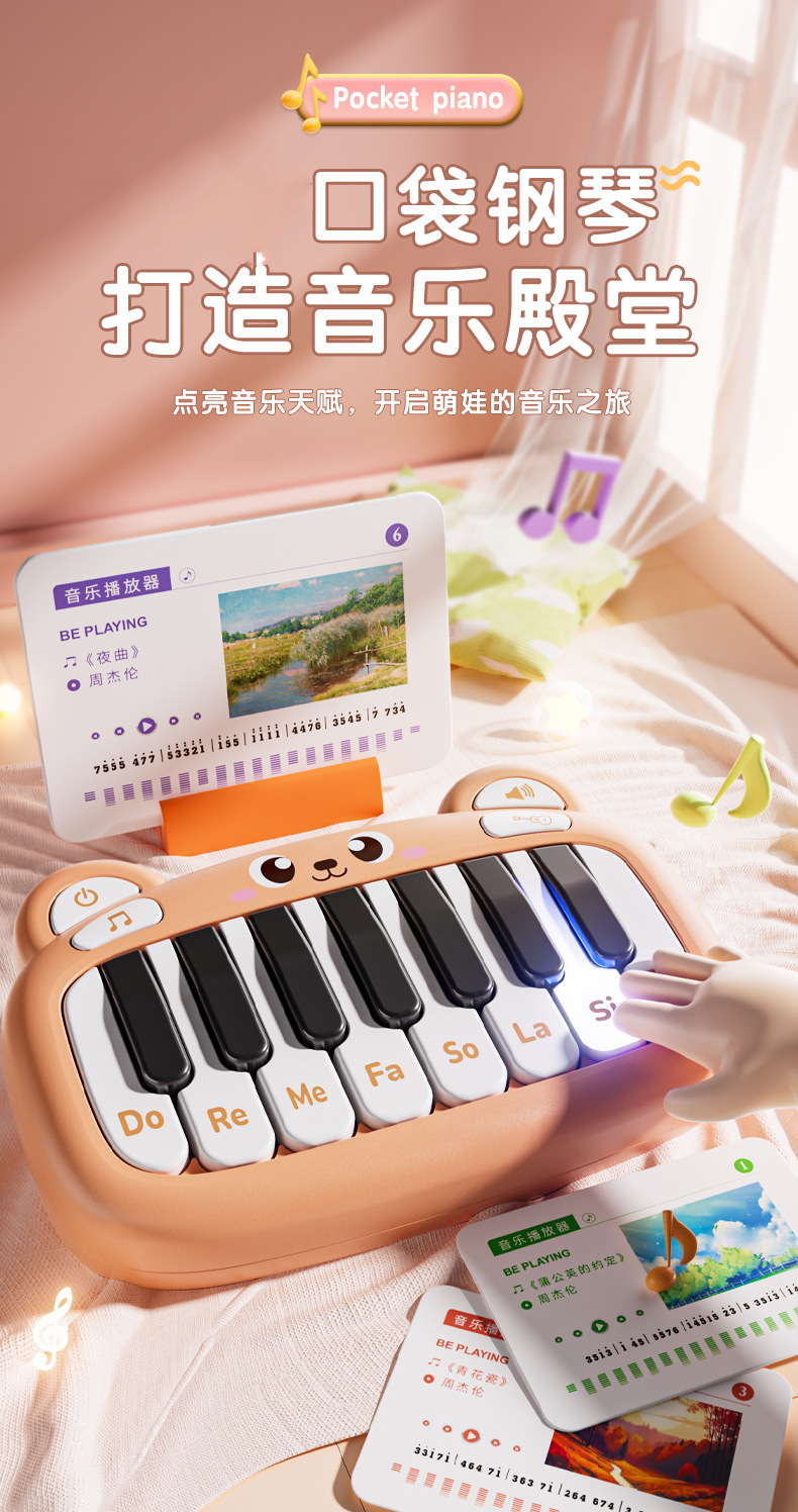 Cartoon Pocket Electronic Instruments Juguetes para niños Teclado mini luminoso Piano con altavoces de muñeca