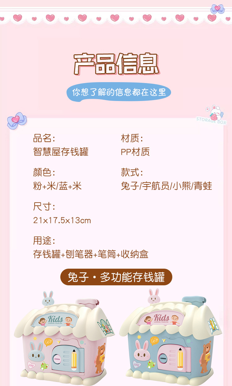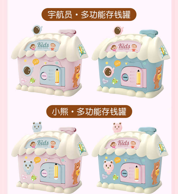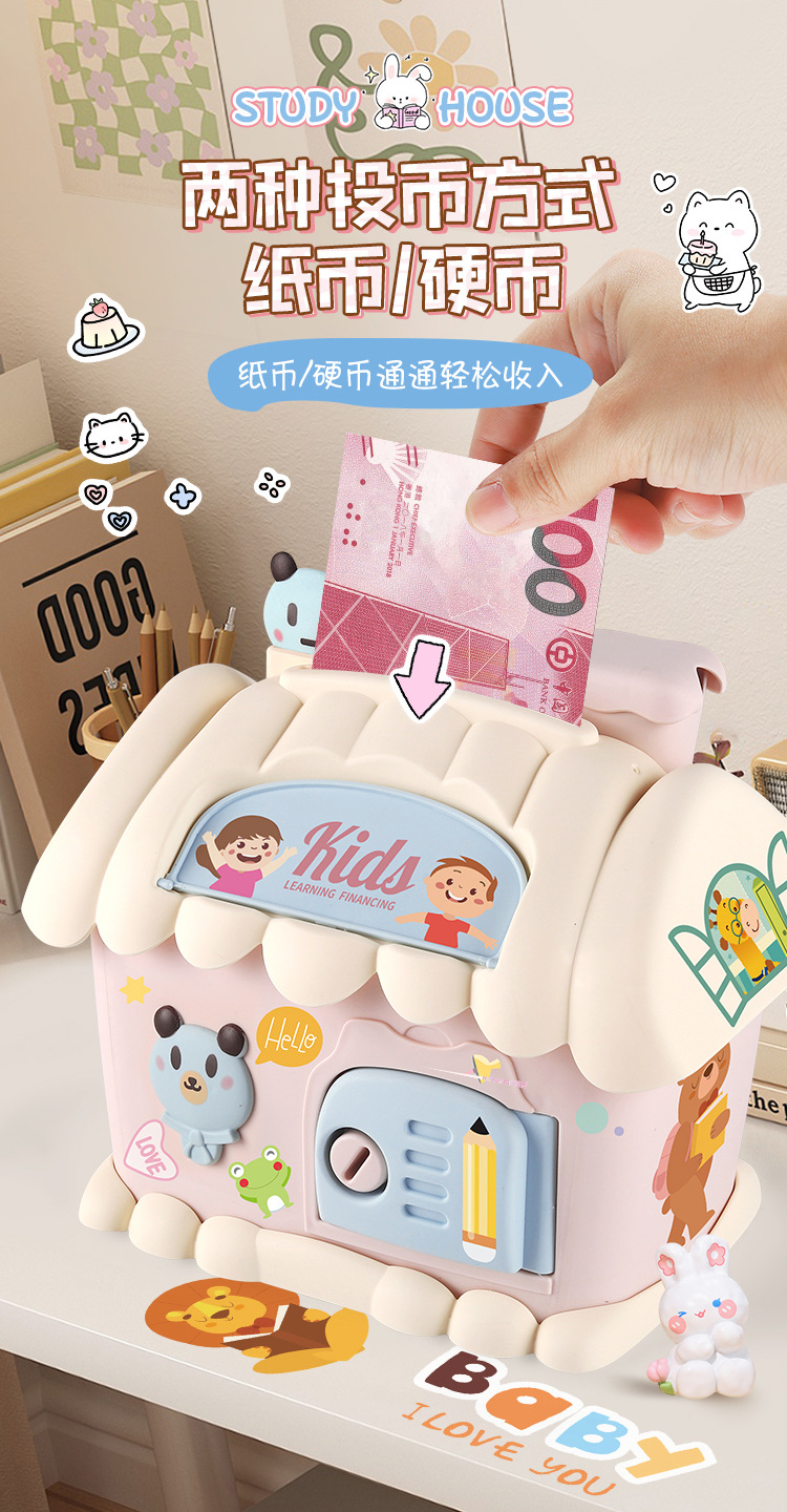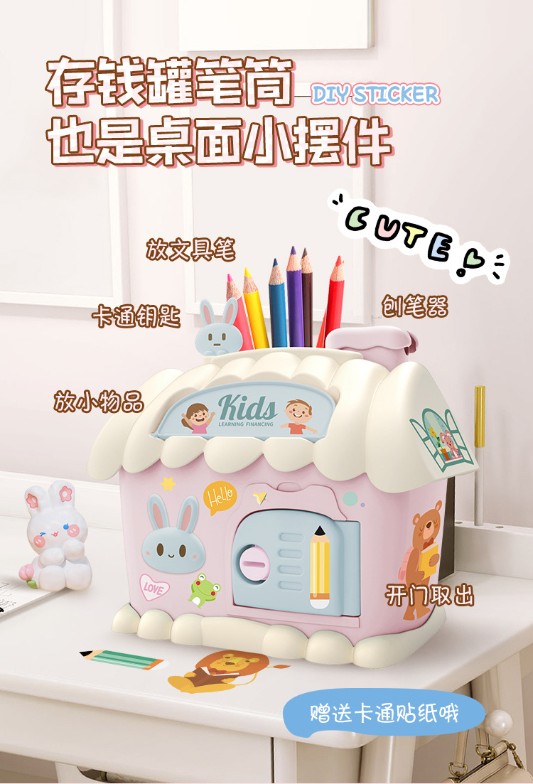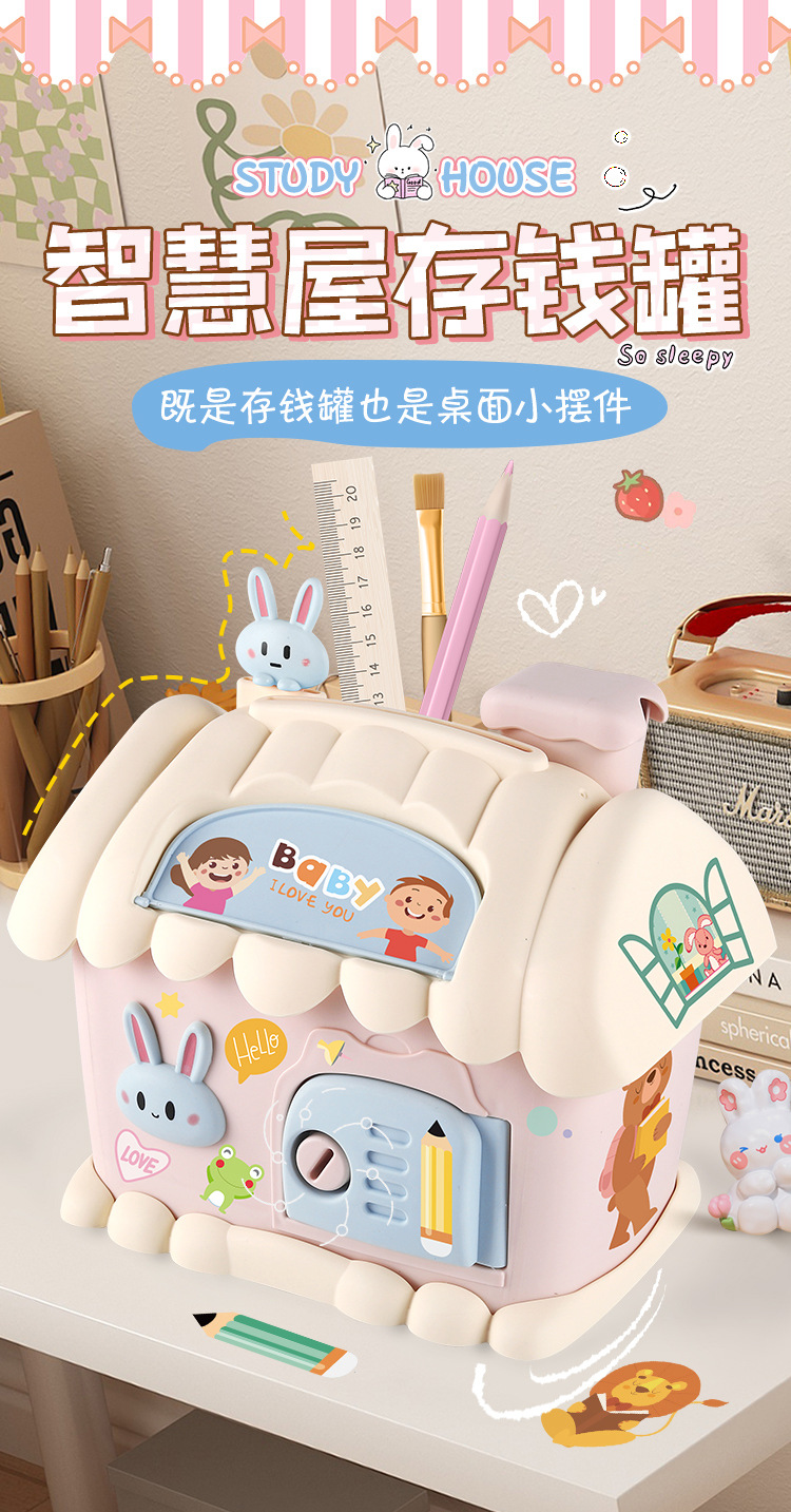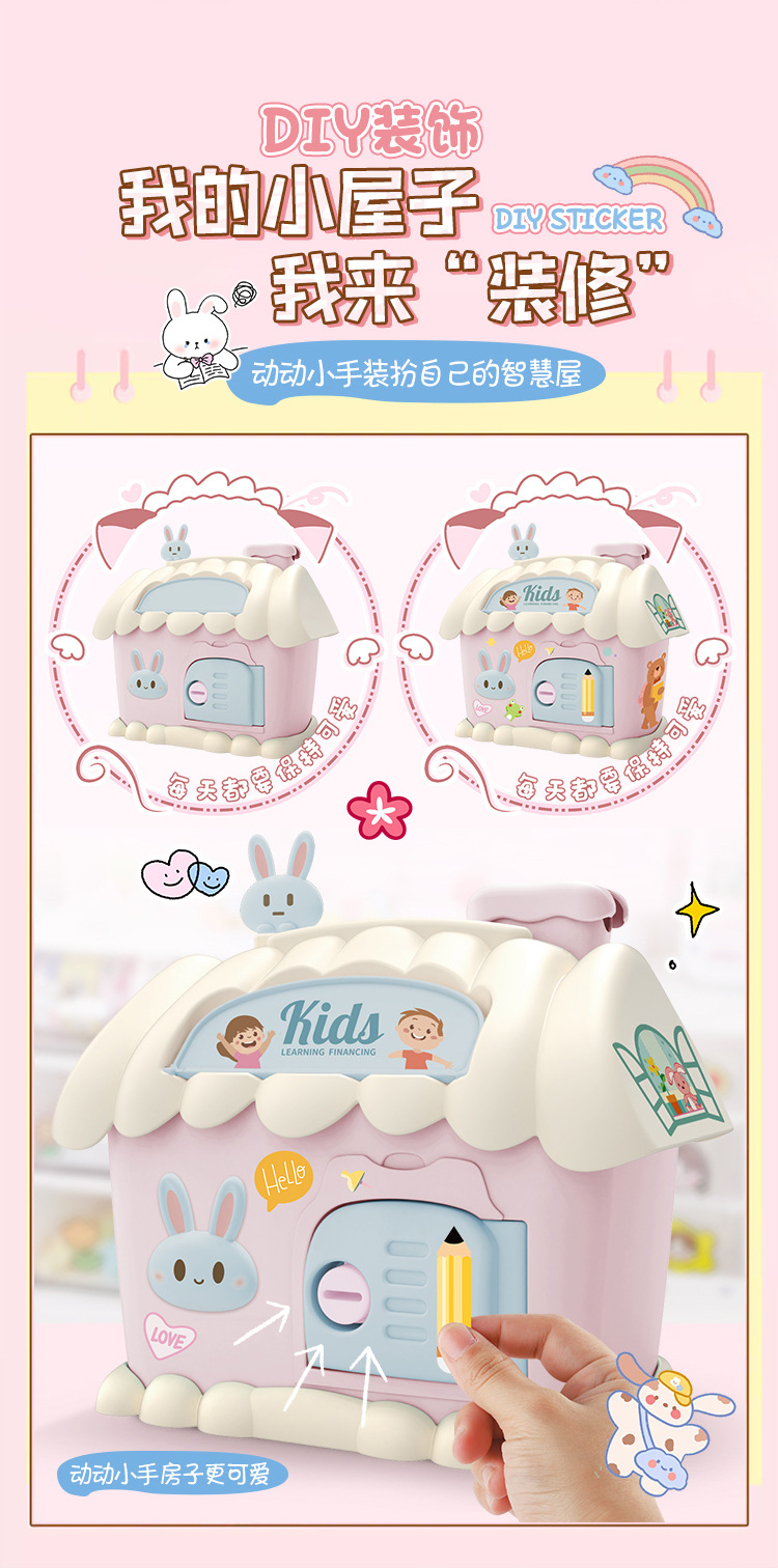 Casa hucha juguete con luz clave hucha niños papelería caja de almacenamiento conejo decoración regalo de cumpleaños