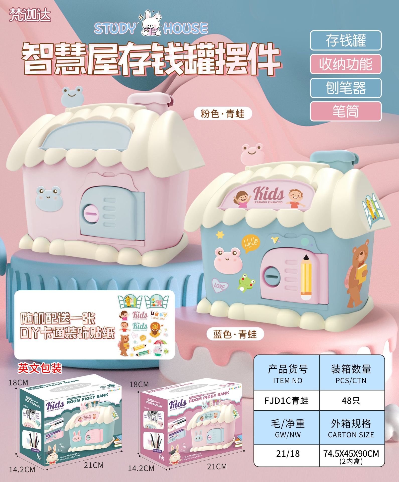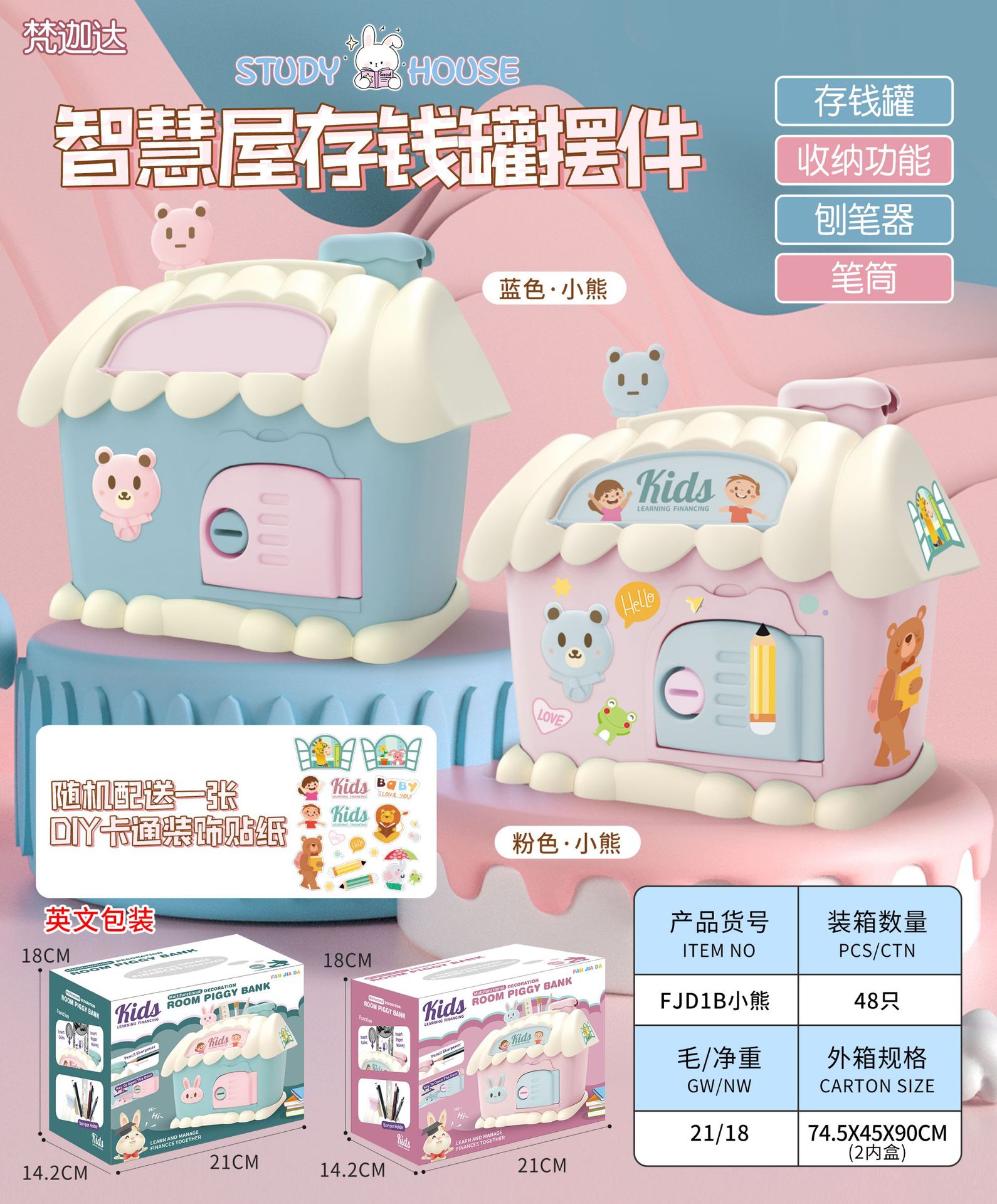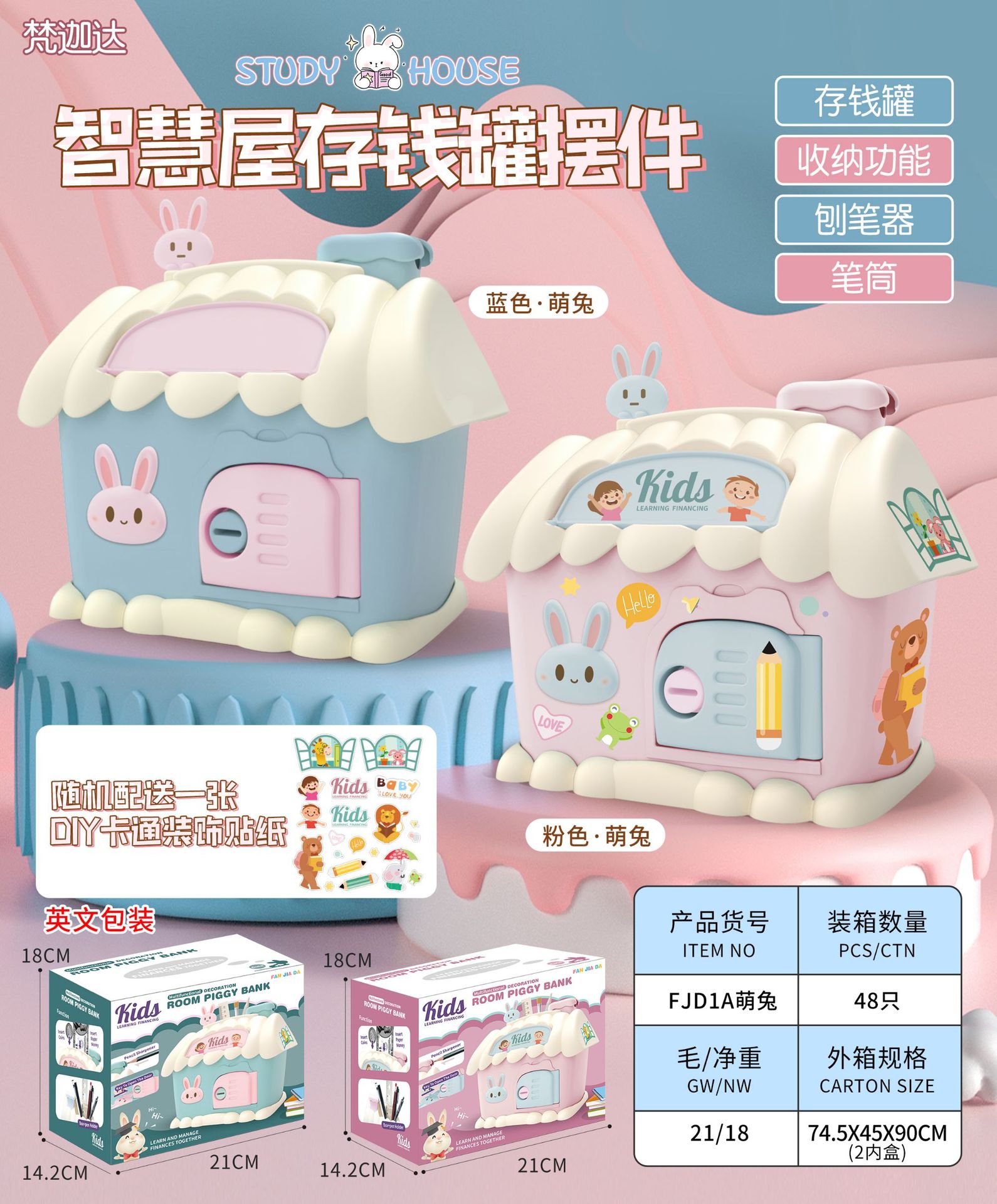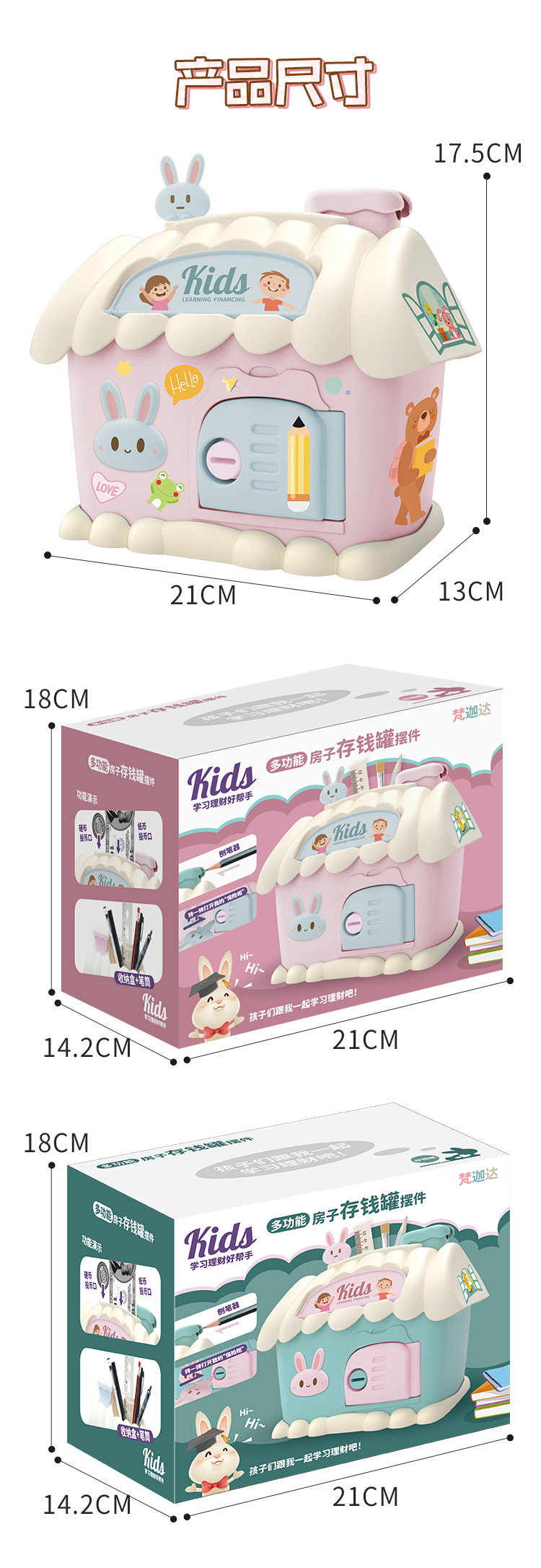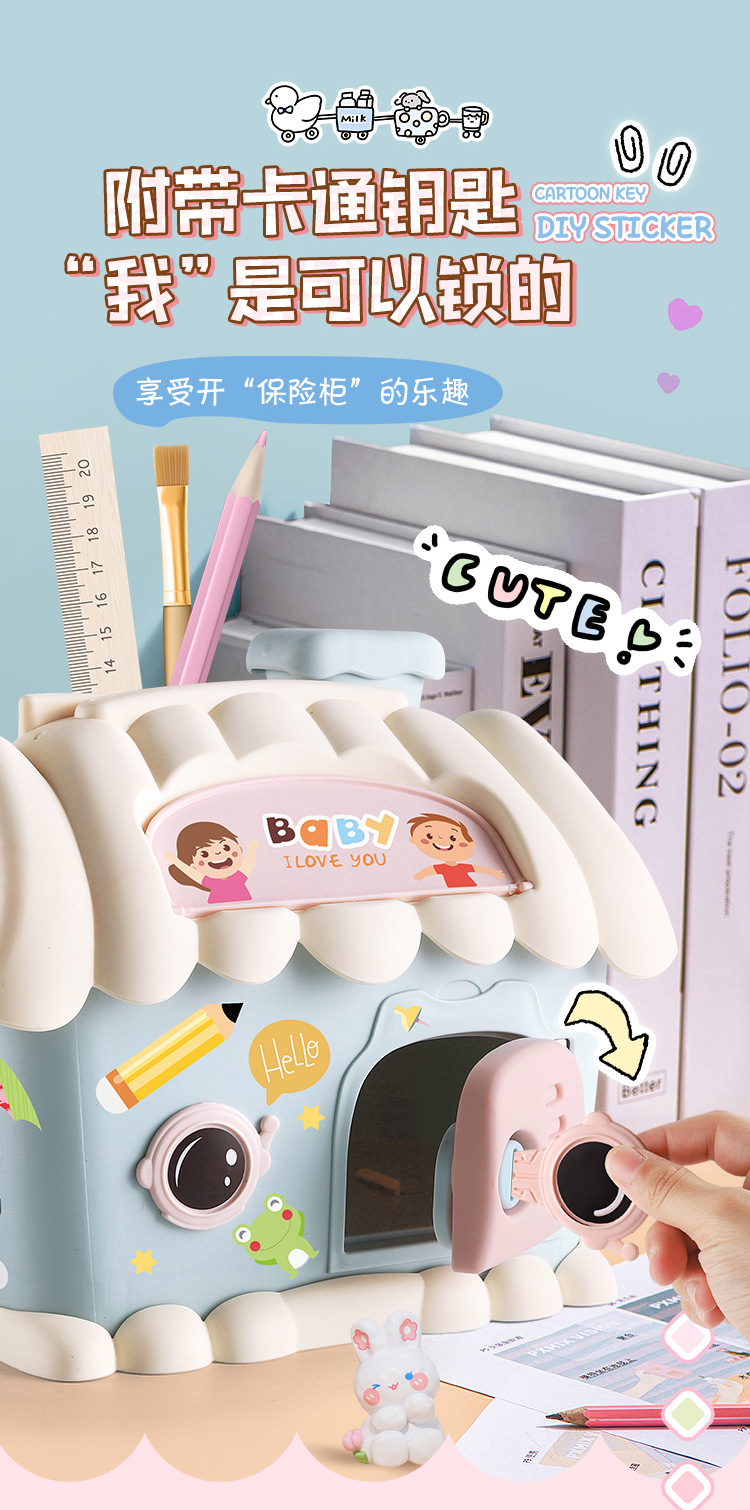 Casa hucha juguete con luz clave hucha niños papelería caja de almacenamiento conejo decoración regalo de cumpleaños