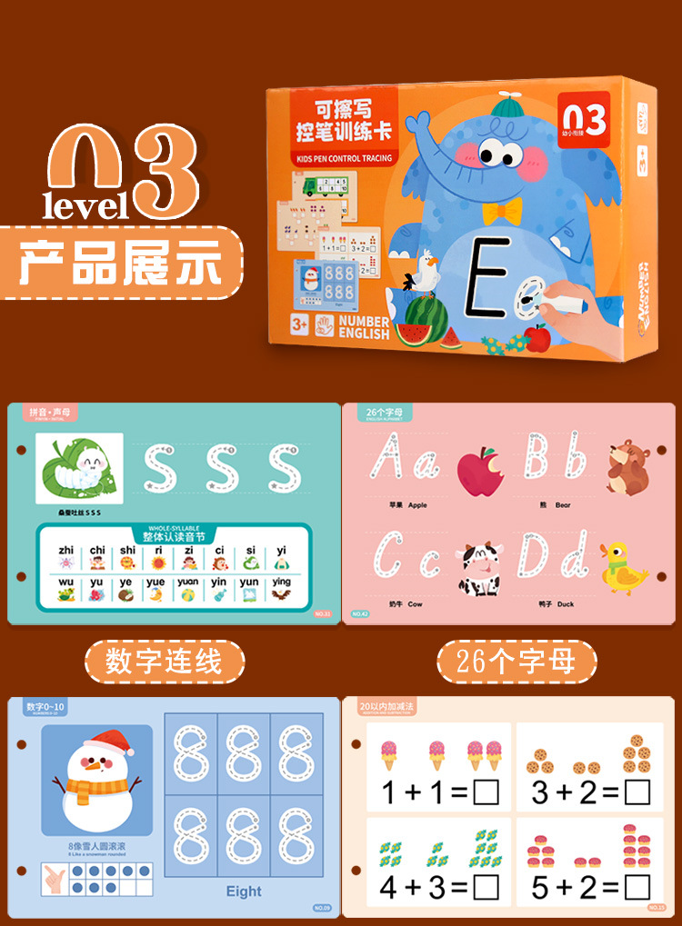 ![Tarjeta de entrenamiento de control de pluma borrable [Estilo naranja 52 páginas]](https://cbu01.alicdn.com/img/ibank/O1CN01ivT7oO2KylNCvAPHq_!!2211069419626-0-cib.jpg)