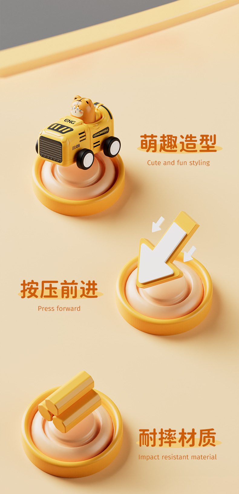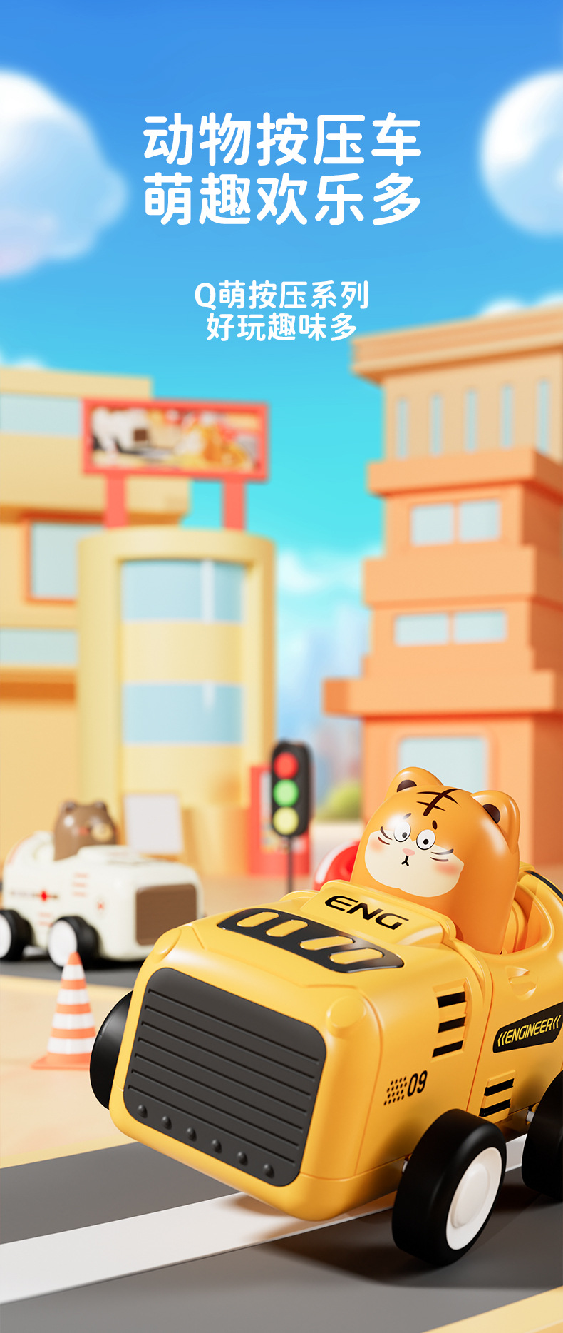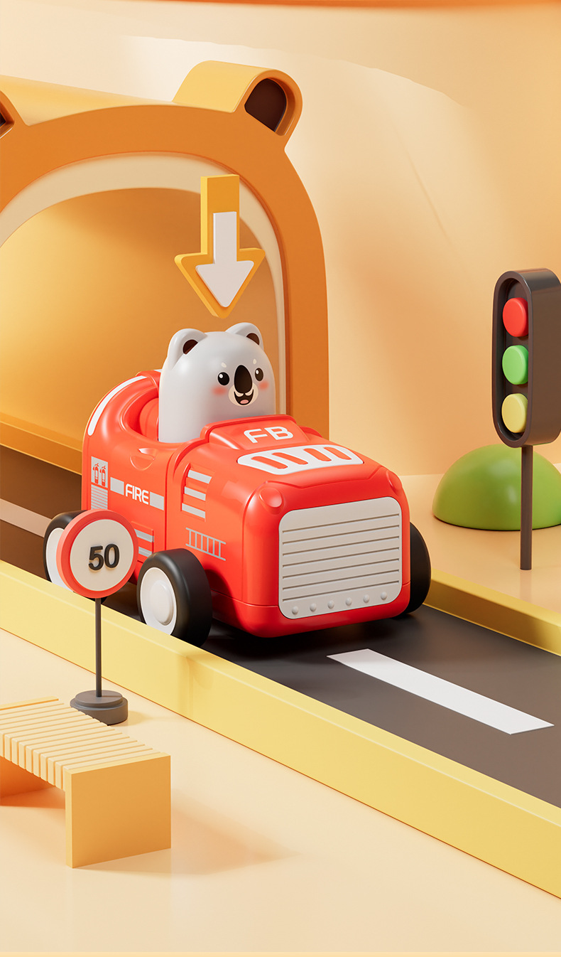 Temporada escolar de dibujos animados presionar animales de carreras coches de ingeniería de niños deslizantes modelo de juguete coches de jardín de infantes estudiantes de 3 años