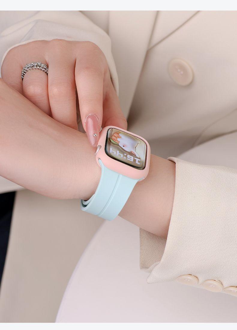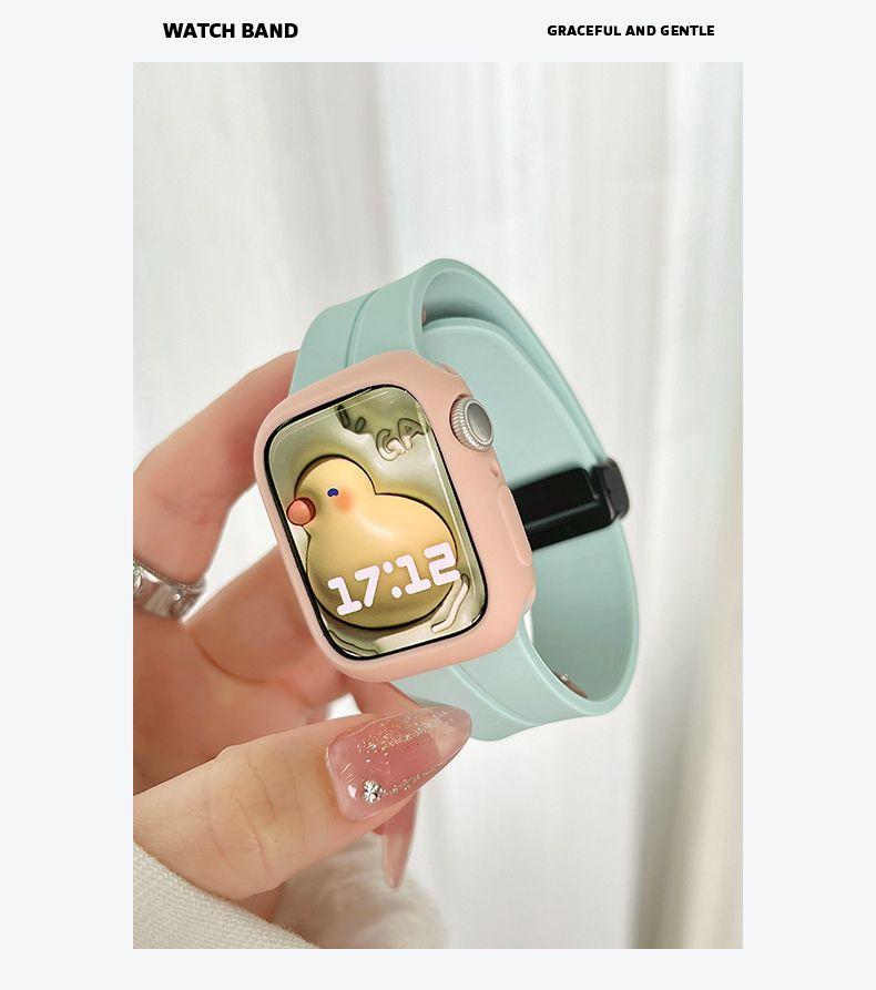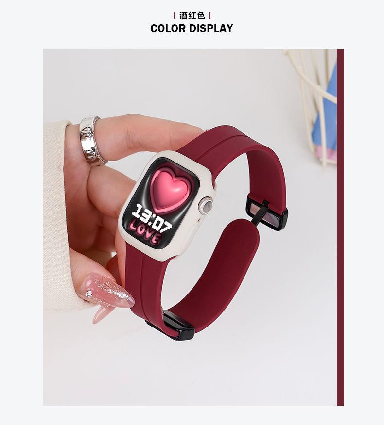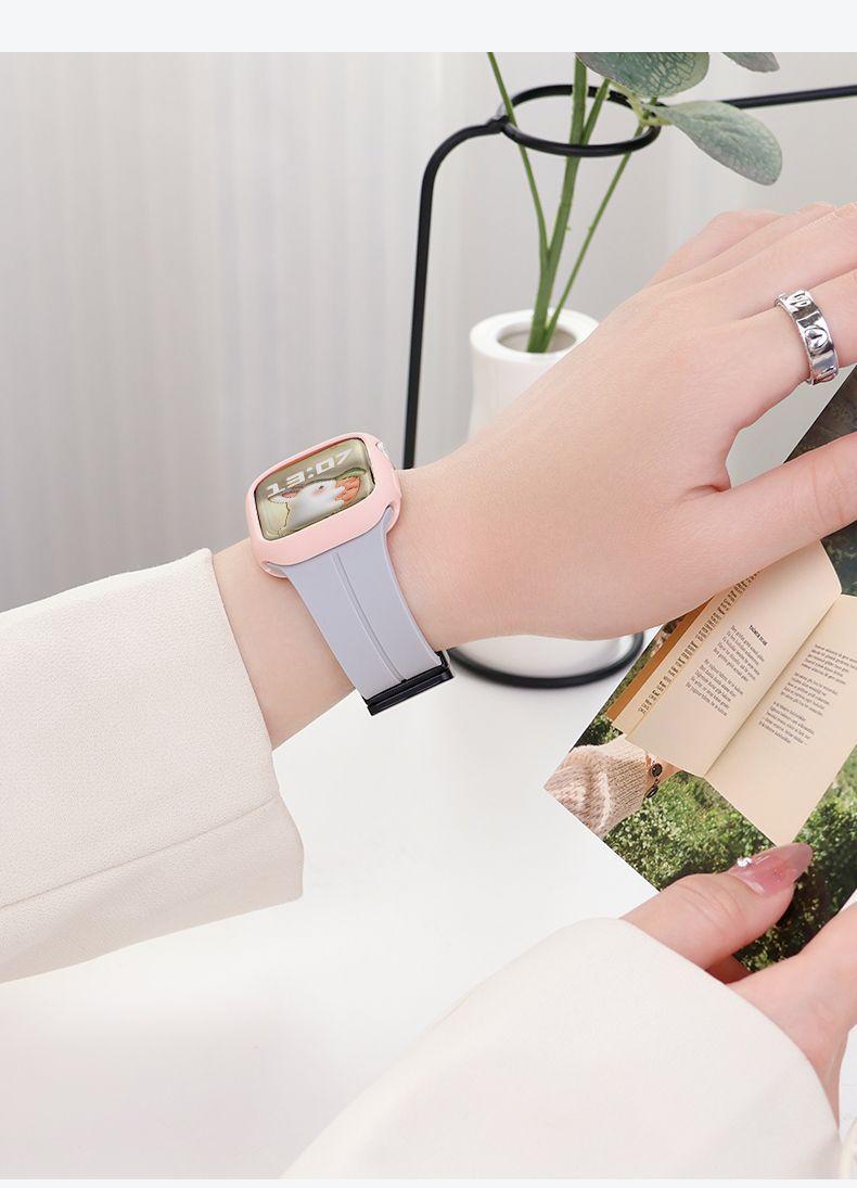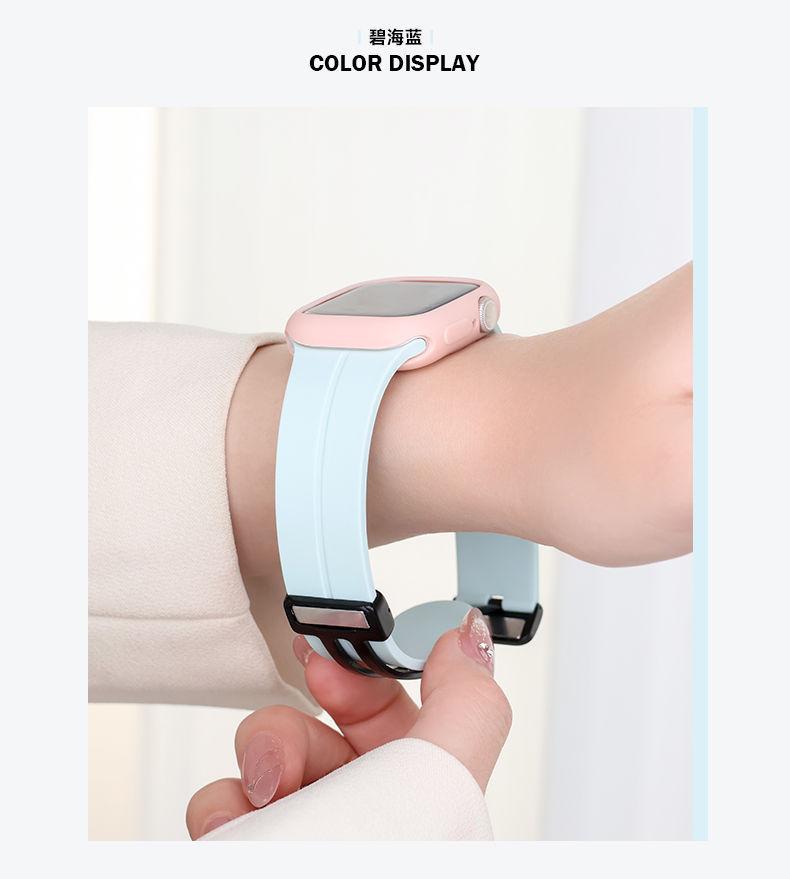 Correa de reloj Apple aplicable iwatch10987Ultra silicona líquida con hebilla plegable magnética carcasa protectora de caramelo