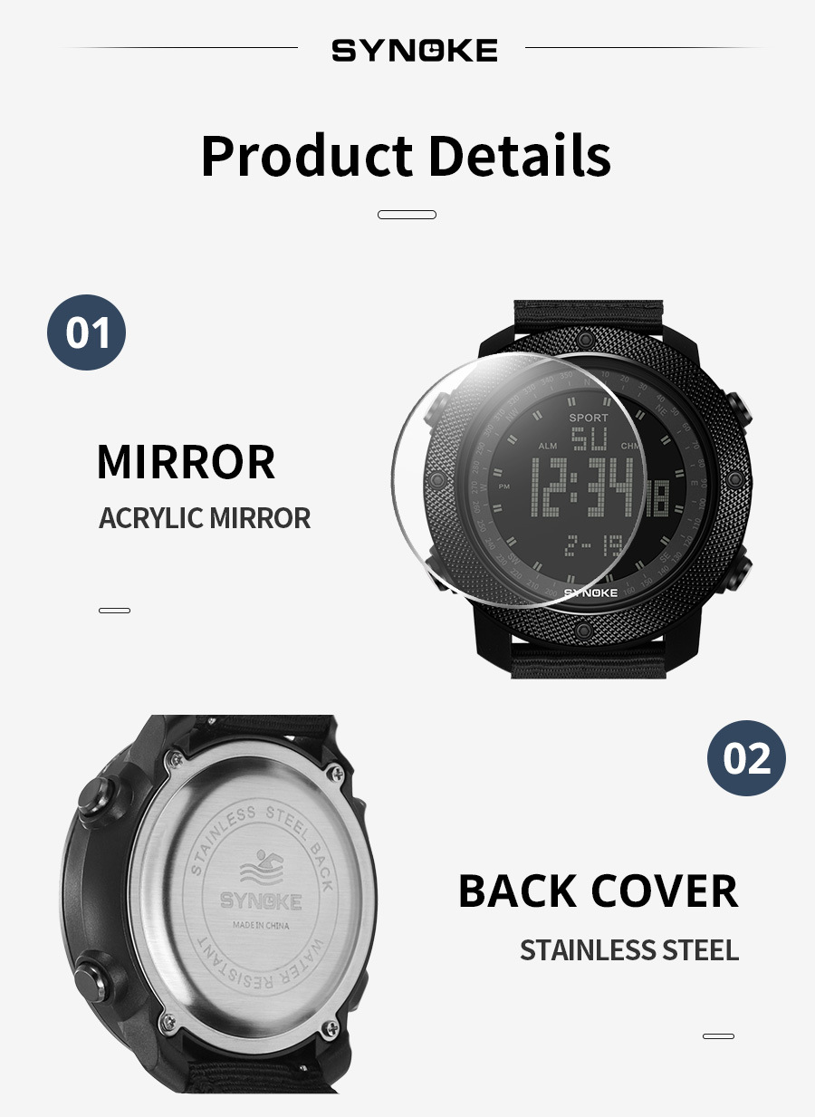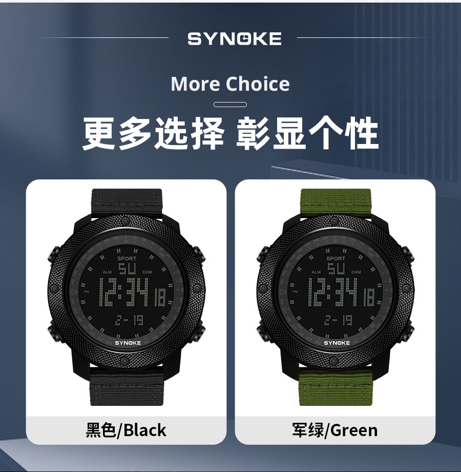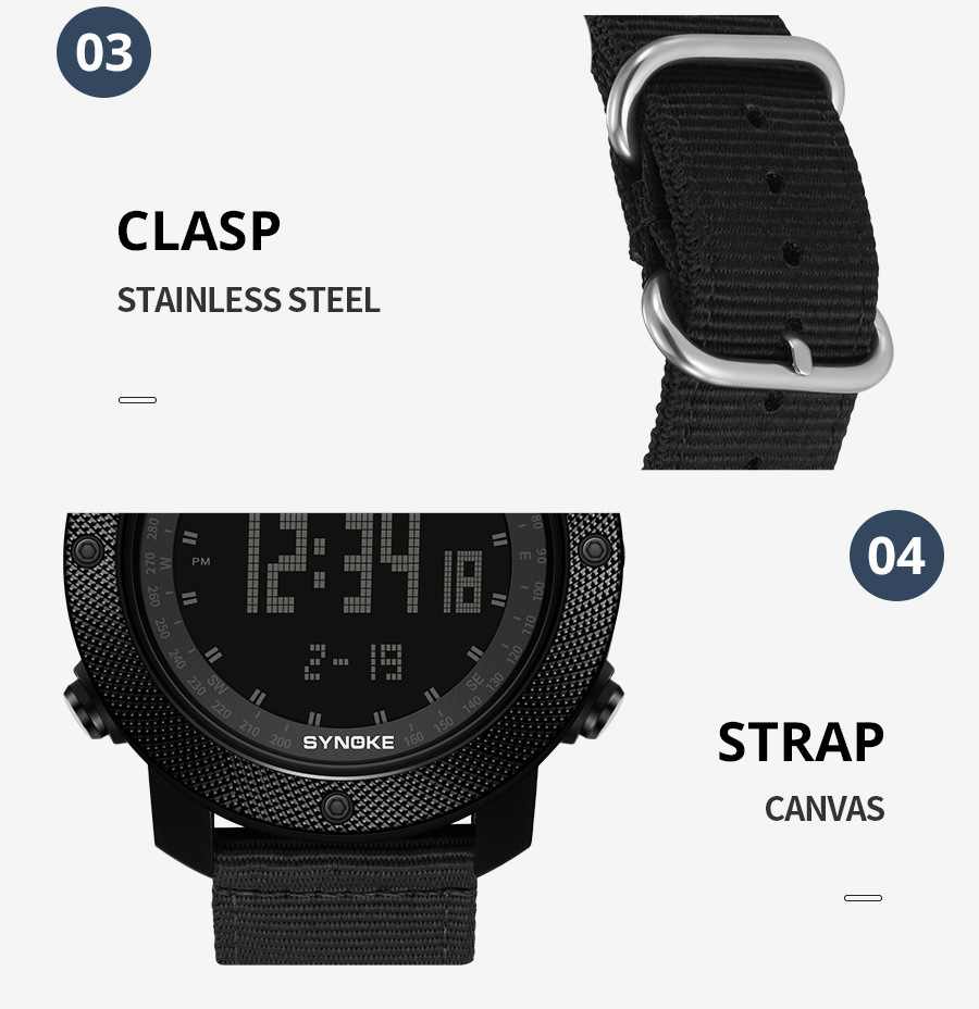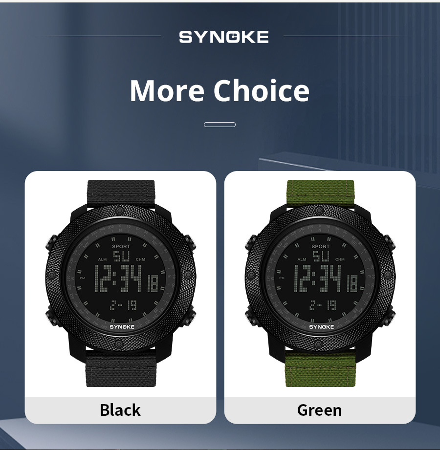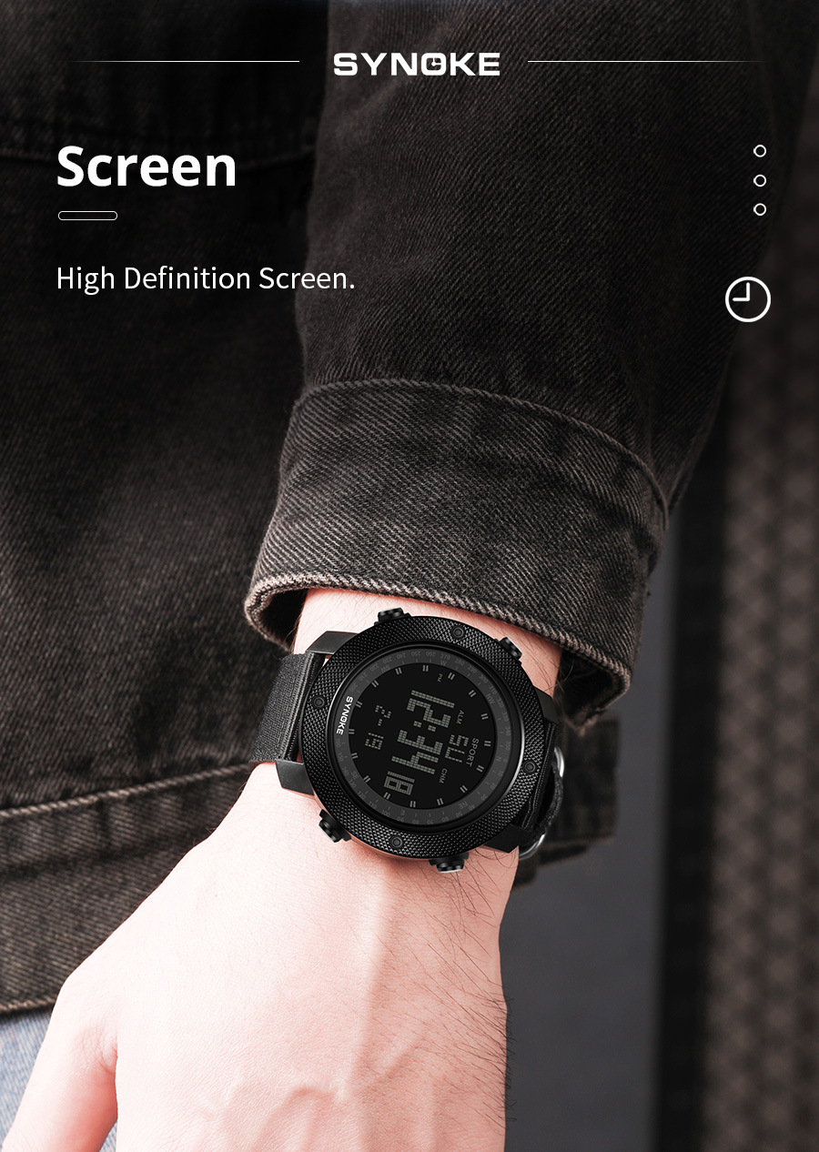 SYNOKE hombres deportes reloj electrónico correa de nylon multifuncional impermeable luminoso pantalla grande al aire libre montañismo moda Deportes