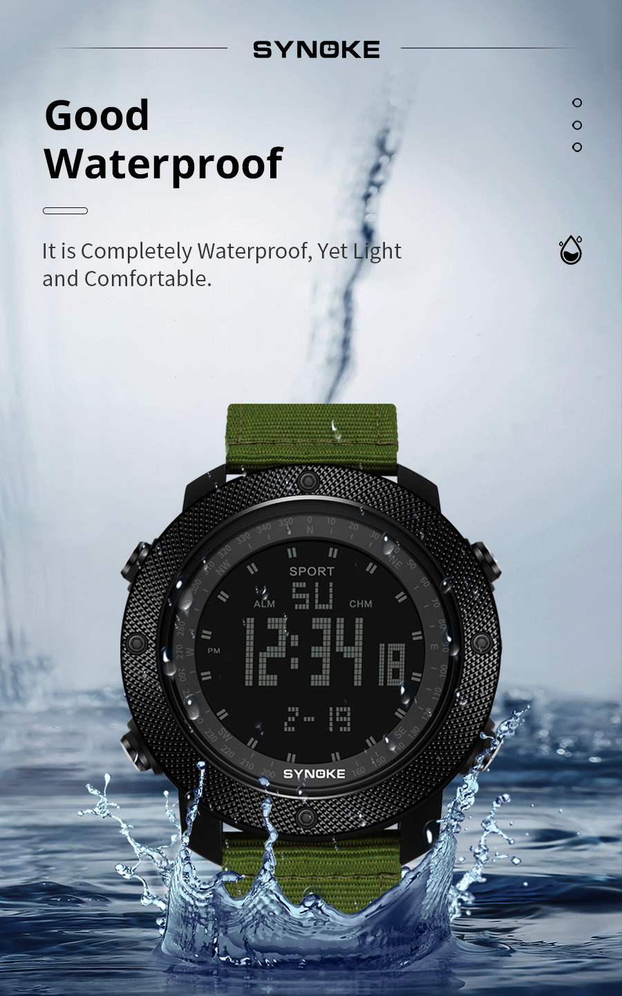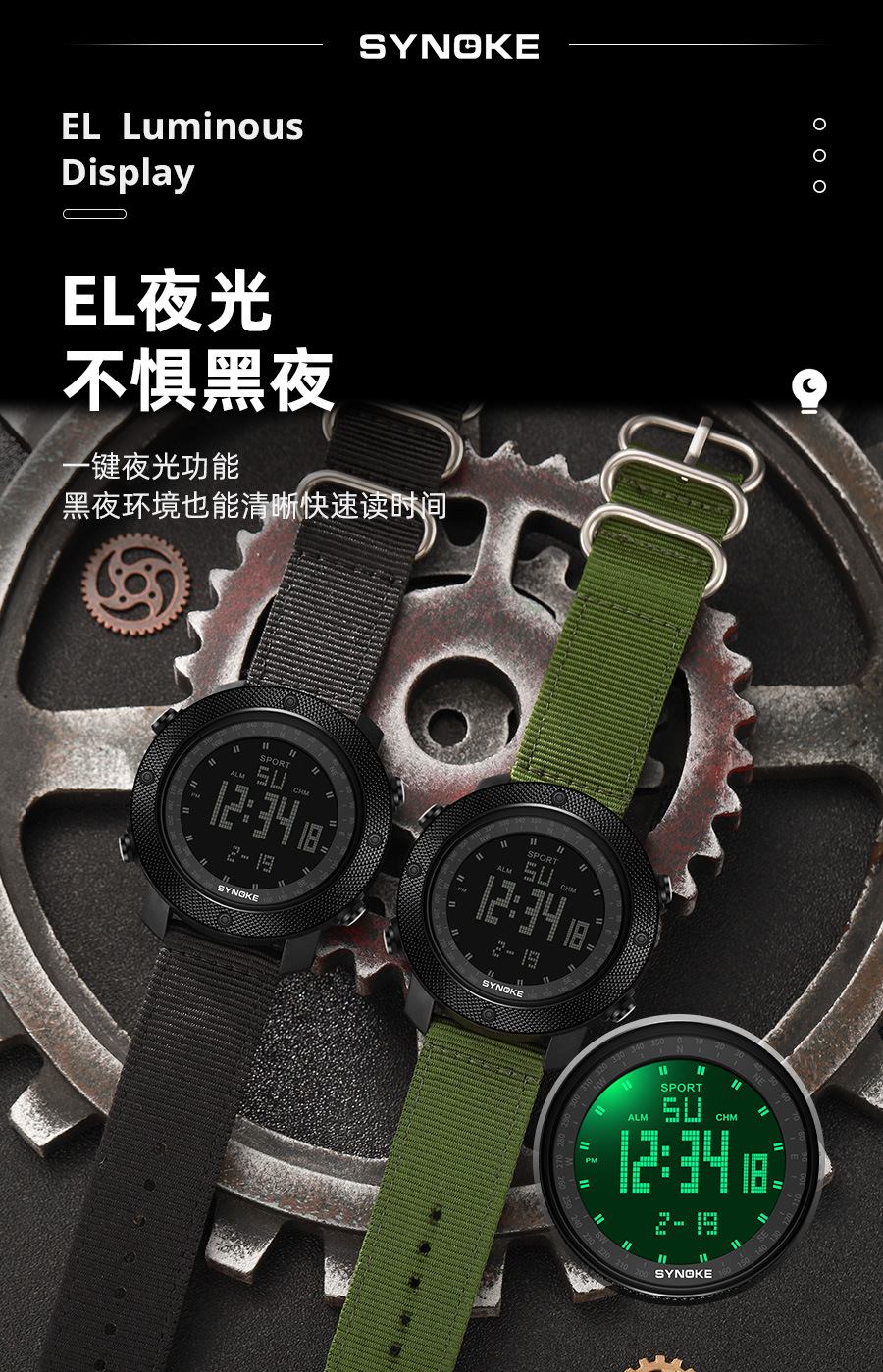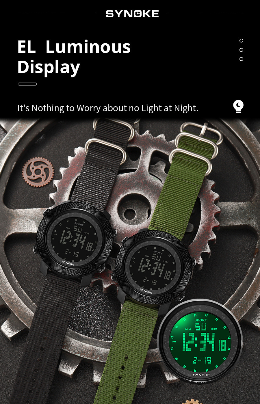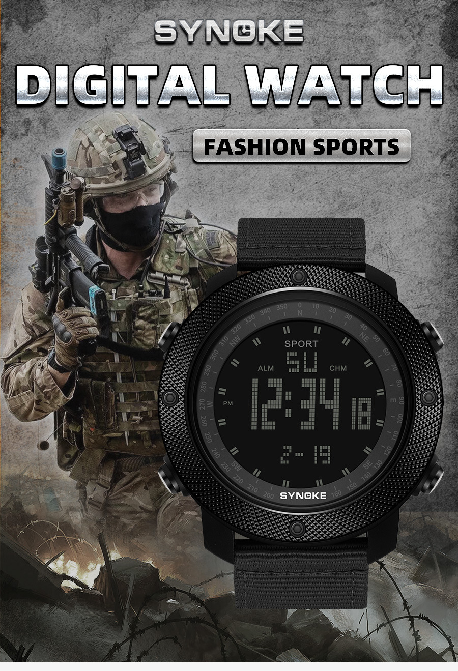 SYNOKE hombres deportes reloj electrónico correa de nylon multifuncional impermeable luminoso pantalla grande al aire libre montañismo moda Deportes