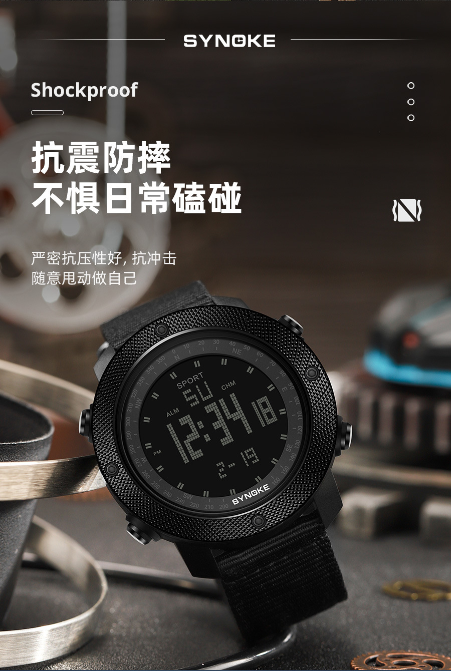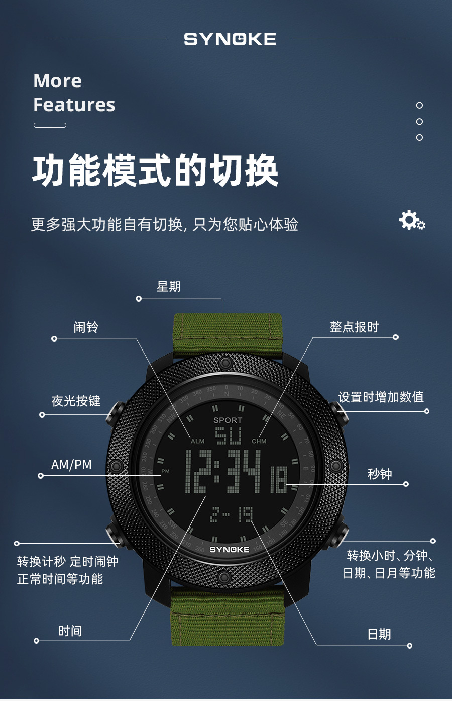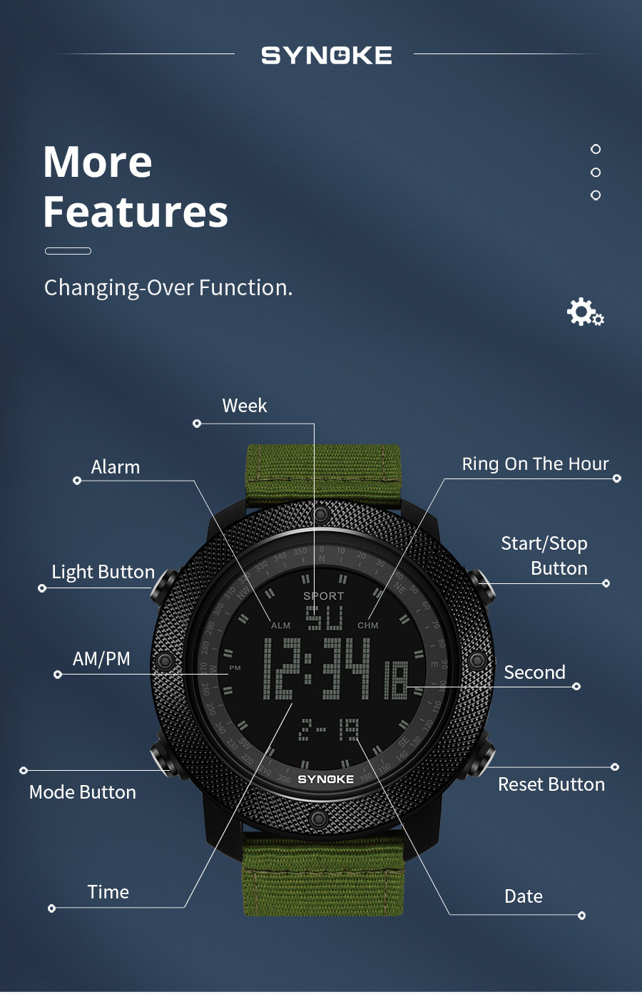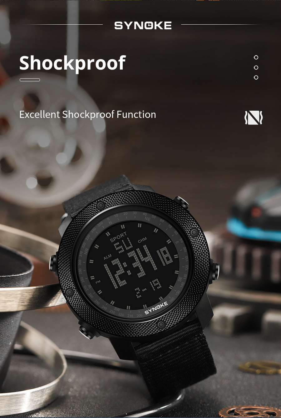SYNOKE hombres deportes reloj electrónico correa de nylon multifuncional impermeable luminoso pantalla grande al aire libre montañismo moda Deportes