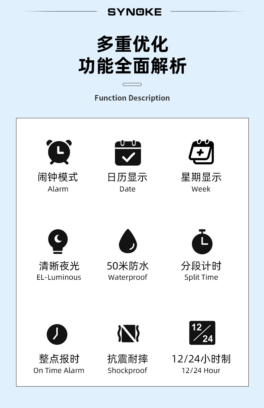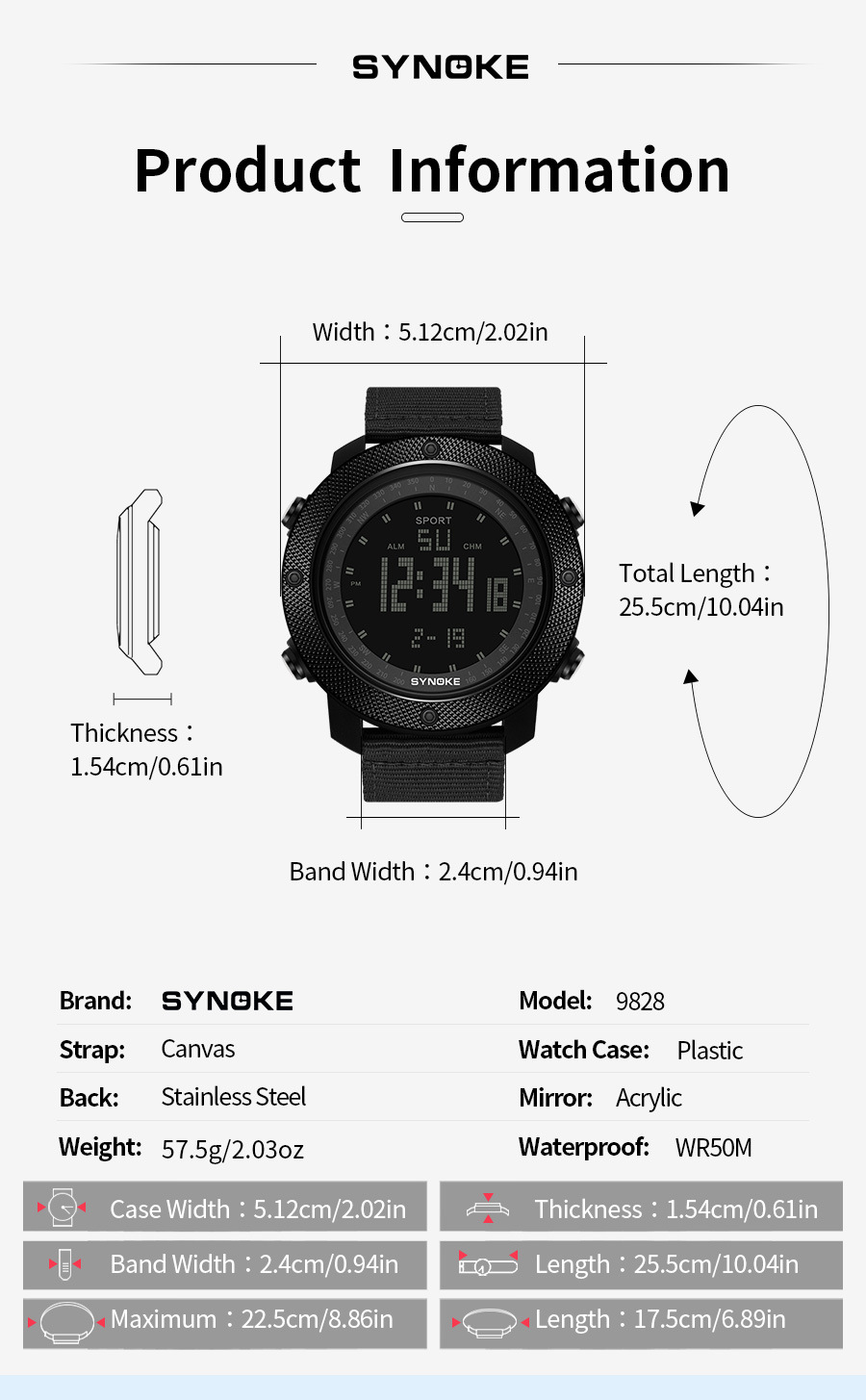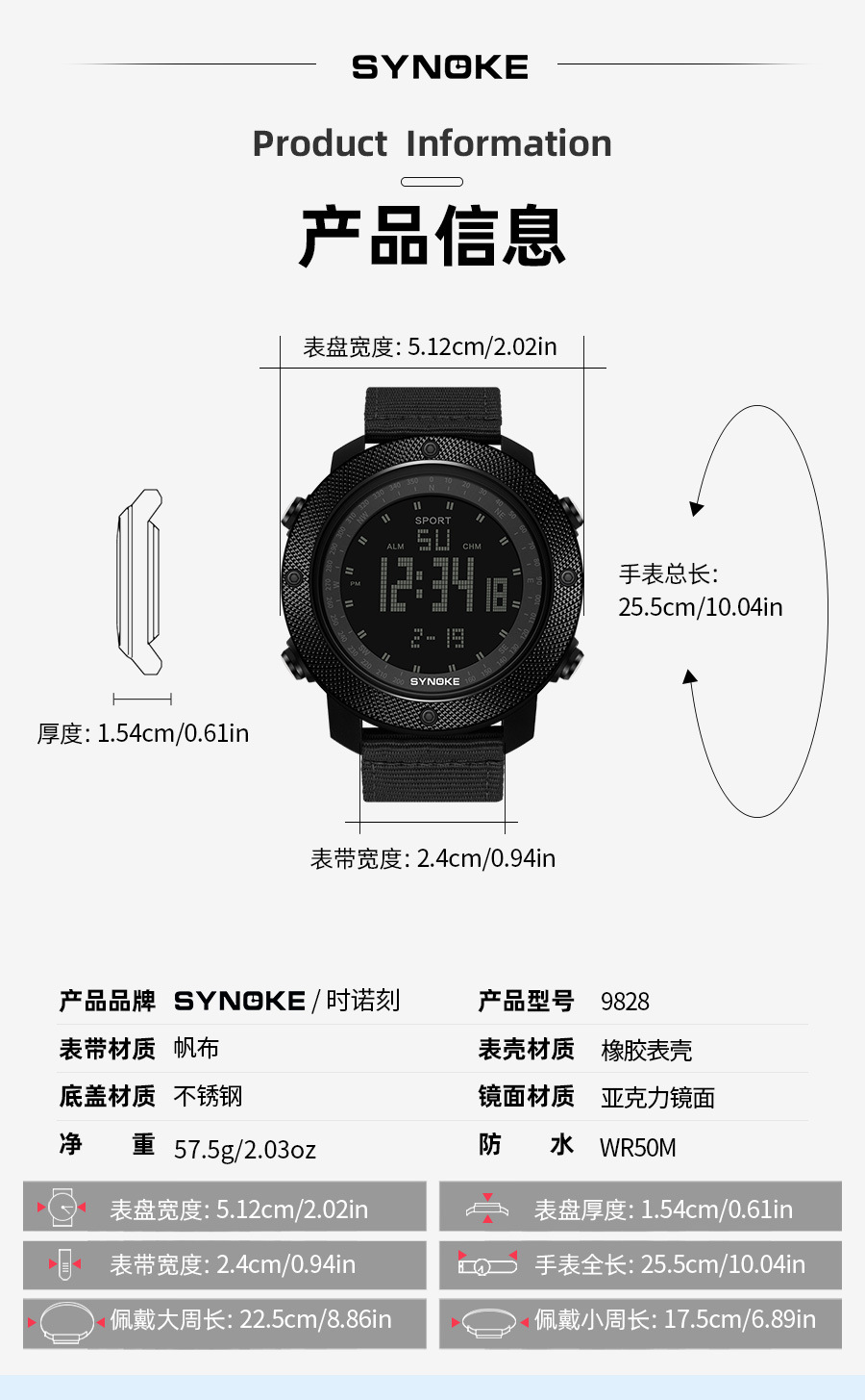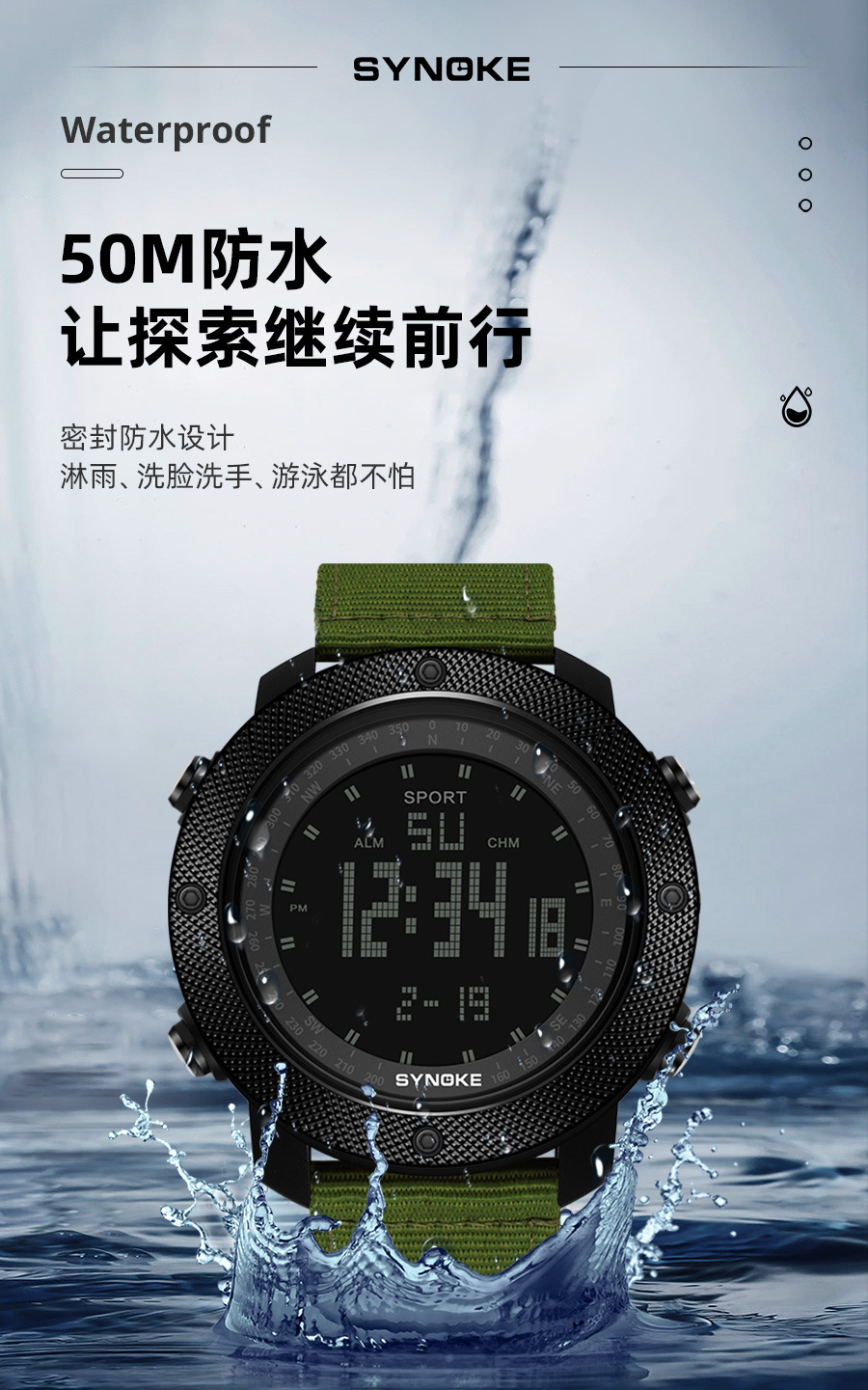 SYNOKE hombres deportes reloj electrónico correa de nylon multifuncional impermeable luminoso pantalla grande al aire libre montañismo moda Deportes