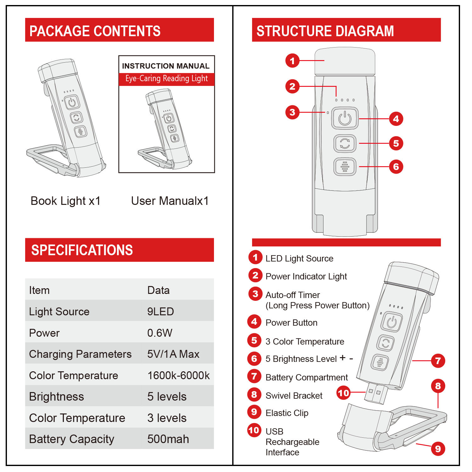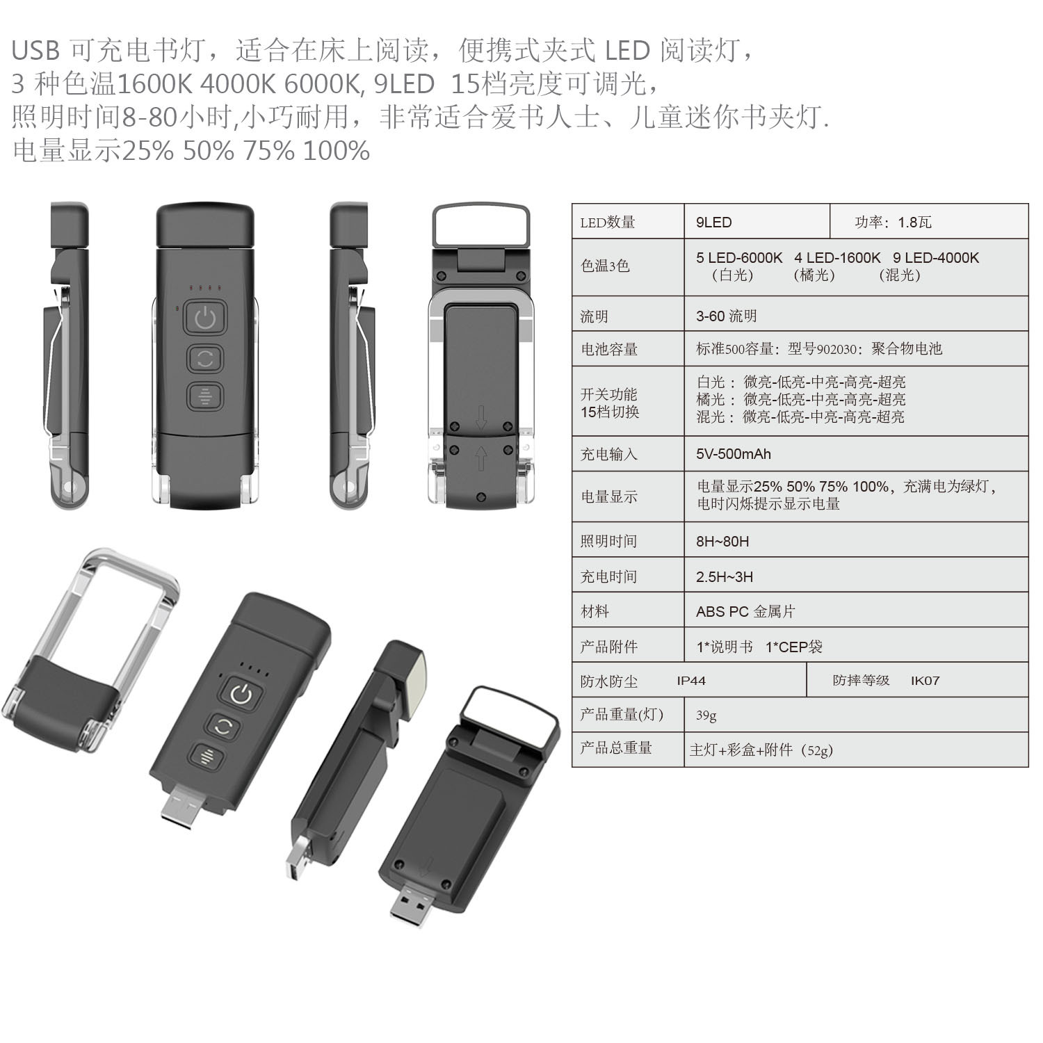 Nuevo clip de lectura luz clip de libro lámpara de mesa música puntuación luz de lectura tarjeta luz usb luz de noche luz de marcador luz