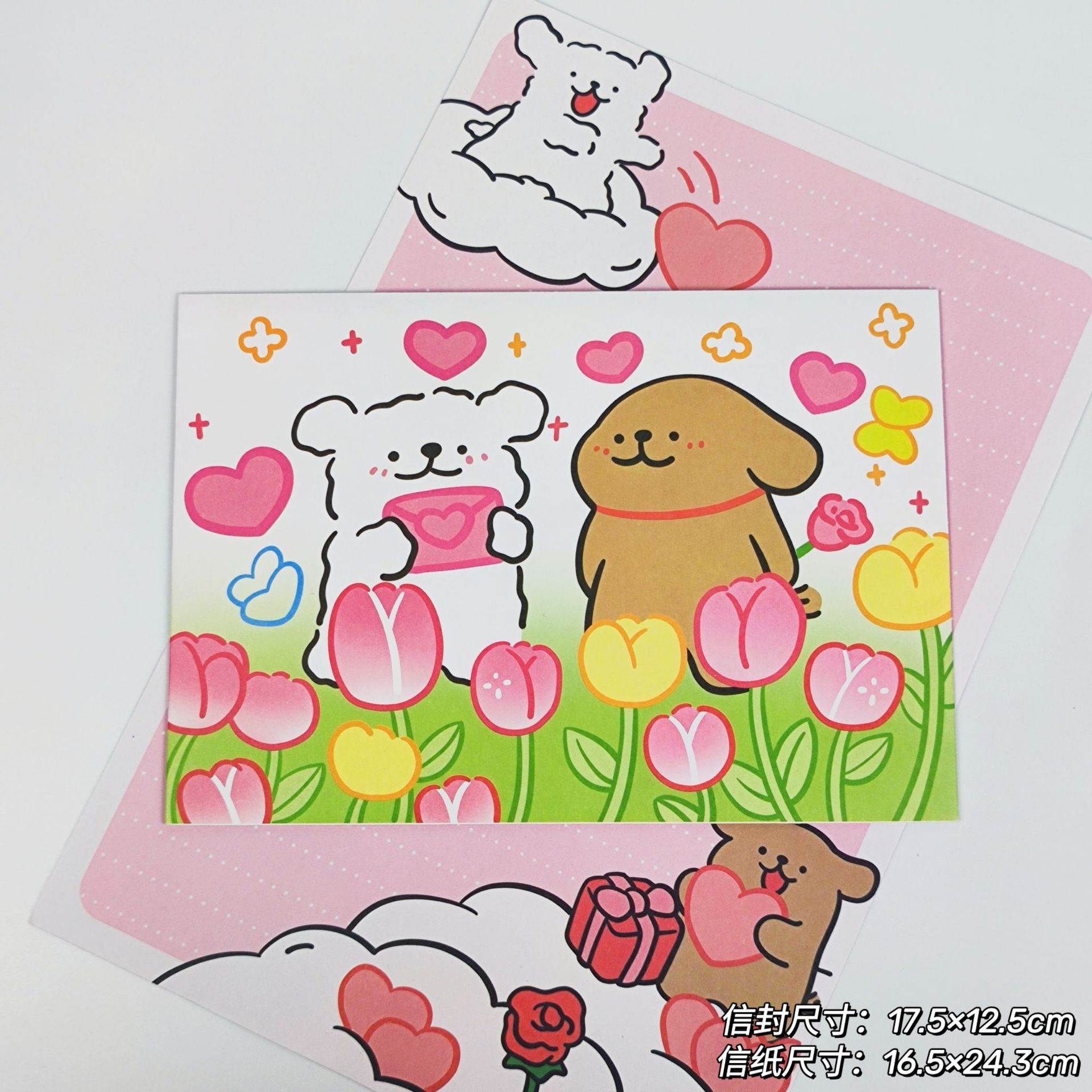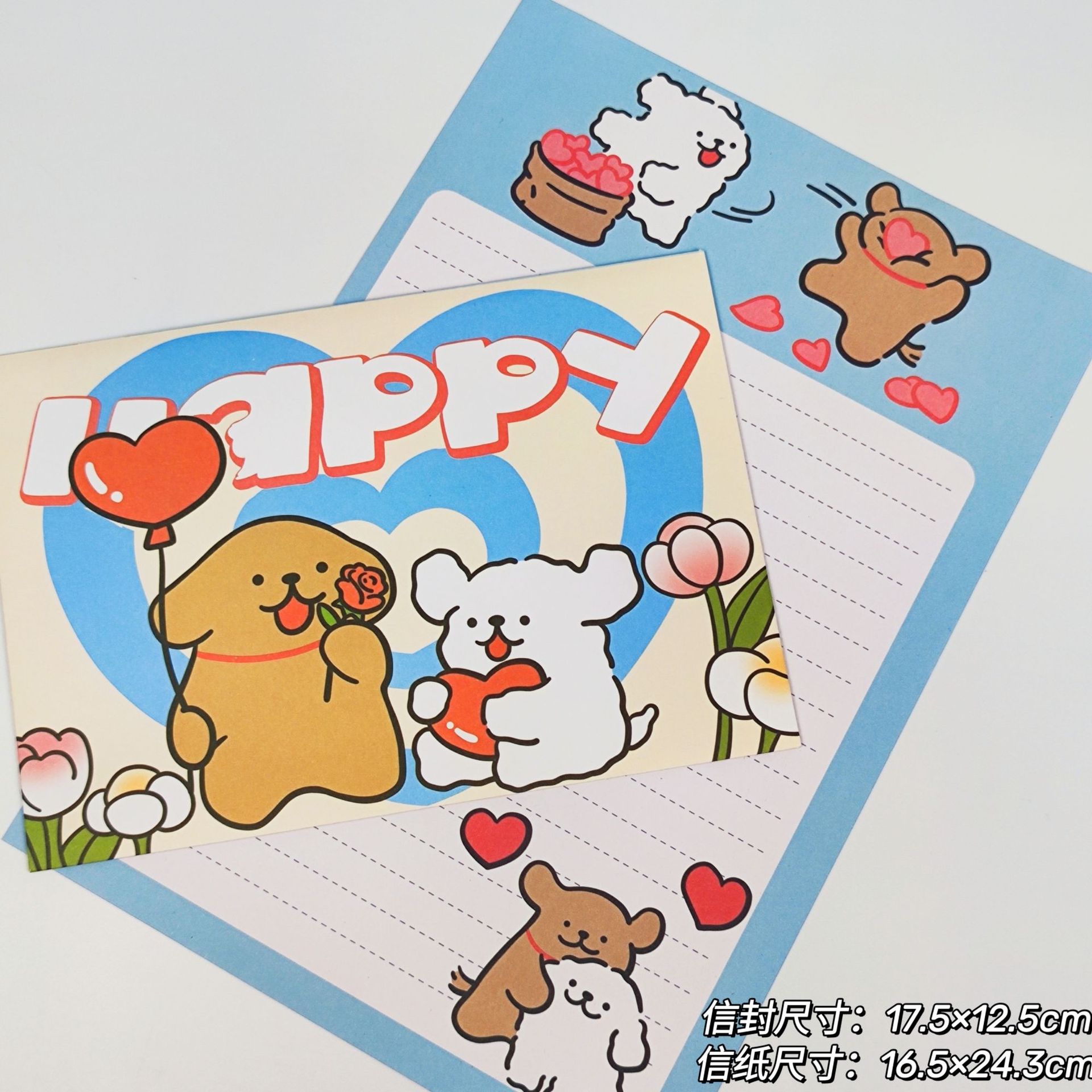 Línea sobre de cachorro Papel de carta Dibujos animados de anime lindo Tarjeta de cumpleaños Mensaje de confesión Regalo de bendición Sobres premium
