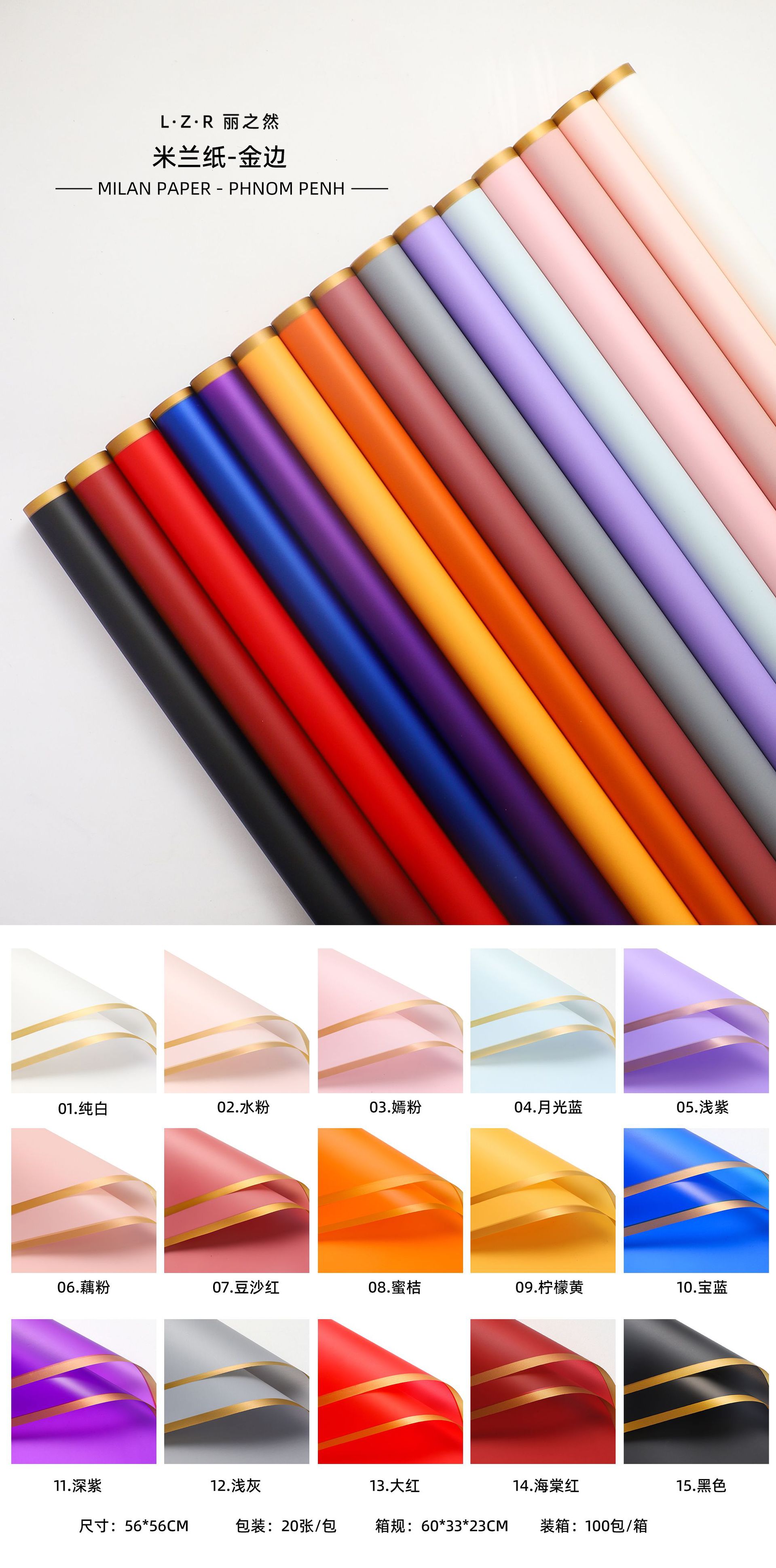 Lizhi Ran Phnom Penh Jelly Film Papel de embalaje de flores mate impermeable Paquete de material de ramo de flores 20 hojas