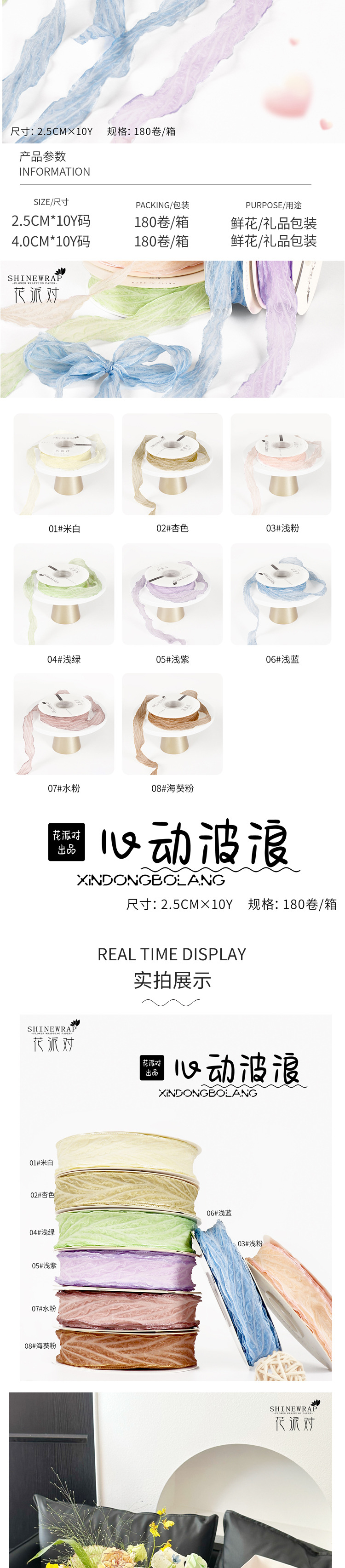 Cinta de embalaje de flores plisada ondulada para fiestas de flores, nueva cinta de embalaje de flores tejida, cinta de hilo para ramos de flores, cinta de regalo para paquetes de regalo con lazo.