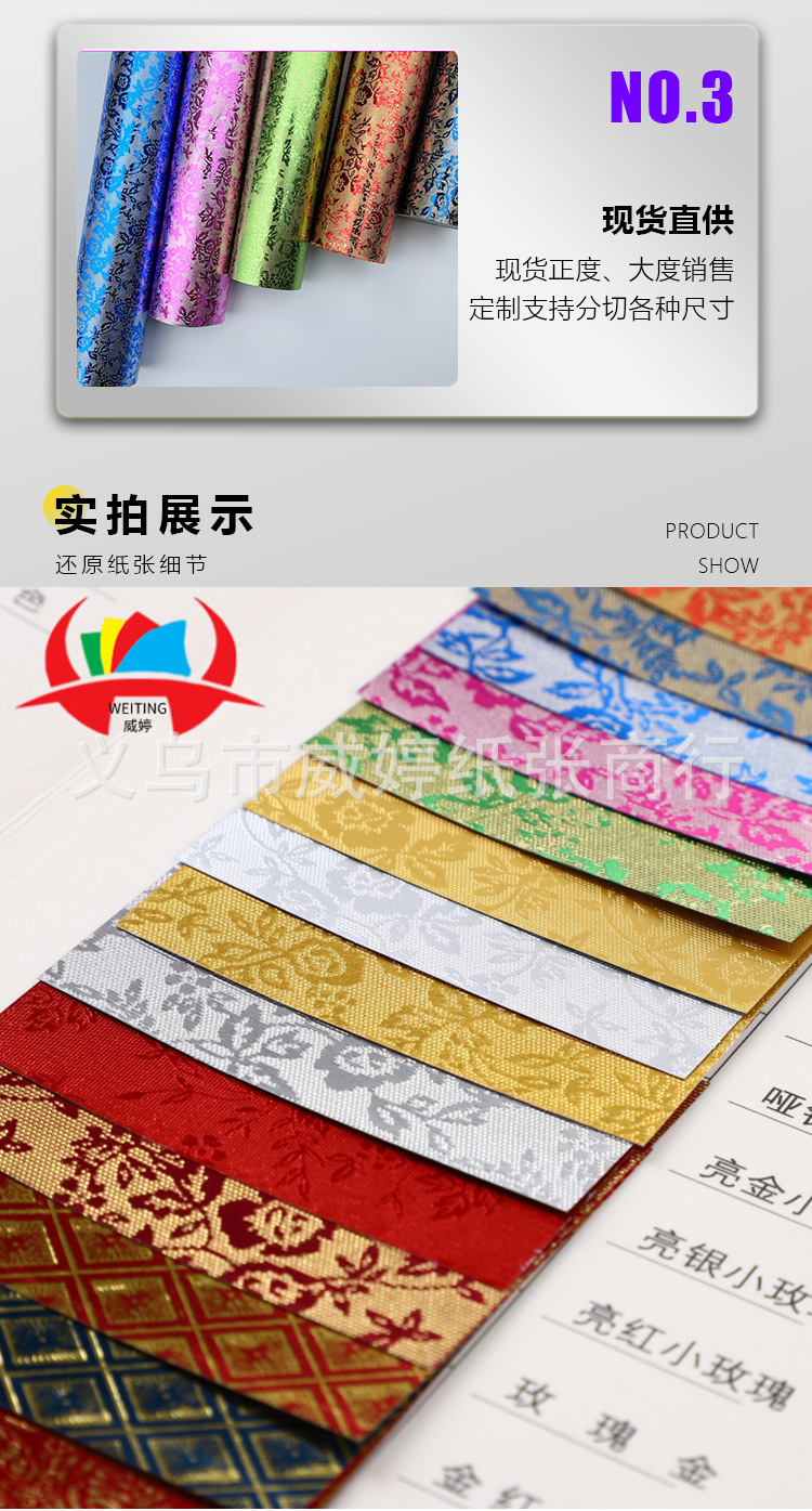 Spot tarjeta de oro y plata en relieve, oro rojo, rosa pequeña, papel especial, papel de estampado de espejo, caja de joyería de estilo antiguo, papel de embalaje