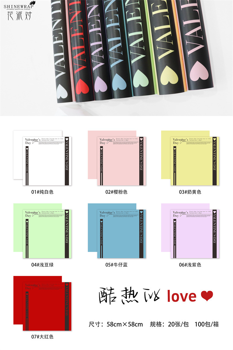 Fábrica de fiestas de flores Nuevo día de San Valentín papel de embalaje de flores de papel de embalaje de flores transfronterizas materiales floristas