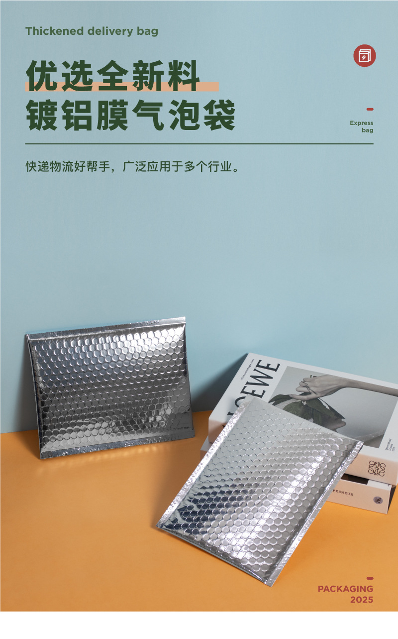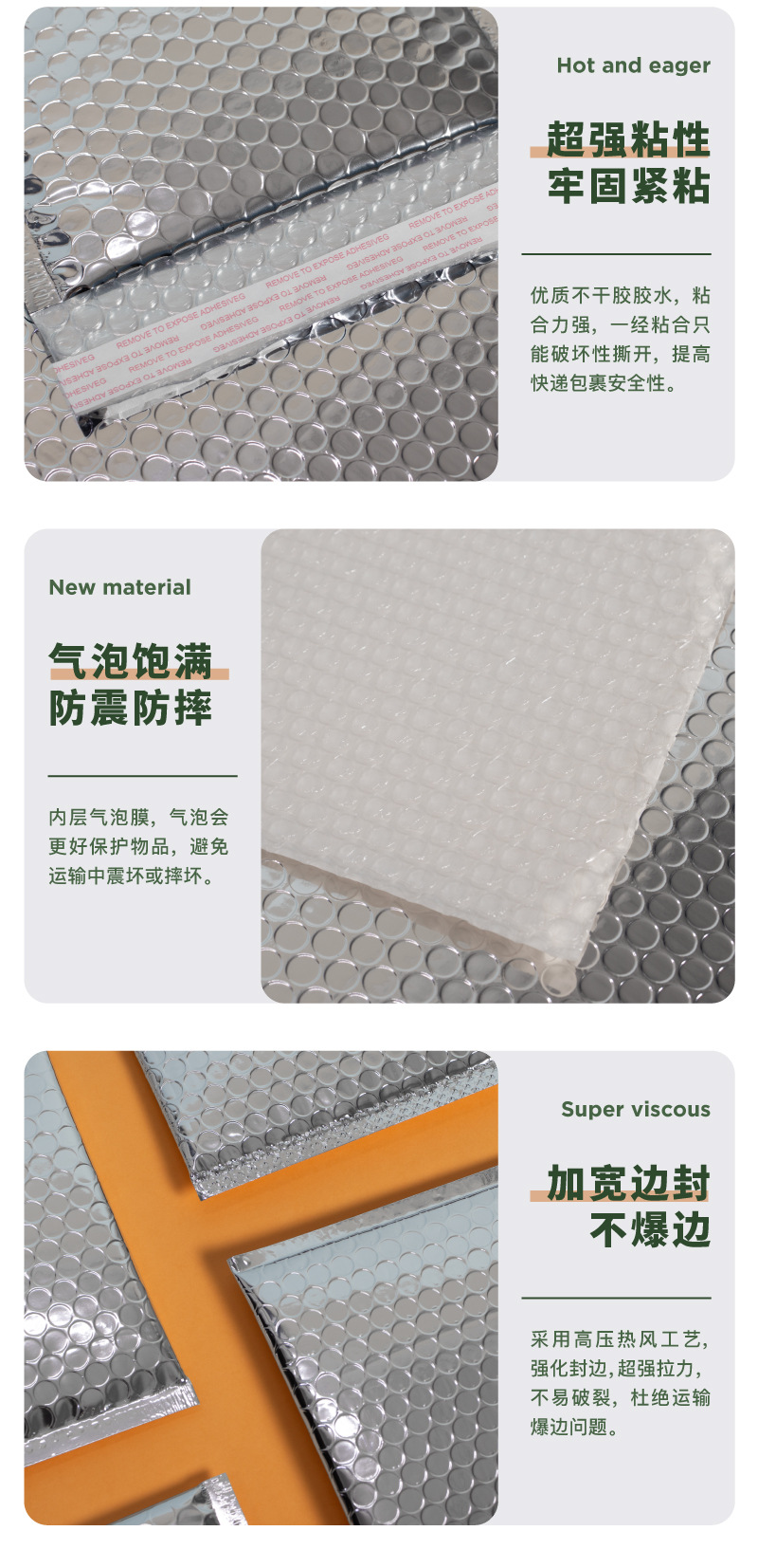 Bolsa de burbujas de película de aluminio, película láser plateada personalizada de alta calidad expreso a prueba de choque, a prueba de presión, a prueba de agua transfronteriza