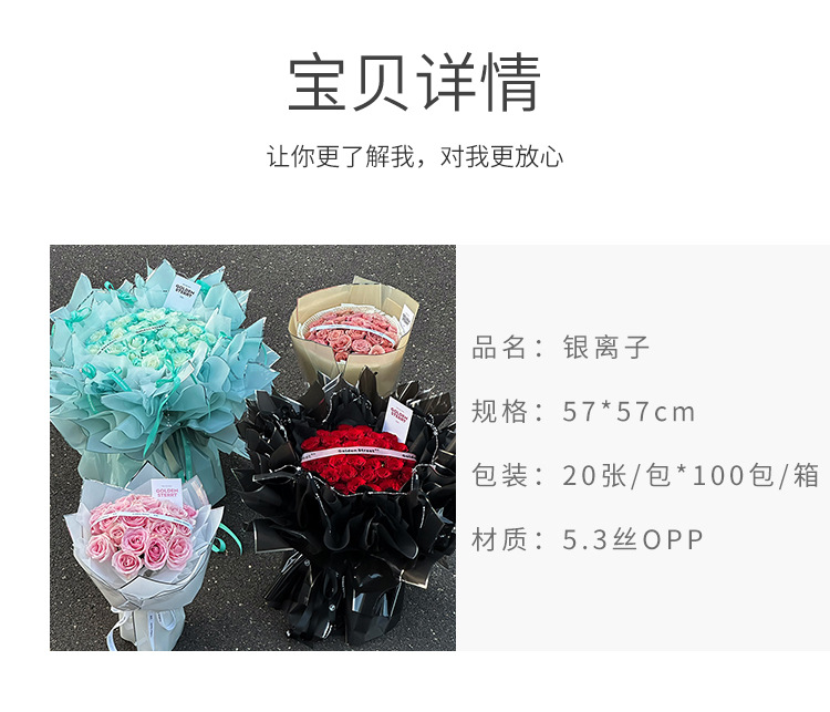 Qixi día de San Valentín iones de plata papel de embalaje de flores película transparente diy hecha a mano ramo de flores materiales de flor