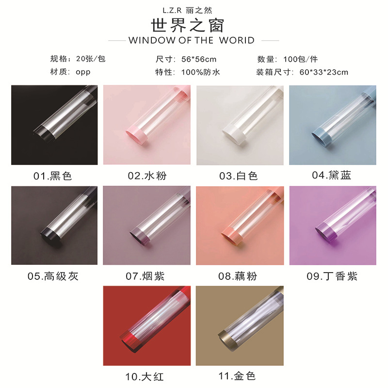 Liziran Window of the World Papel de envoltura impermeable translúcido Día de San Valentín Papel de envoltura de flores Embalaje de ramo