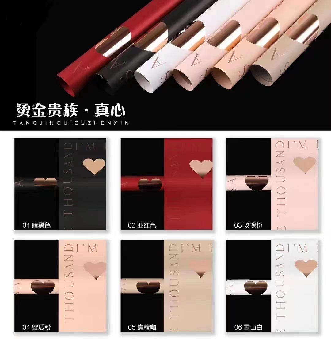 Li Zhiran Bronceado Noble Corazón verdadero Papel de embalaje de flores Impermeable Papel de embalaje de ramo de amor en inglés 15 hojas