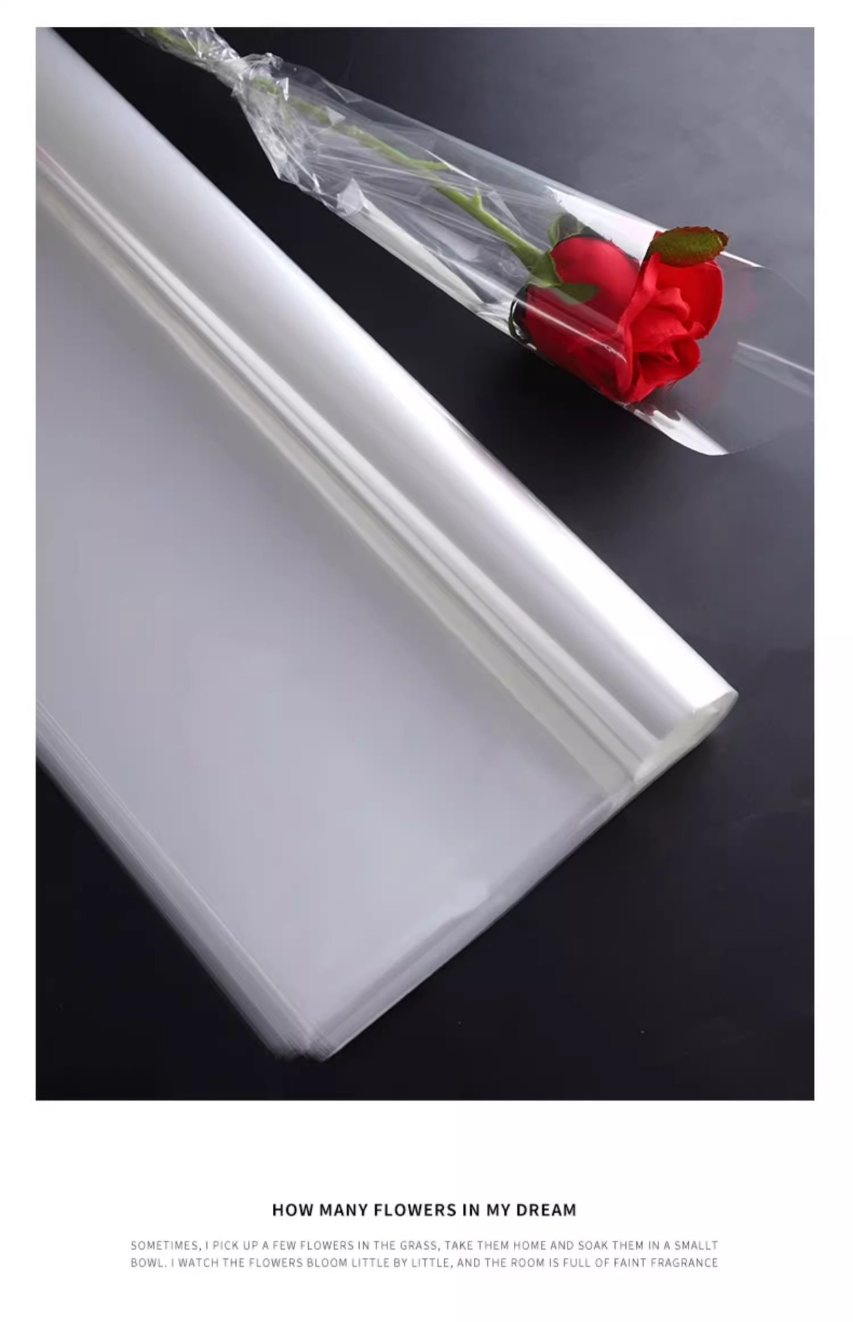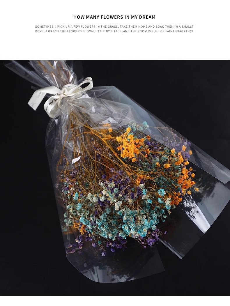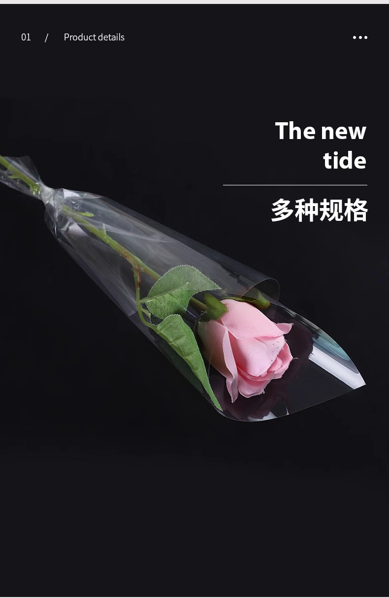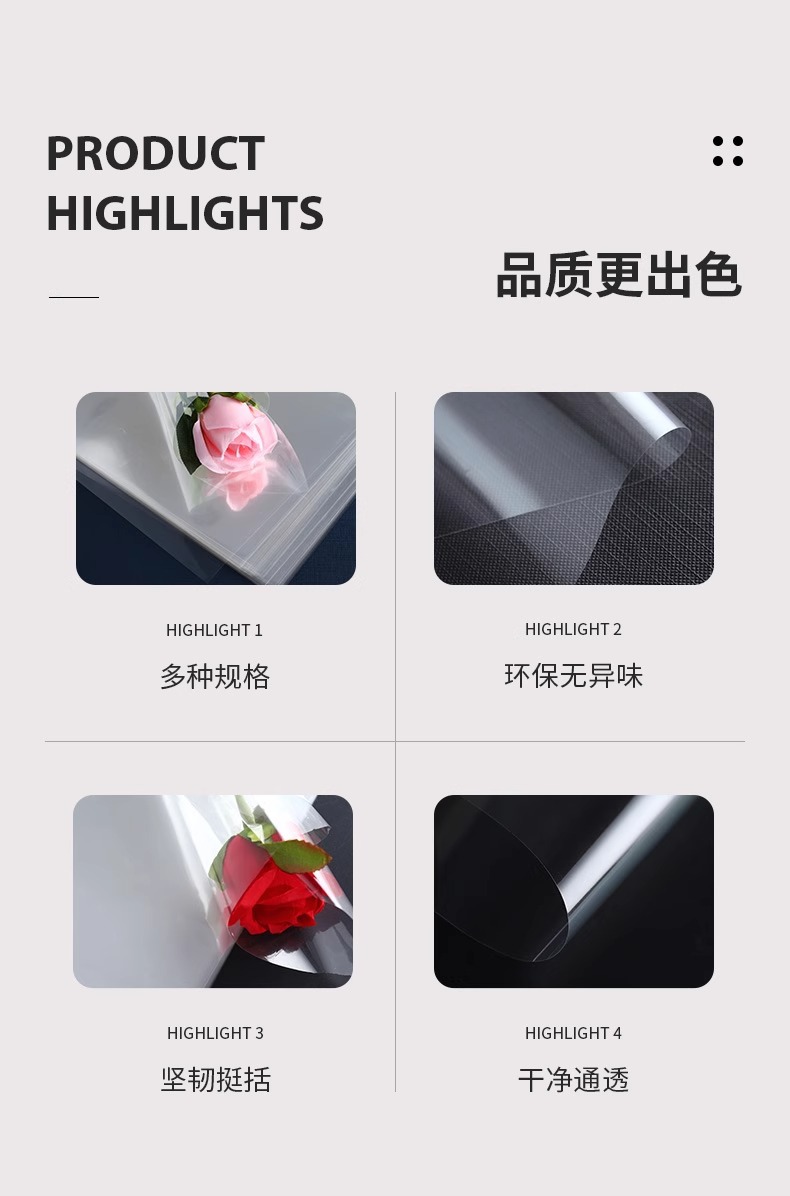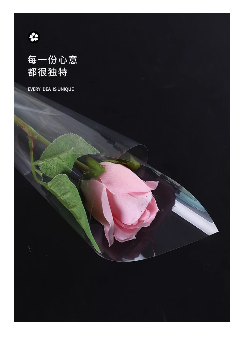 Papel de embalaje de vidrio a medida mayorista transparente a prueba de polvo procesamiento de película opp impresión de flores de embalaje de vidrio a medida