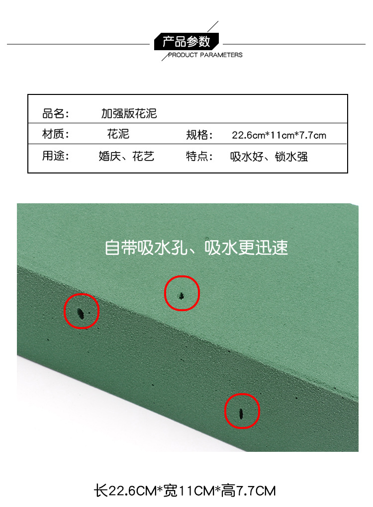 Flor reforzada flor bloque de barro cesta de flores Flor de barro envuelto flor de la flor seca de barro esponja absorbente de espuma de barro material de ladrillo base