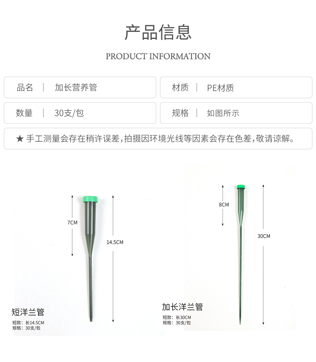 | Color | Modelo corto - tubo yanglan con poste (30 / paquete), modelo largo - tubo yanglan con poste (30 / paquete) |
