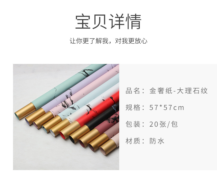 Huaxi comercio exterior transfronterizo mayorista oro lujo papel impermeable mármol oro papel de flor florista papel de embalaje