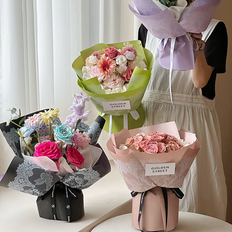 Papel de embalaje para flores con bordes de encaje, de alta calidad, para floristería, transfronterizo, al por mayor