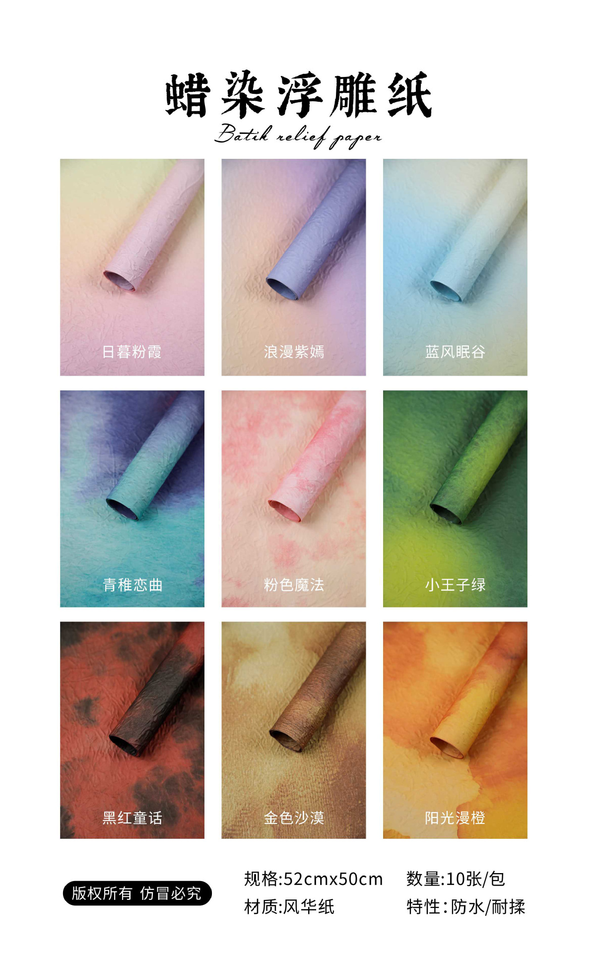 | Especificaciones | 52 * 50cm10 hojas / paquete |