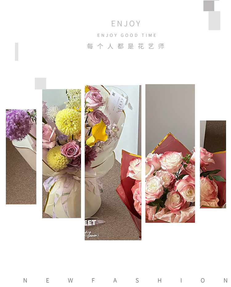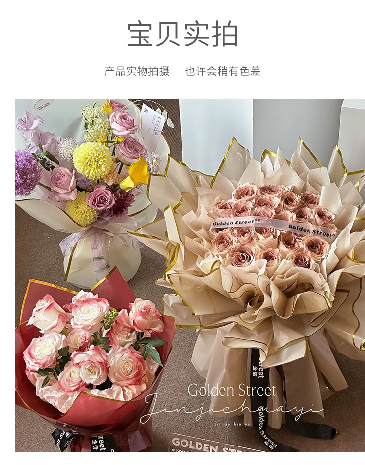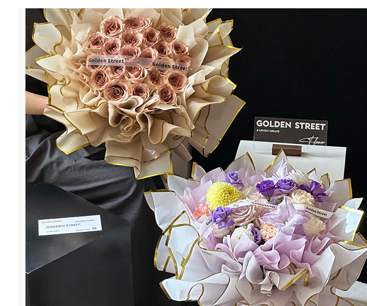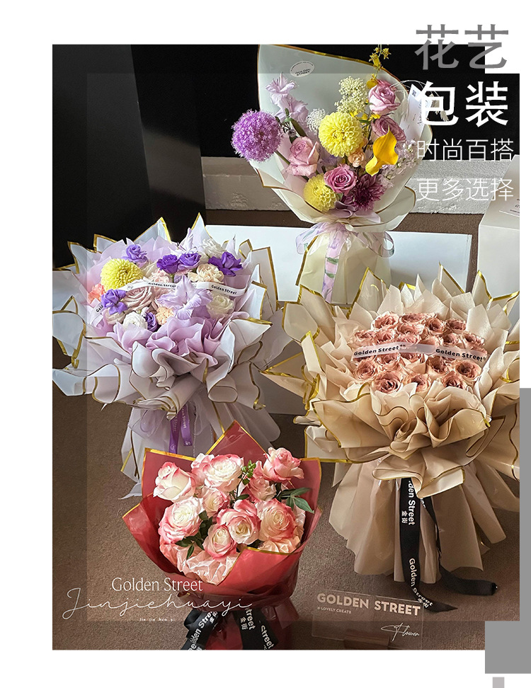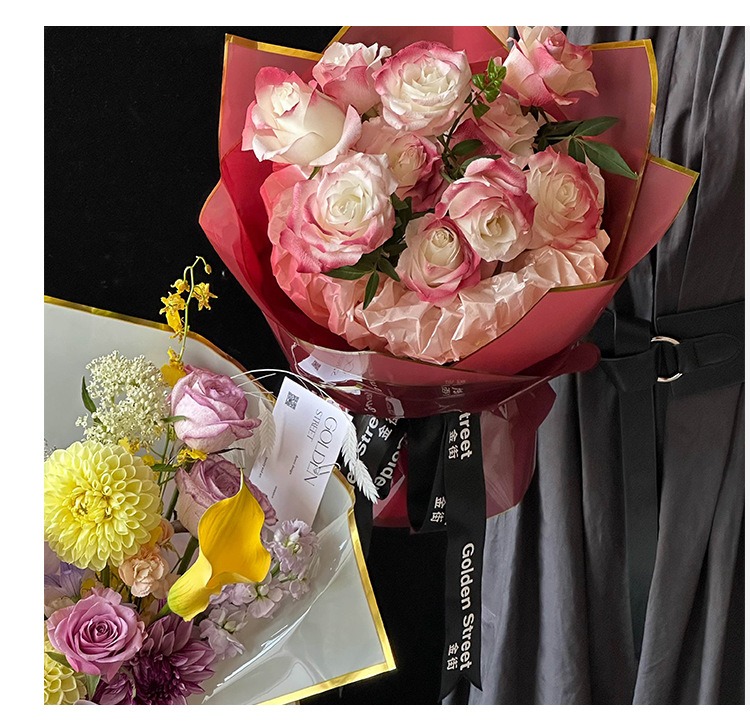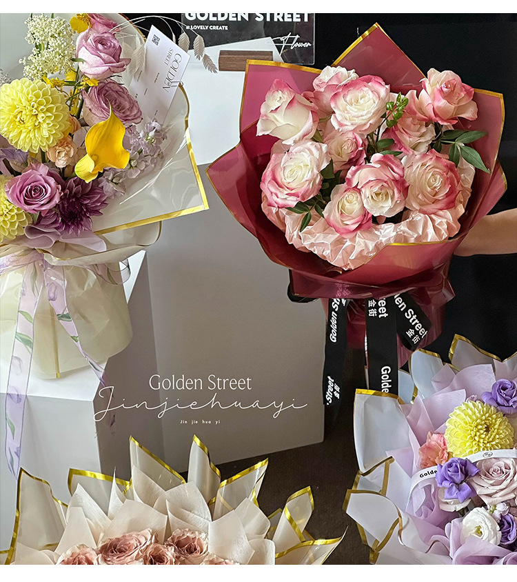 Qixi oro ión papel de embalaje de flores plástico OPP película hecha a mano DIY florista materiales impermeables al por mayor