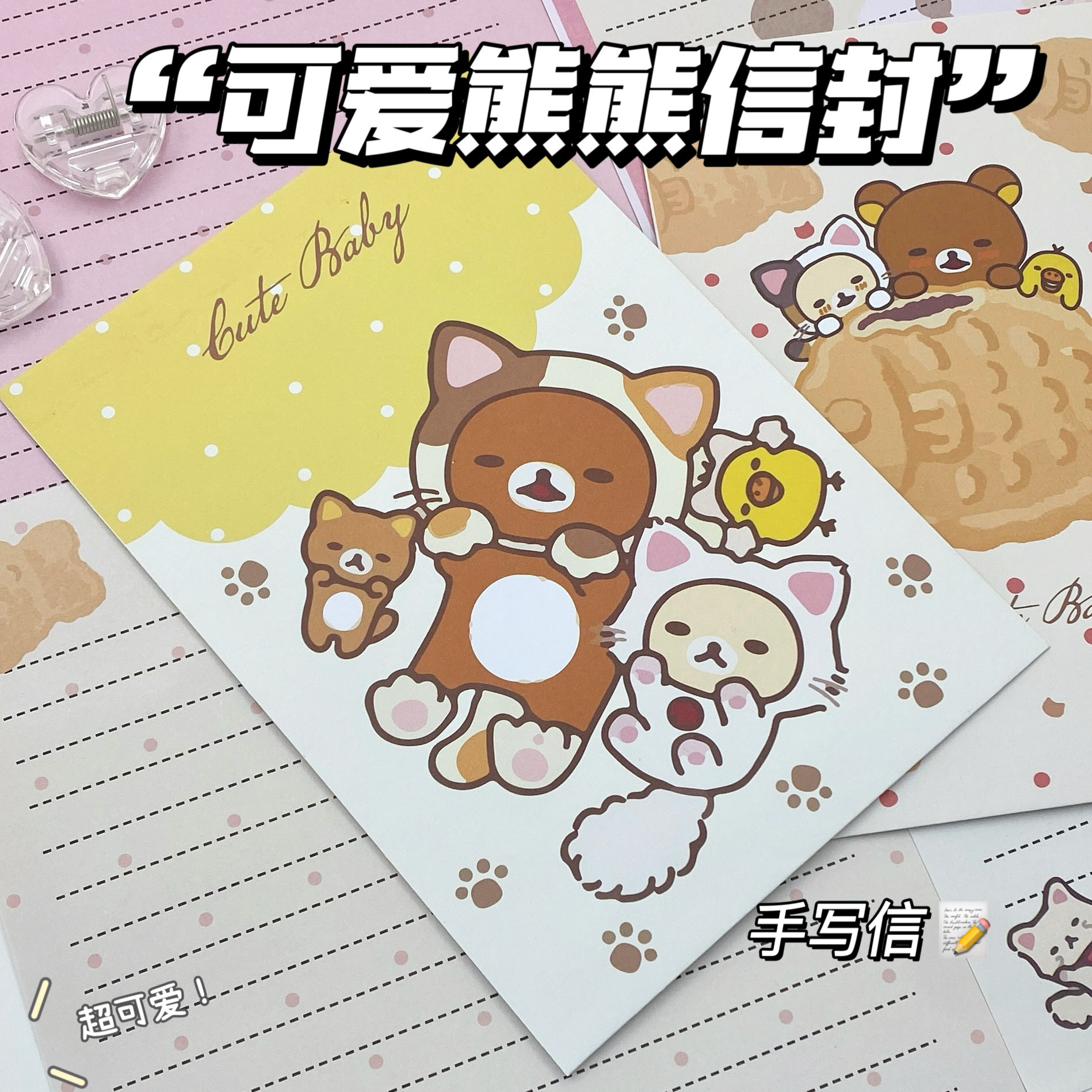 Nuevo lindo oso tarjeta de comunicación papel sobre conjunto simple y claro papel de escritura para enviar a amigos y amigos papel de carta
