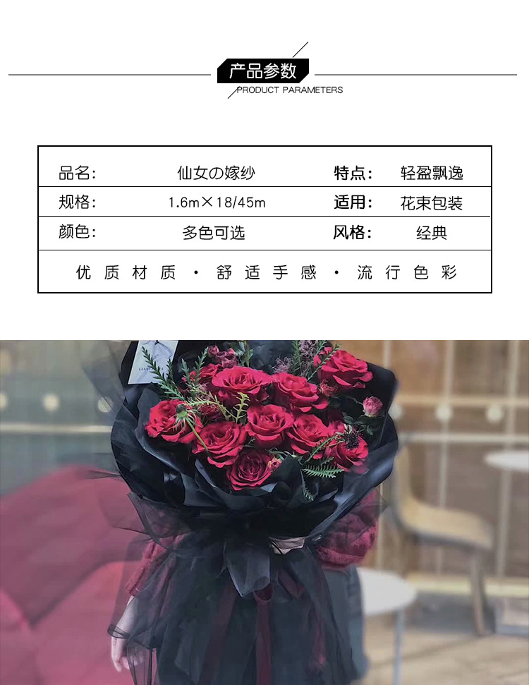 Hadas de hadas de celebridades en línea 1,6 m de ancho negro hilo de nieve flor floral velo de embalaje material de malla suministros de boda al por mayor