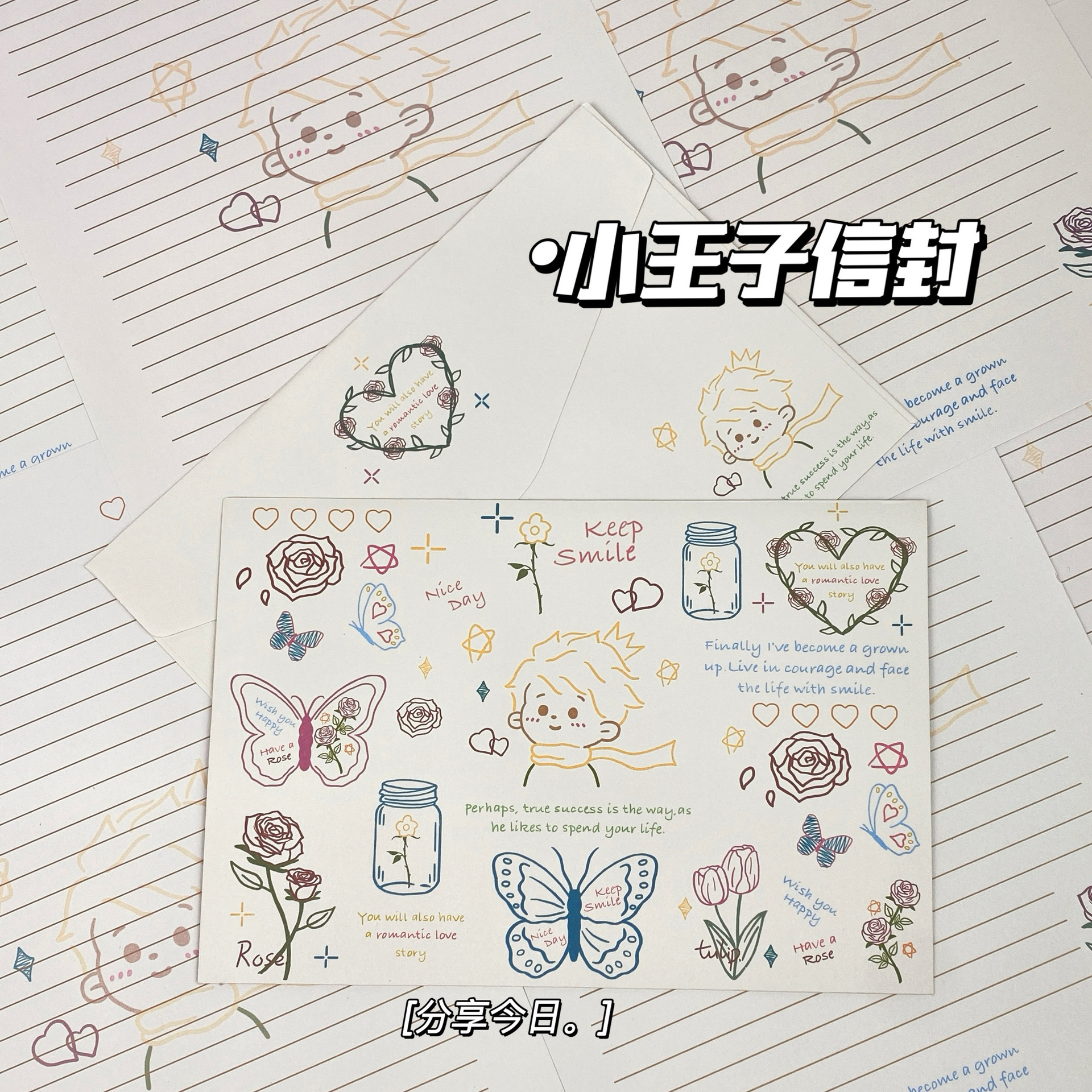 El pequeño príncipe sobres de papel de carta ceremonia insintió el viento alto valor facial conjunto completo de escritos a mano románticos creativos deseos de regalo