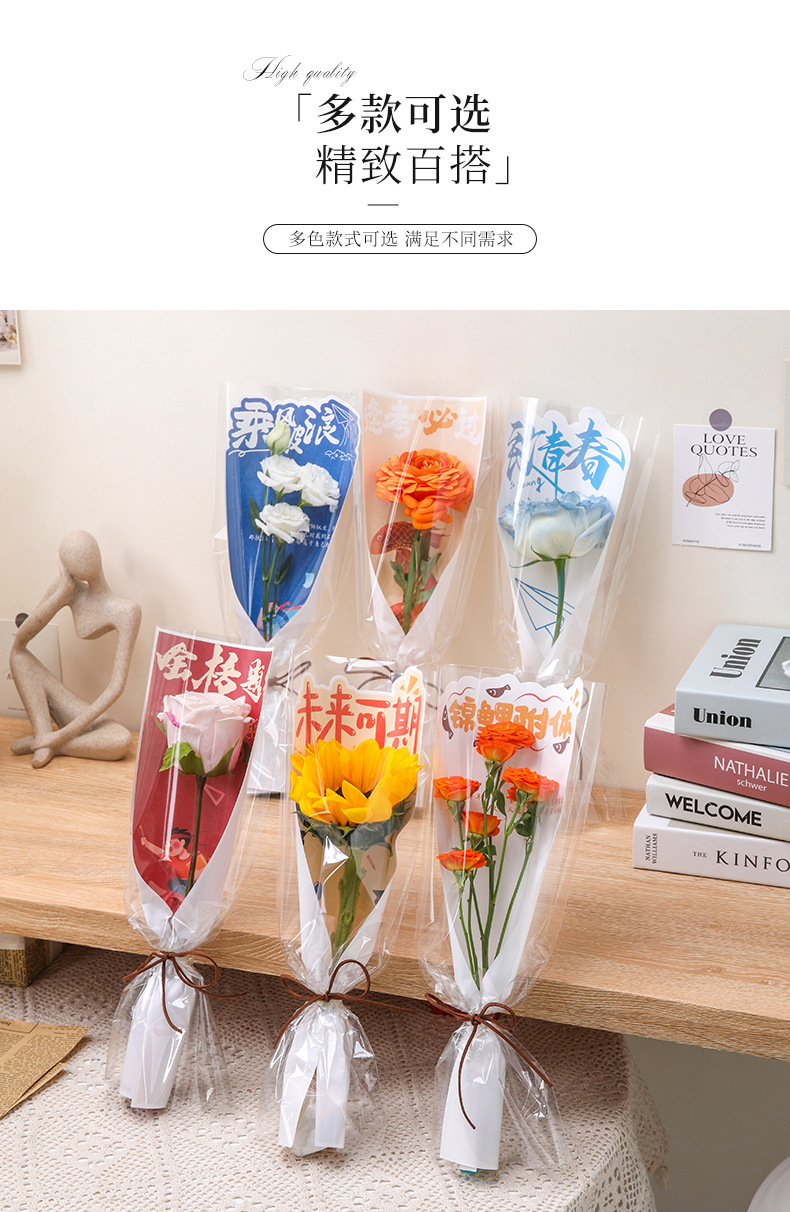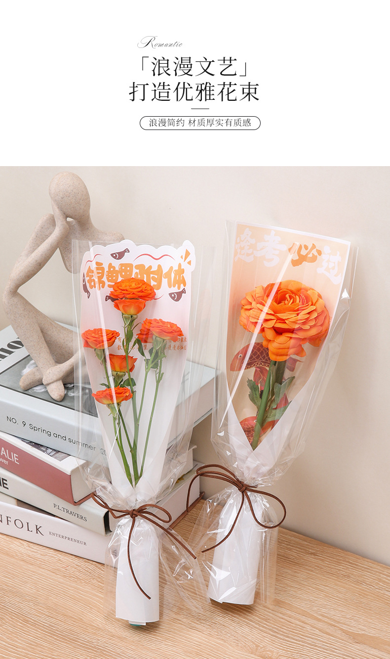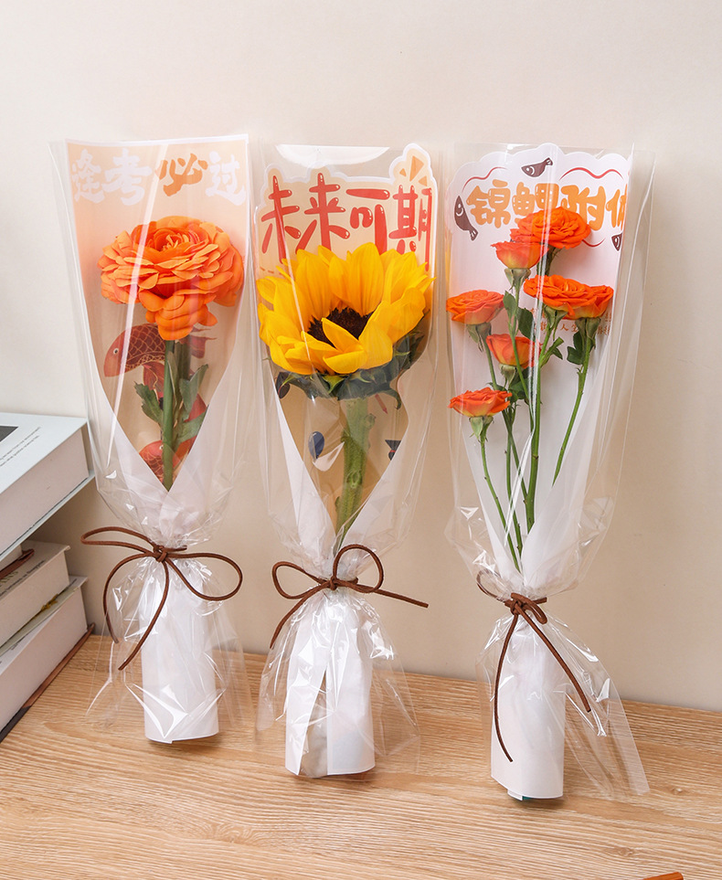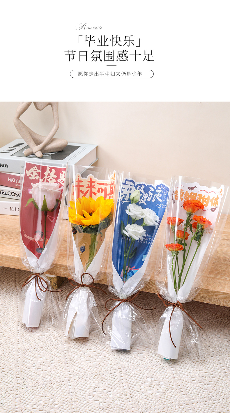 Bolsa de embalaje de ramo de examen de ingreso a la universidad Bolsa de embalaje de ramo transparente al por mayor individual Material de embalaje de flores de floristería Temporada de graduación Bolsa de embalaje de flores