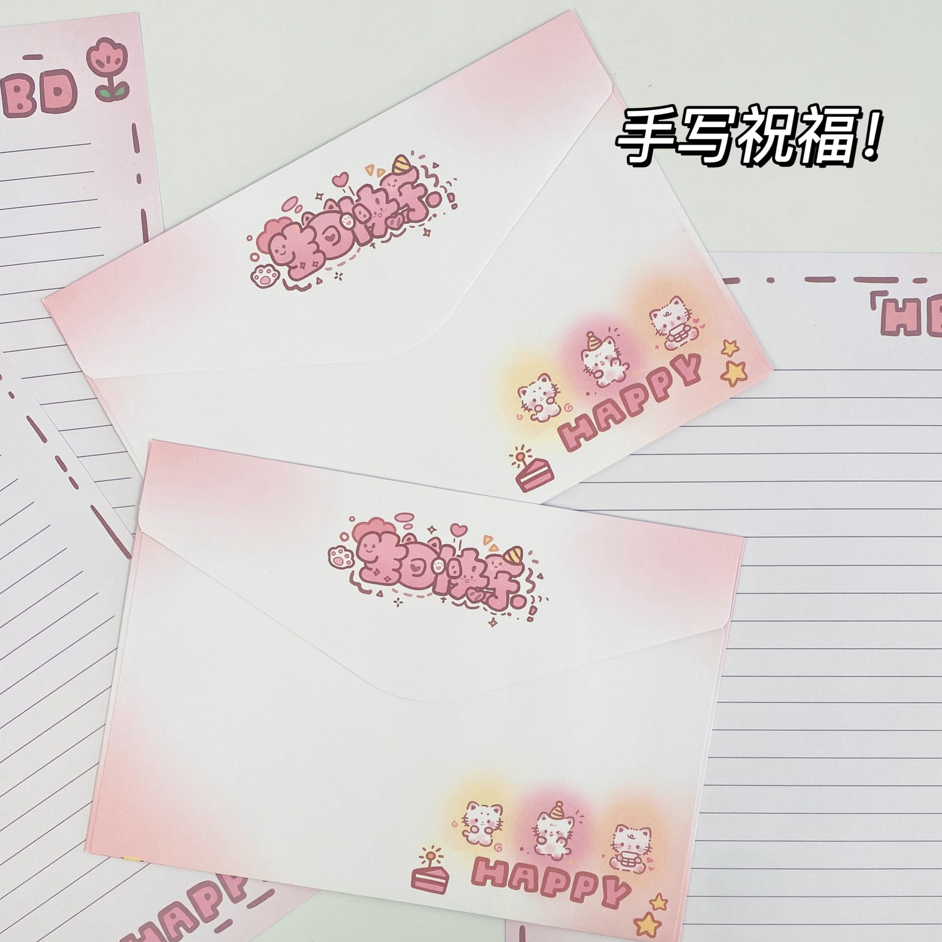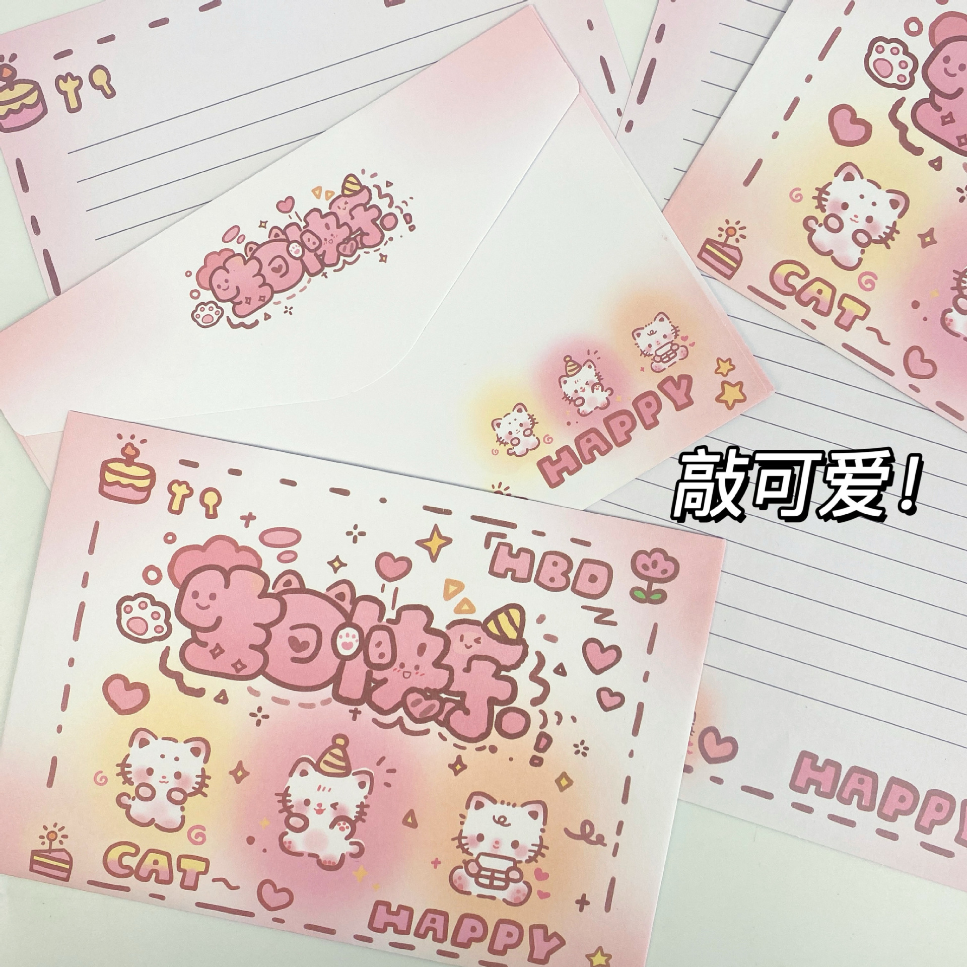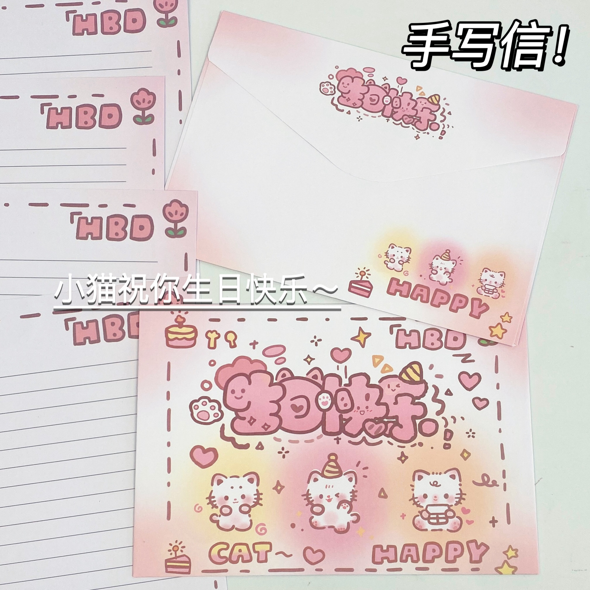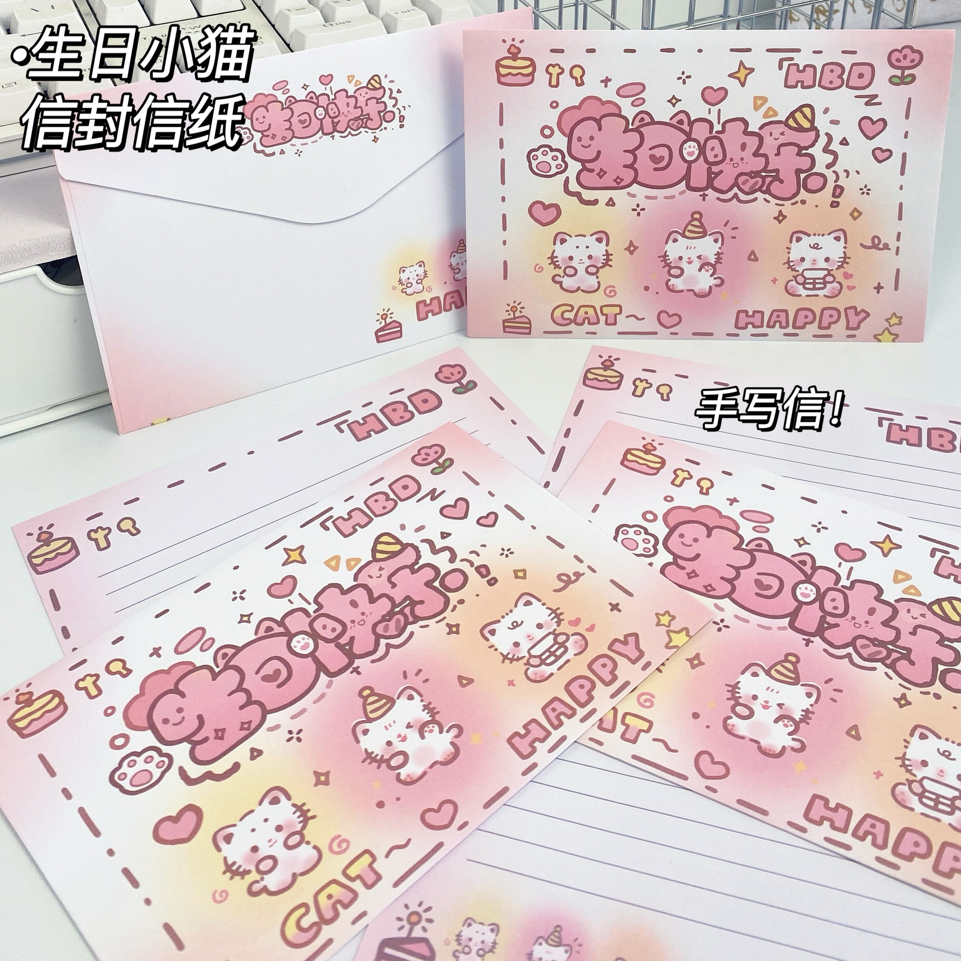 Cumpleaños gatito encantador sobre papel de carta en el viento regalo de cumpleaños cartas escritas a mano simple papel de carta de dibujos animados de alto valor facial