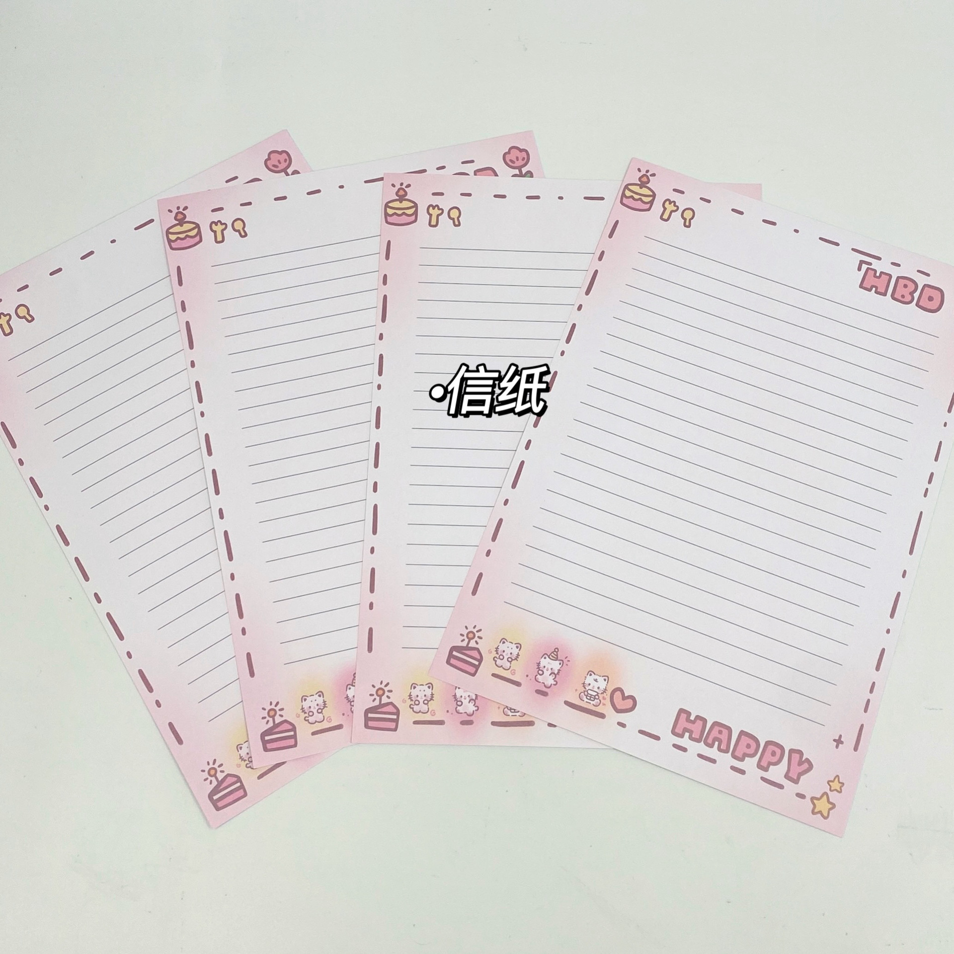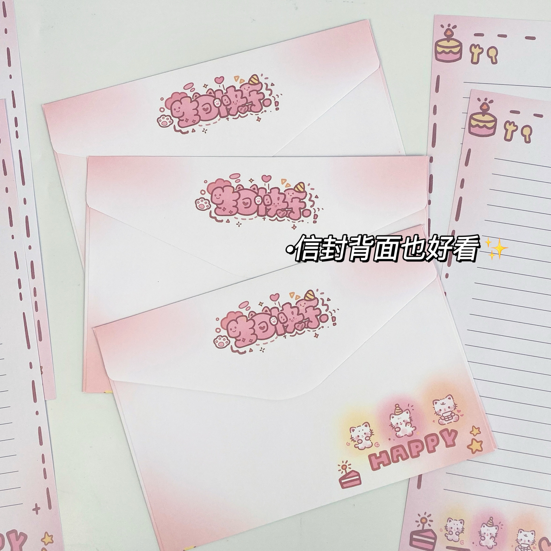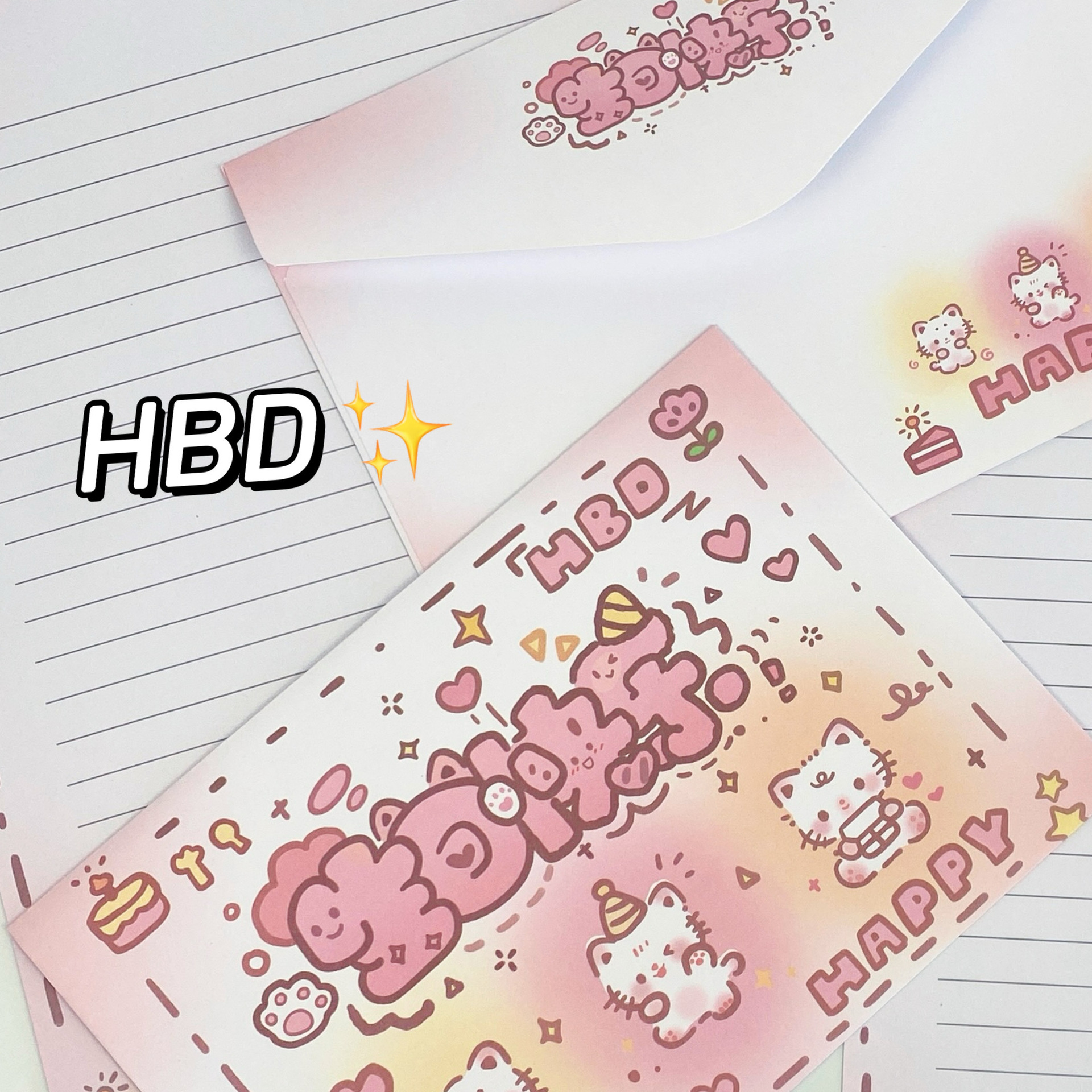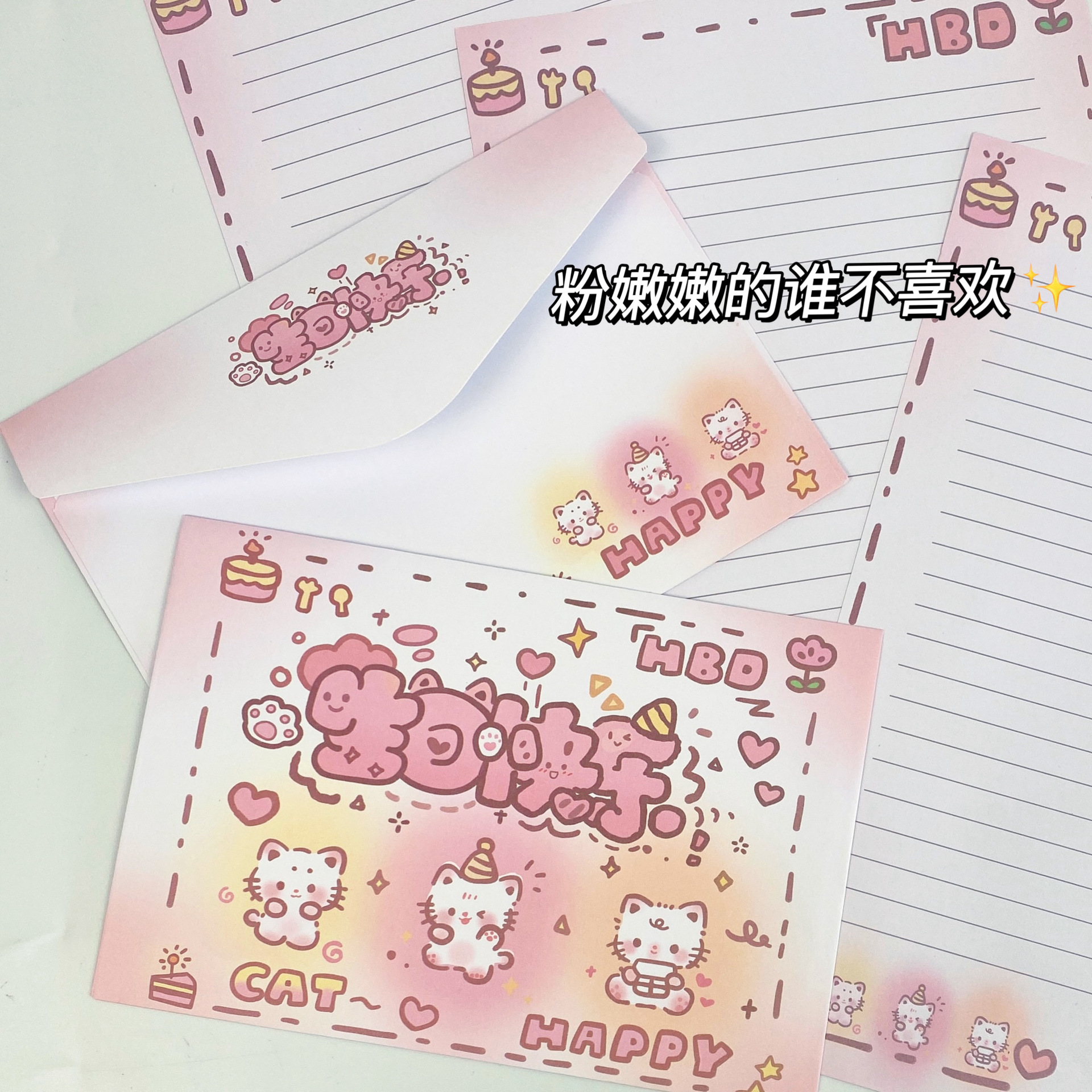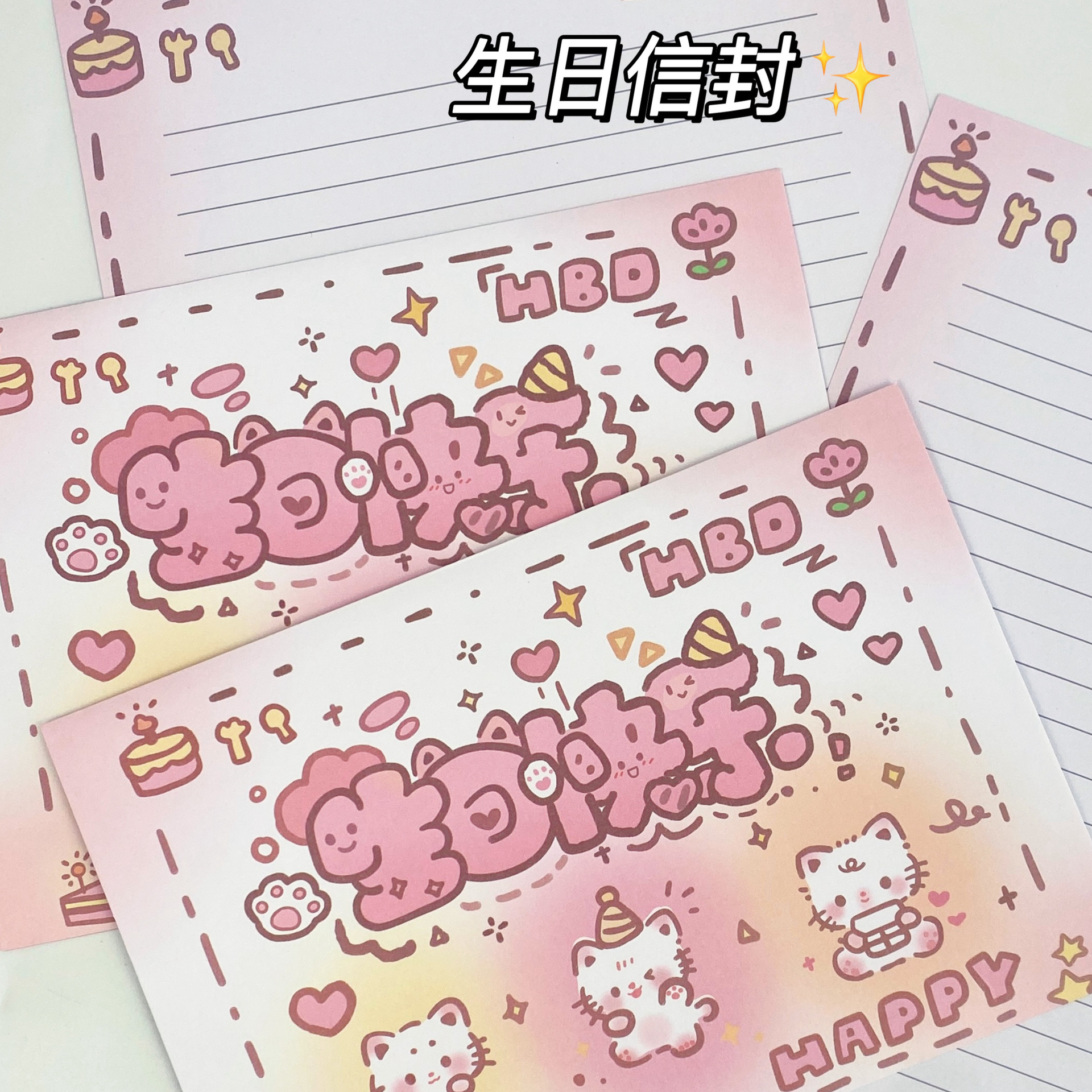 Cumpleaños gatito encantador sobre papel de carta en el viento regalo de cumpleaños cartas escritas a mano simple papel de carta de dibujos animados de alto valor facial