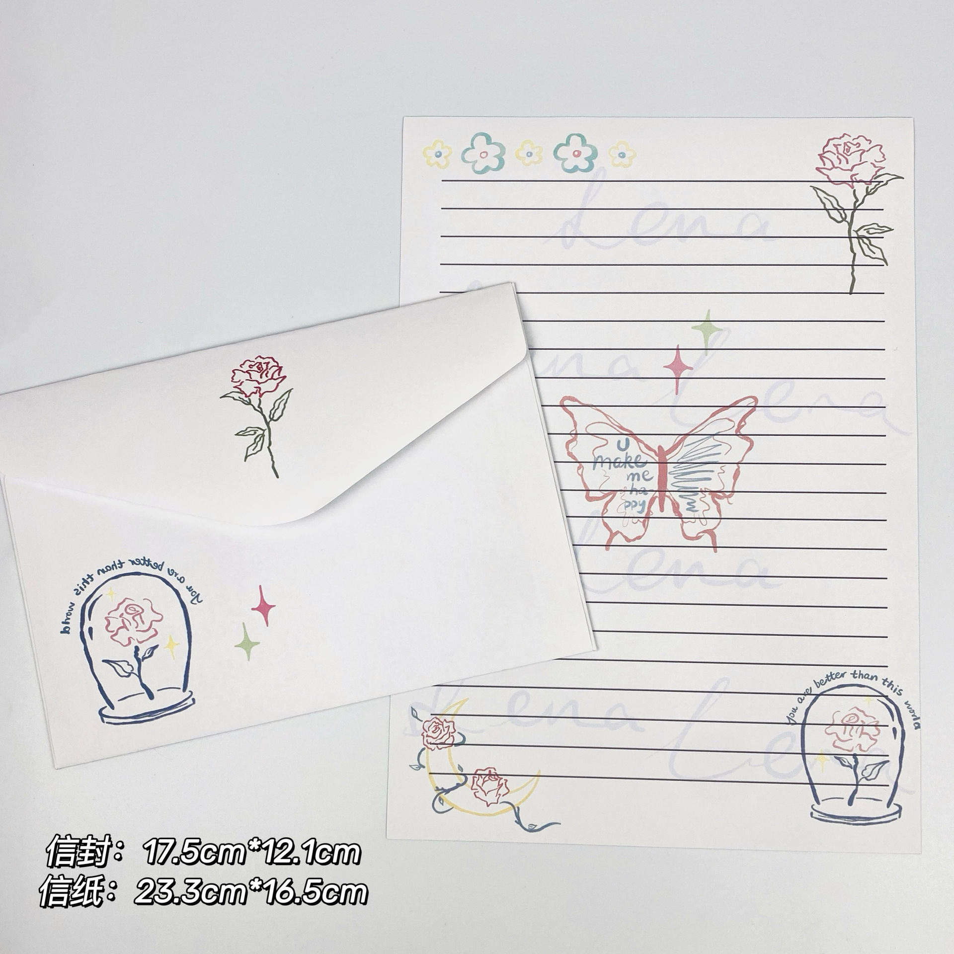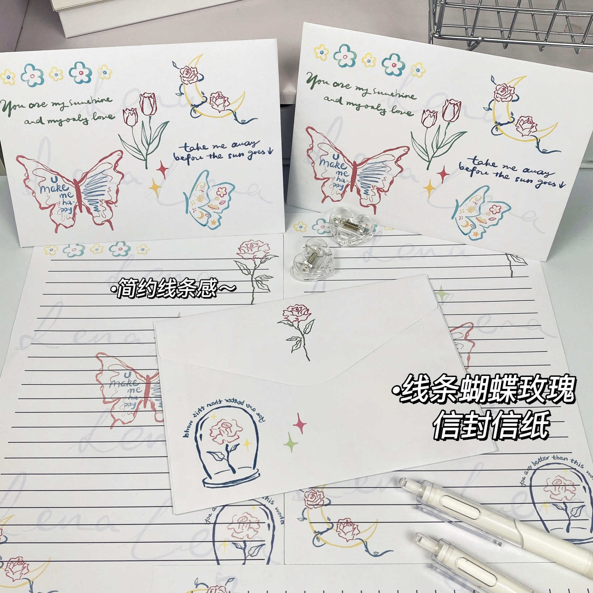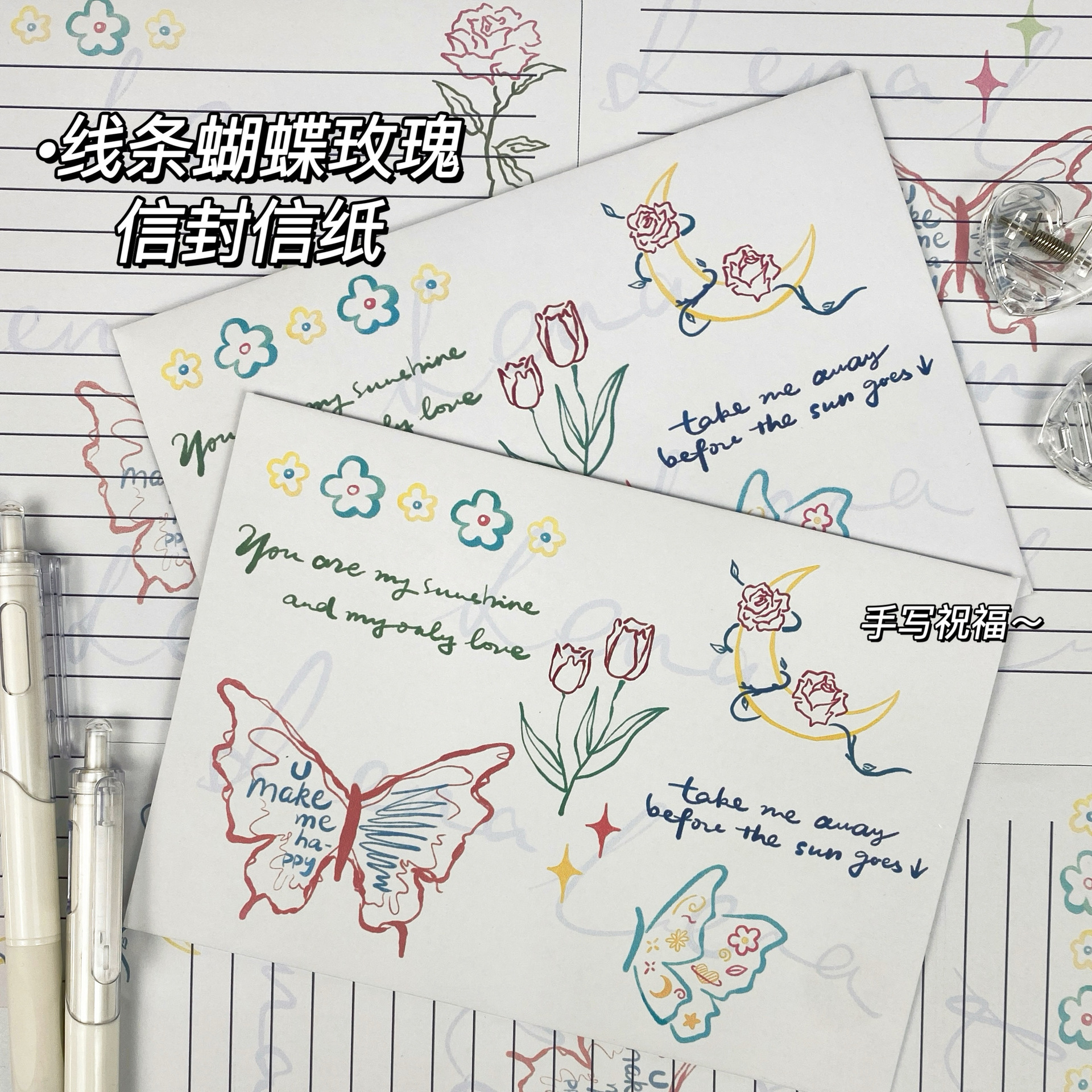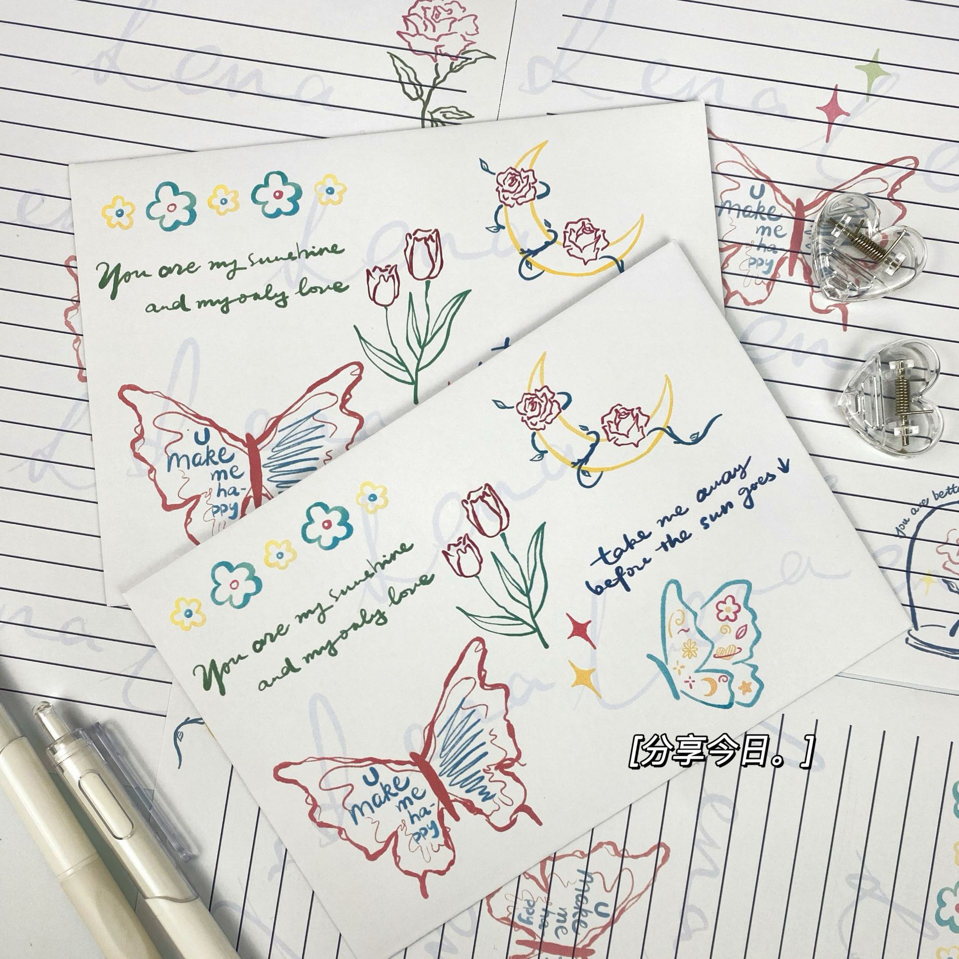 Sobre antiguo conjunto de cartas bendiciones románticas creativas Mensaje de regalo mariposa carta de carta romántica escritura a mano