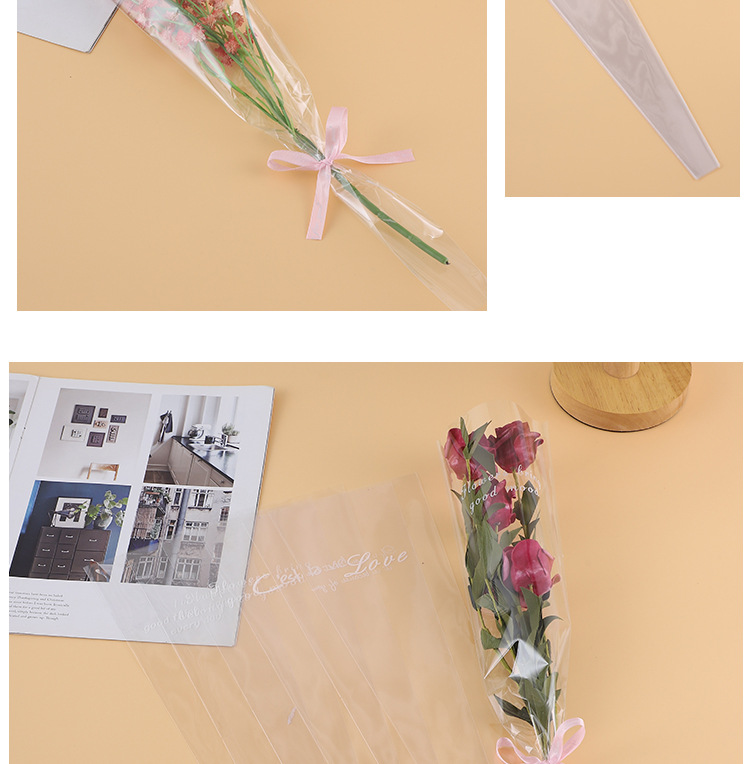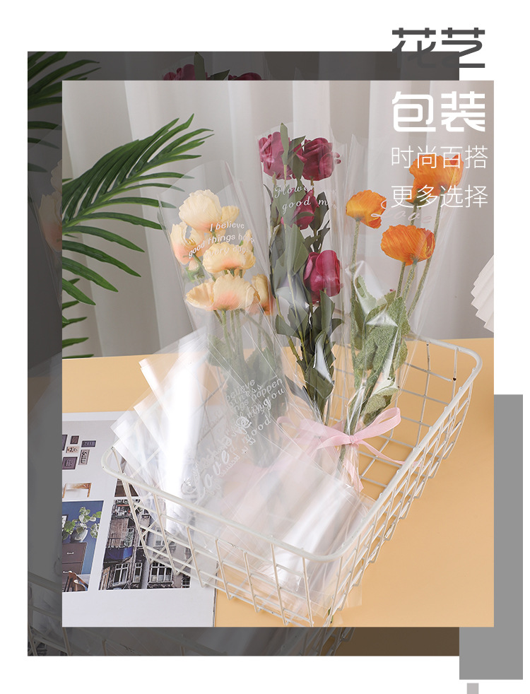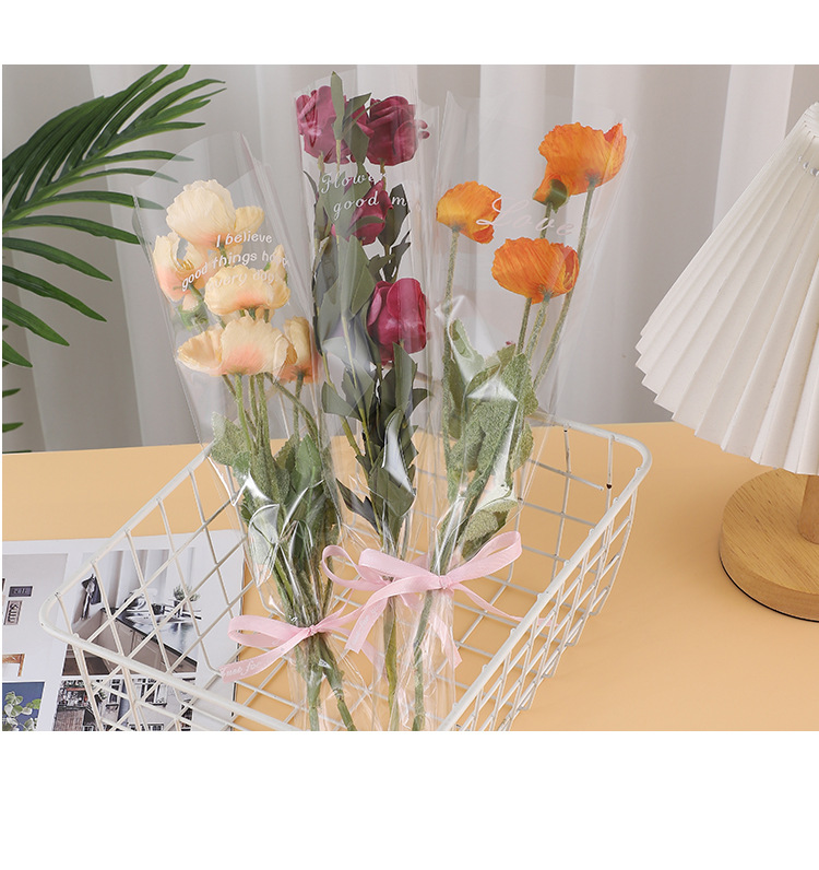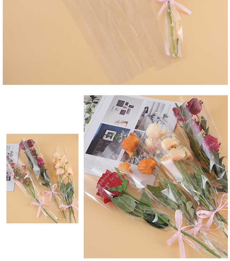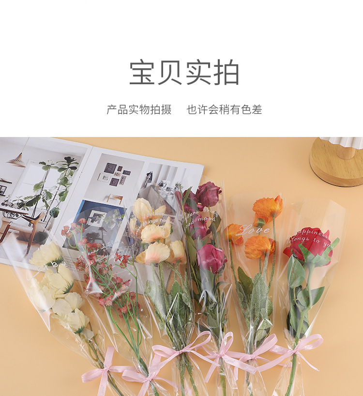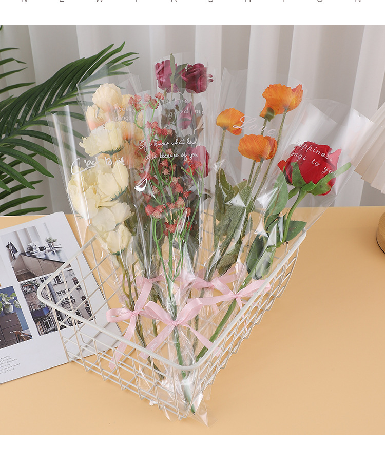 Bolsa transparente individual para ramo de San Valentín, varios bolsos, materiales para floristería al por mayor, bolsa de embalaje para flores de color sólido
