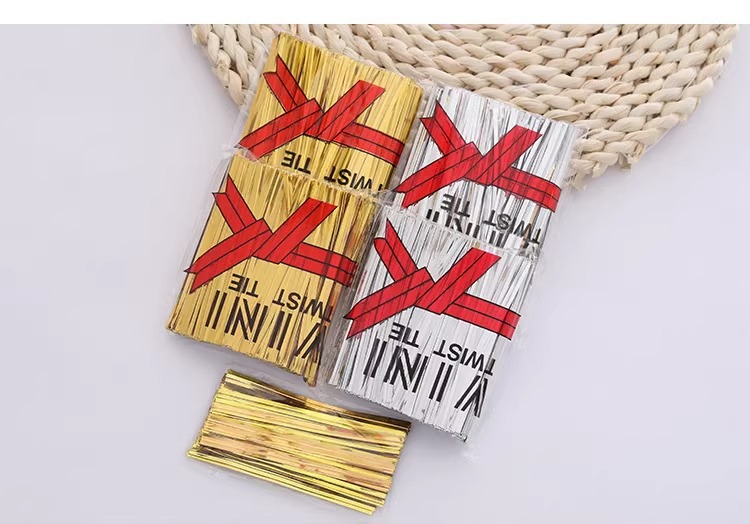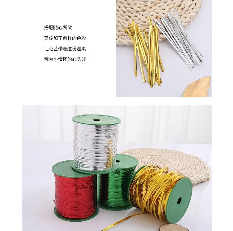 Cintas de alambre DIY, cintas para empaquetar repostería y galletas, cintas de sellado doradas y verdes, tiras metálicas para empaquetar en Navidad.