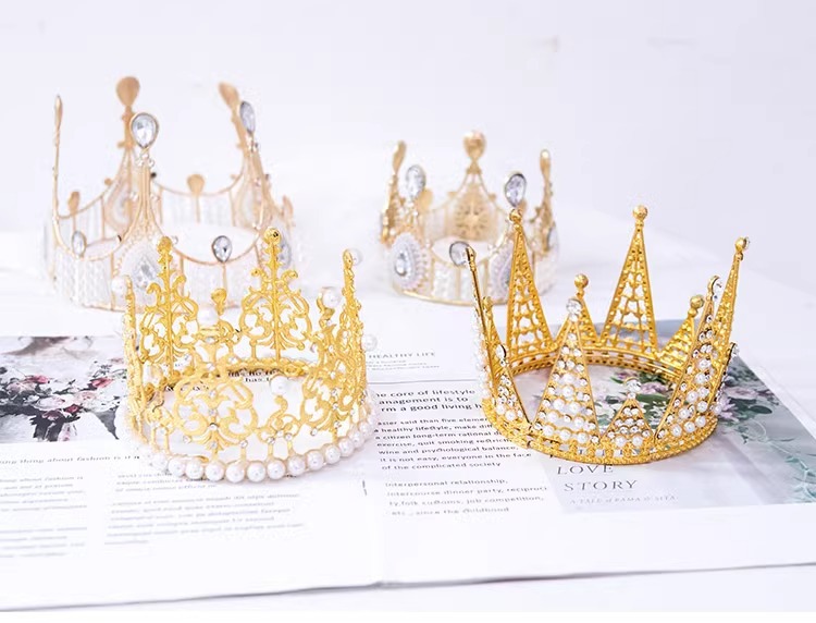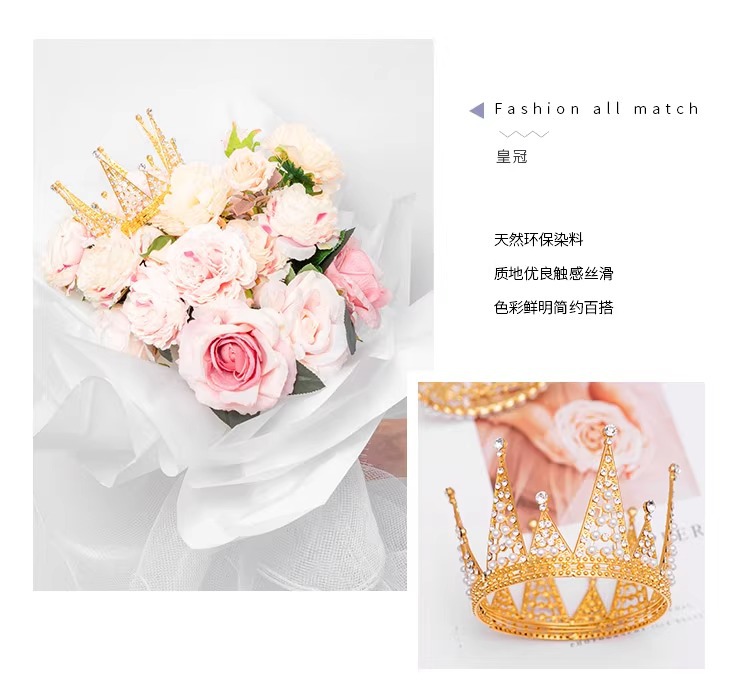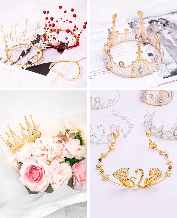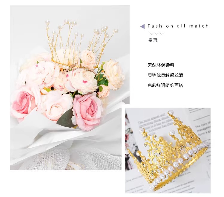 Red de celebridades Decoración de pasteles de corona Decoración de ramo Decoración de perlas Plug-in Sombrero de cumpleaños Reina Corona Material de flores